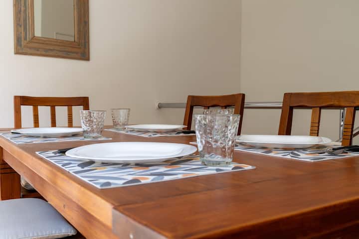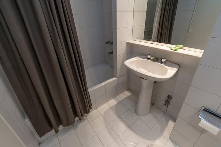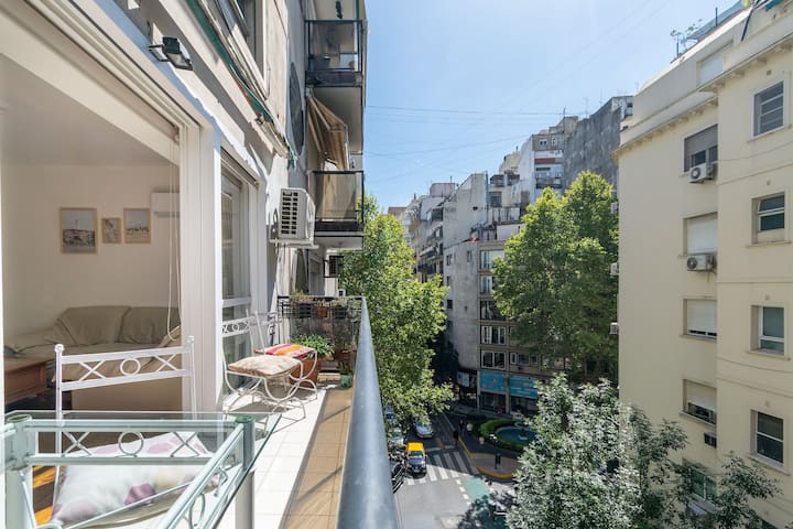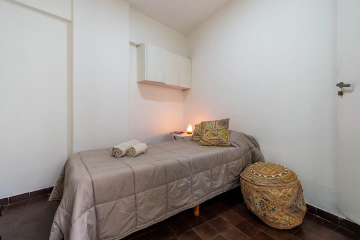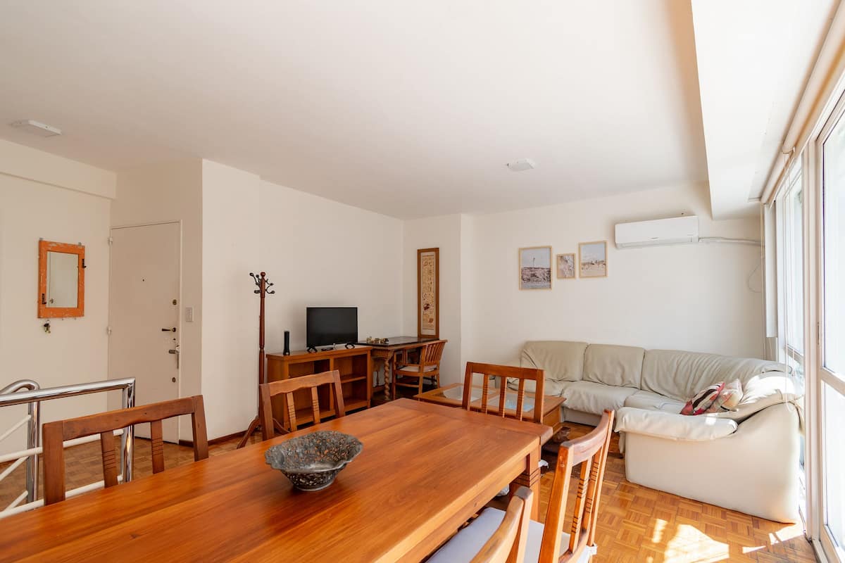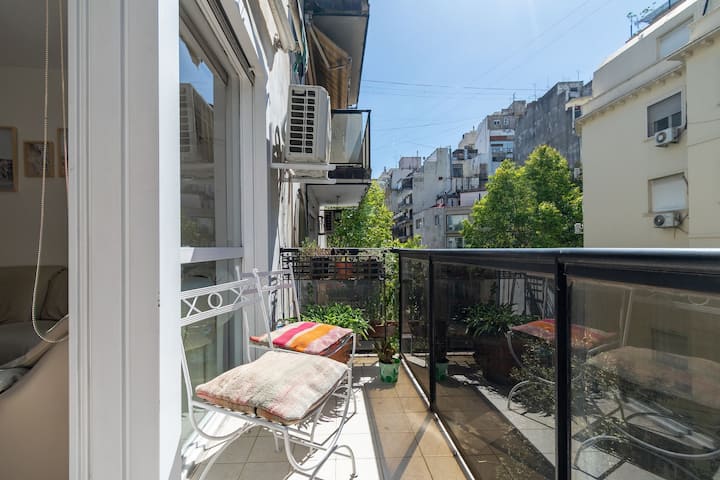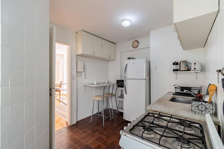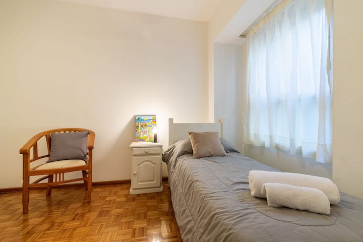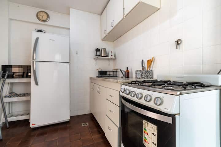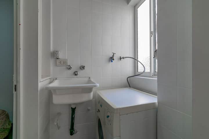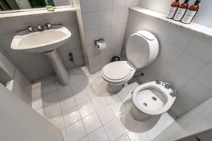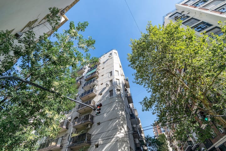 Apartamento duplex de dois andares em Recoleta, com 4 quartos. O imóvel é mobiliado e totalmente equipado, com Wi-Fi, TV e varanda, além de ar-condicionado no quarto e na sala. Conta com máquina de lavar roupa. No living e sala de jantar há sofá e mesa para 6 pessoas. Há 1 quarto com cama queen e 3 quartos com camas de solteiro (configurações de 1 e 2 camas). A cozinha tem área de lavanderia e há 1 banheiro.