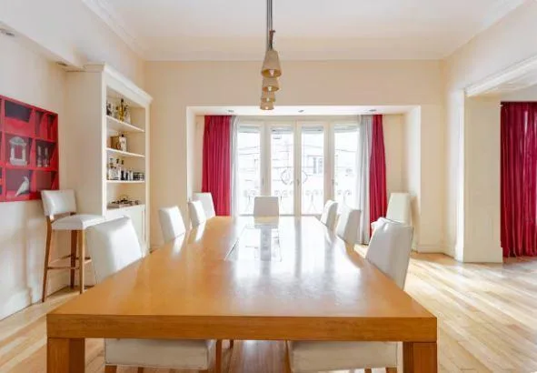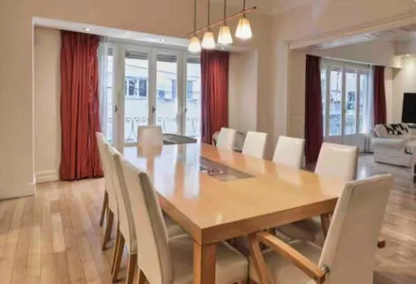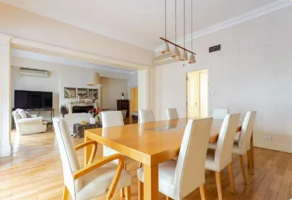 Apartamento para aluguel em Recoleta, com 5 ambientes e 250 m². Fica no 1800 de Vicente López, com living-comedor de frente para a rua e saída para varanda. Possui ar-condicionado, quatro dormitórios, incluindo suíte principal com closet, além de 2 banheiros completos e 1 lavabo. A cozinha tem ilha central, área de refeições e churrasqueira integrada, com copa diária. Inclui quarto de serviço, pátio externo, lavanderia independente, espaço para ginásio e vaga de garagem, com mobiliado e equipado