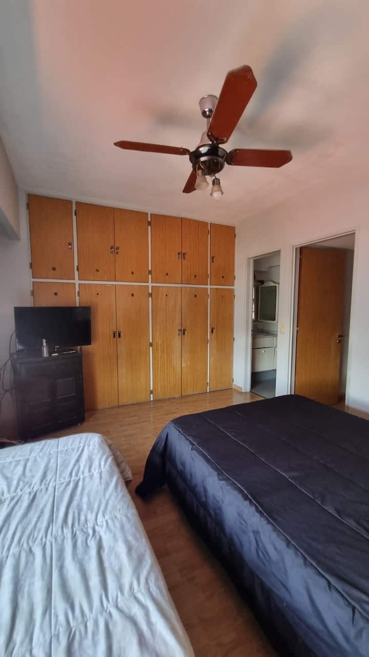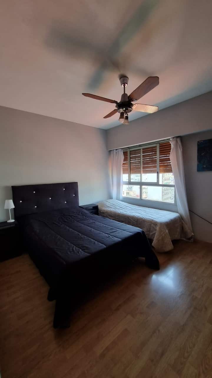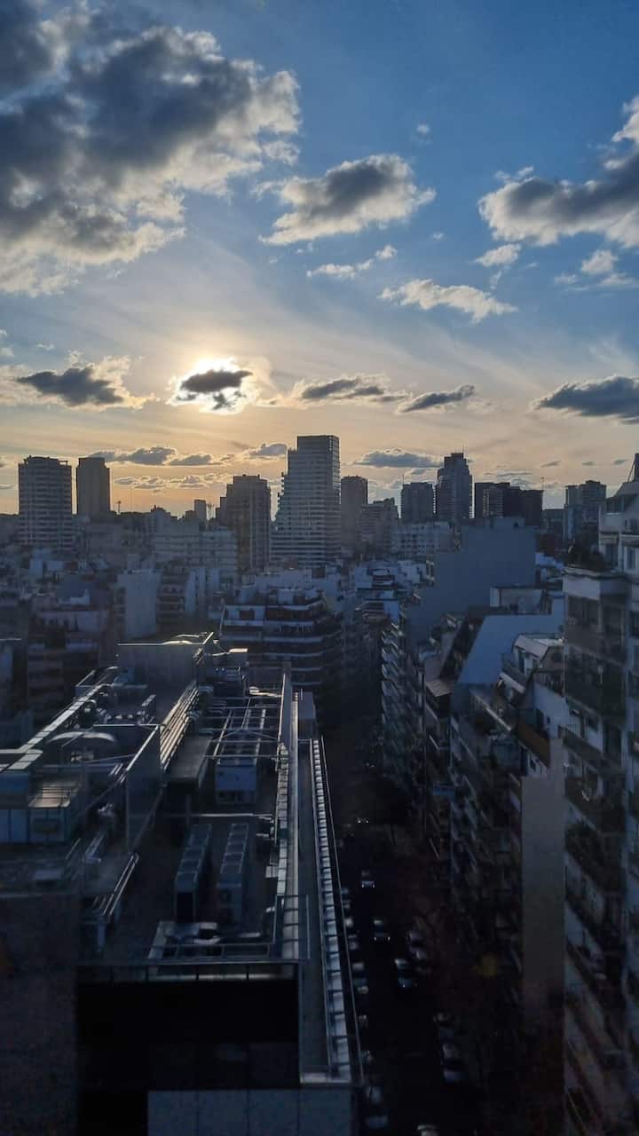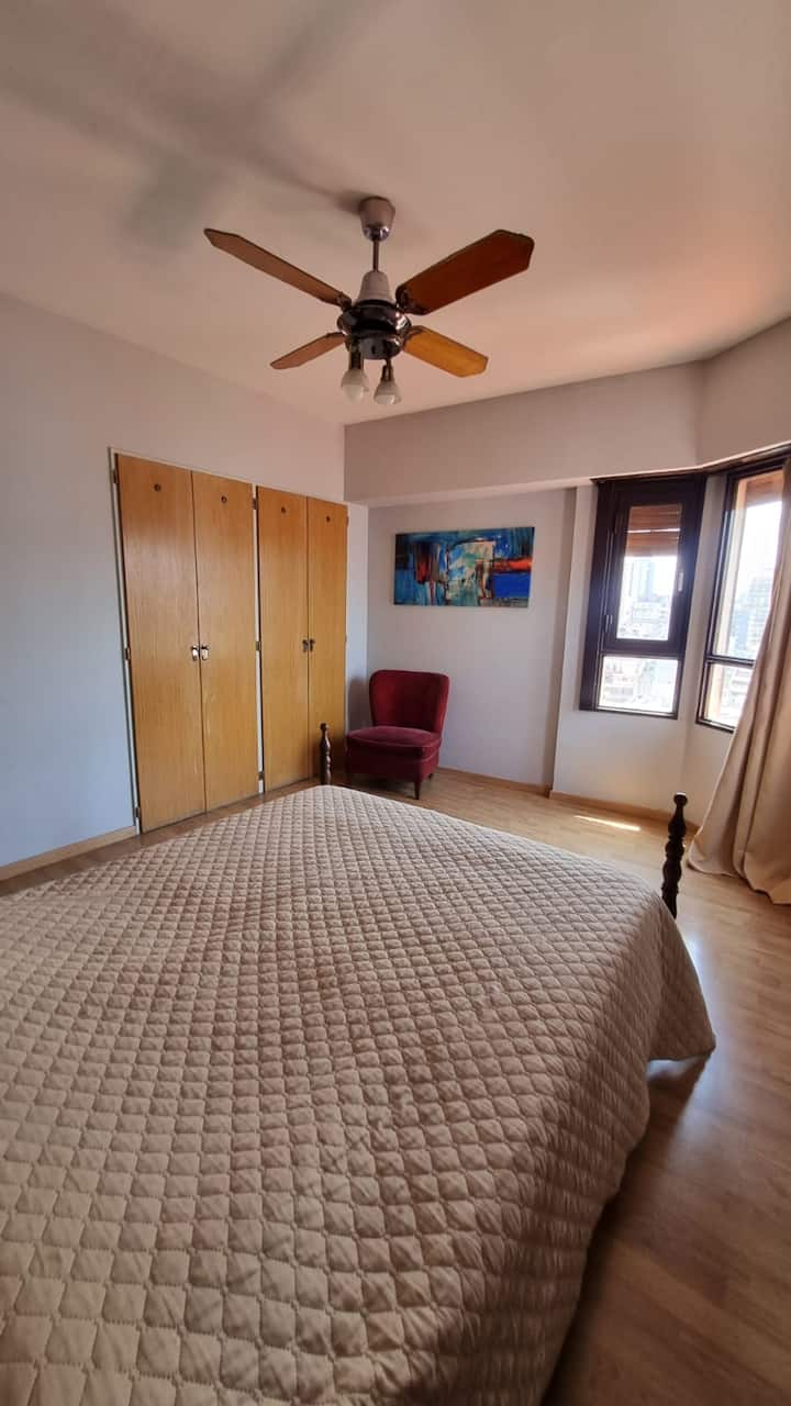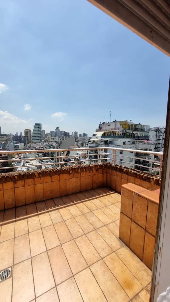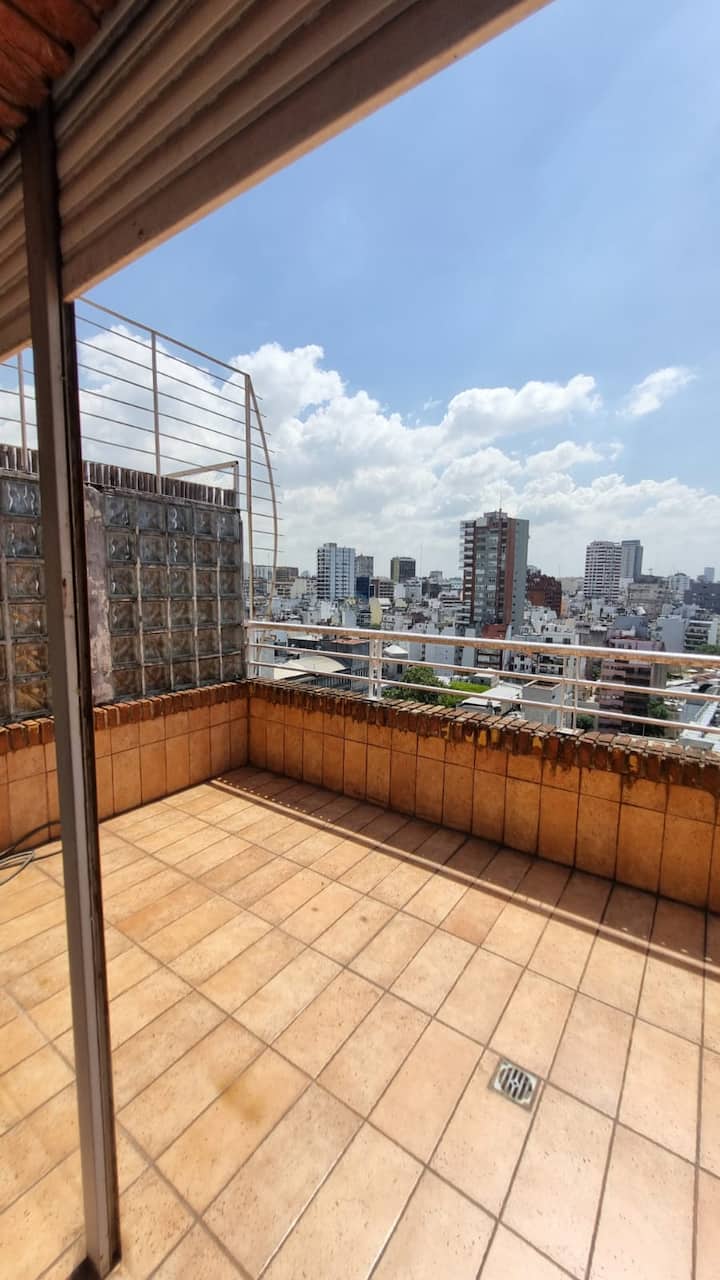 Apartamento em Recoleta com 5 ambientes e 4 dormitórios, localizado em esquina de Av. Pueyrredon e Juncal, em andar alto. Conta com dois terraços com varandas e vista para a cidade. Capacidade para 9 pessoas, com ar-condicionado e TVs LED (42" e 32").