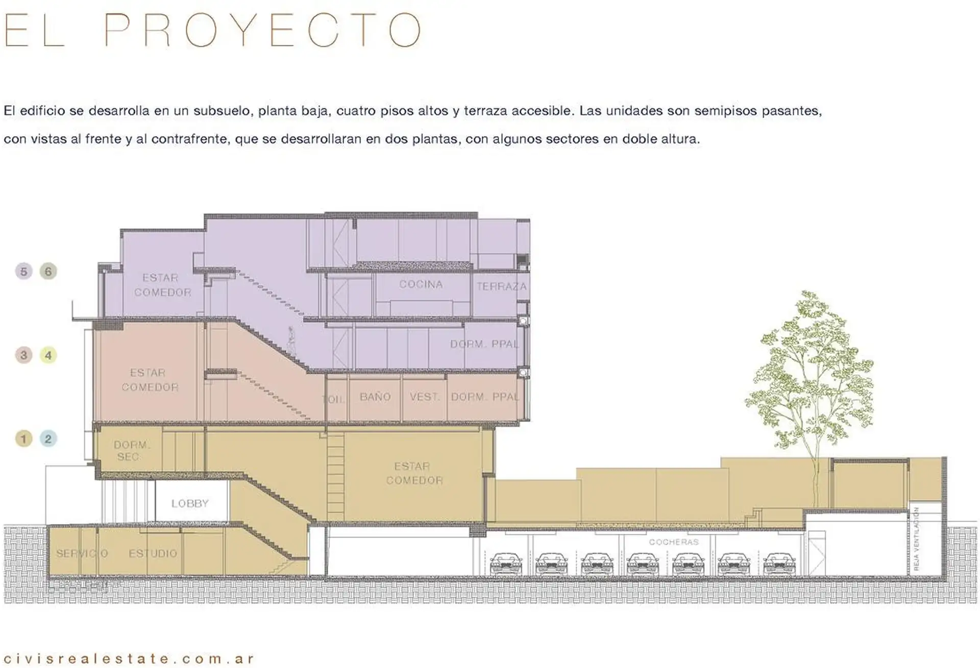 Apartamento em dúplex com 200 m² cobertos em duas plantas. Sala de estar e jantar em pé-direito duplo, cozinha integrada. São 3 dormitórios em suíte, além de dependência e estúdio, com varanda de frente para a rua. Há 6 unidades no empreendimento, e cada unidade inclui 2 vagas de garagem cobertas no subsolo no preço.