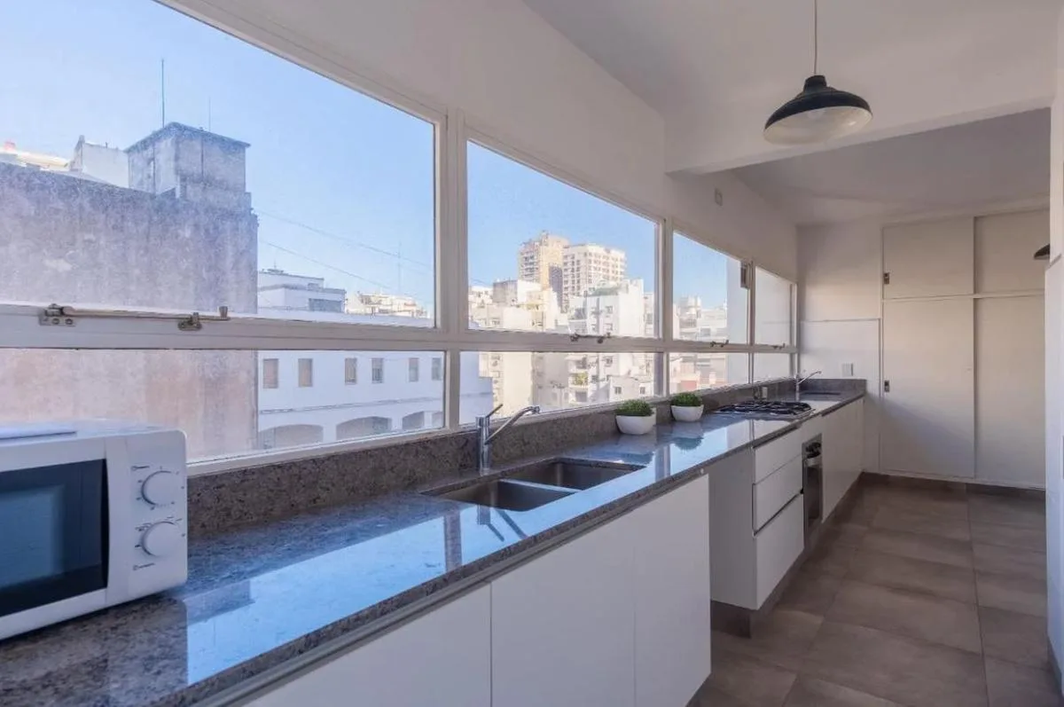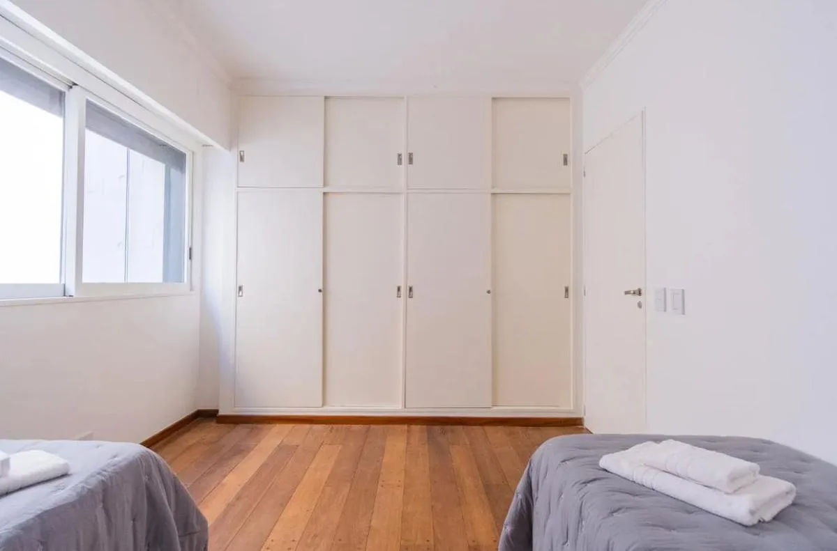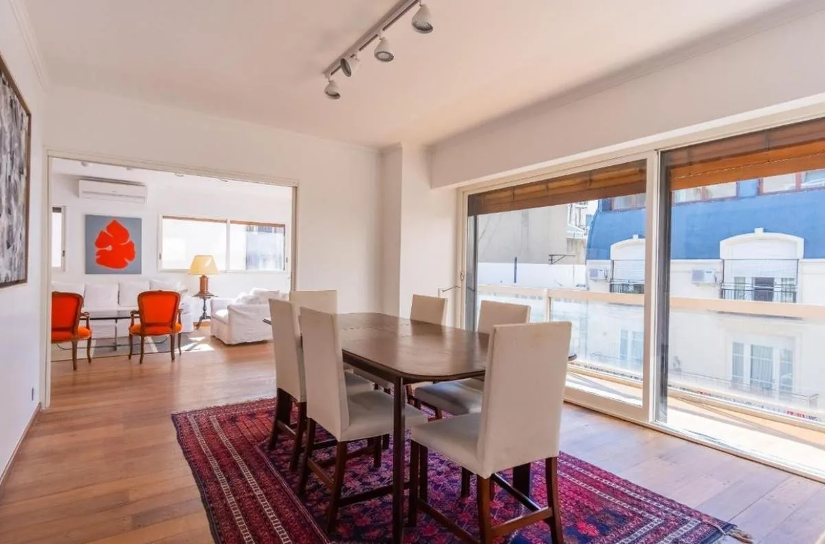 Apartamento de 5 ambientes com 170 m² em Recoleta, com 4 dormitórios. Sala de estar e jantar com varanda corrido. Dormitório principal em suíte com cama de casal; segundo dormitório com duas camas individuais; terceiro e quarto dormitórios com uma cama individual cada. Cozinha grande com área de serviço integrada. Segurança 24 horas. Despesas de luz e gás, além de limpeza final, não estão incluídas. A informação e as medidas são aproximadas.