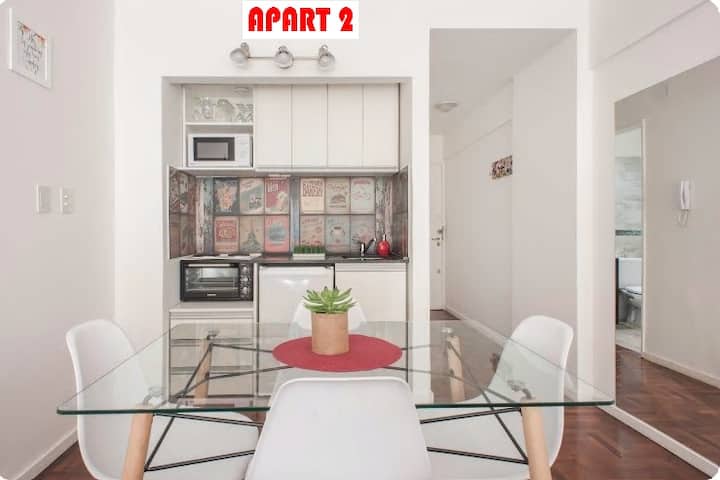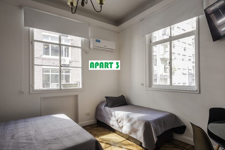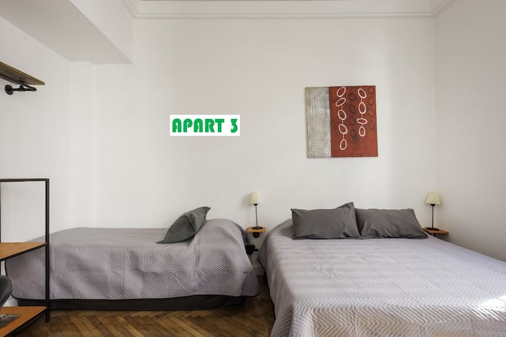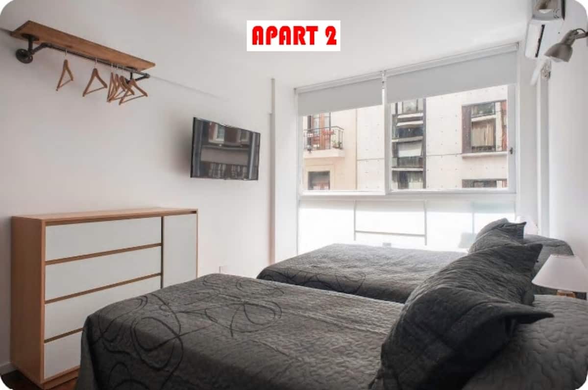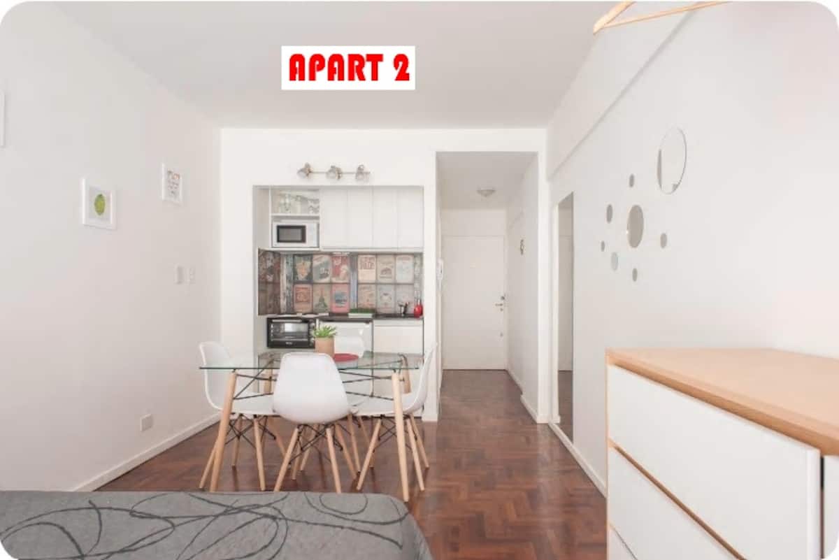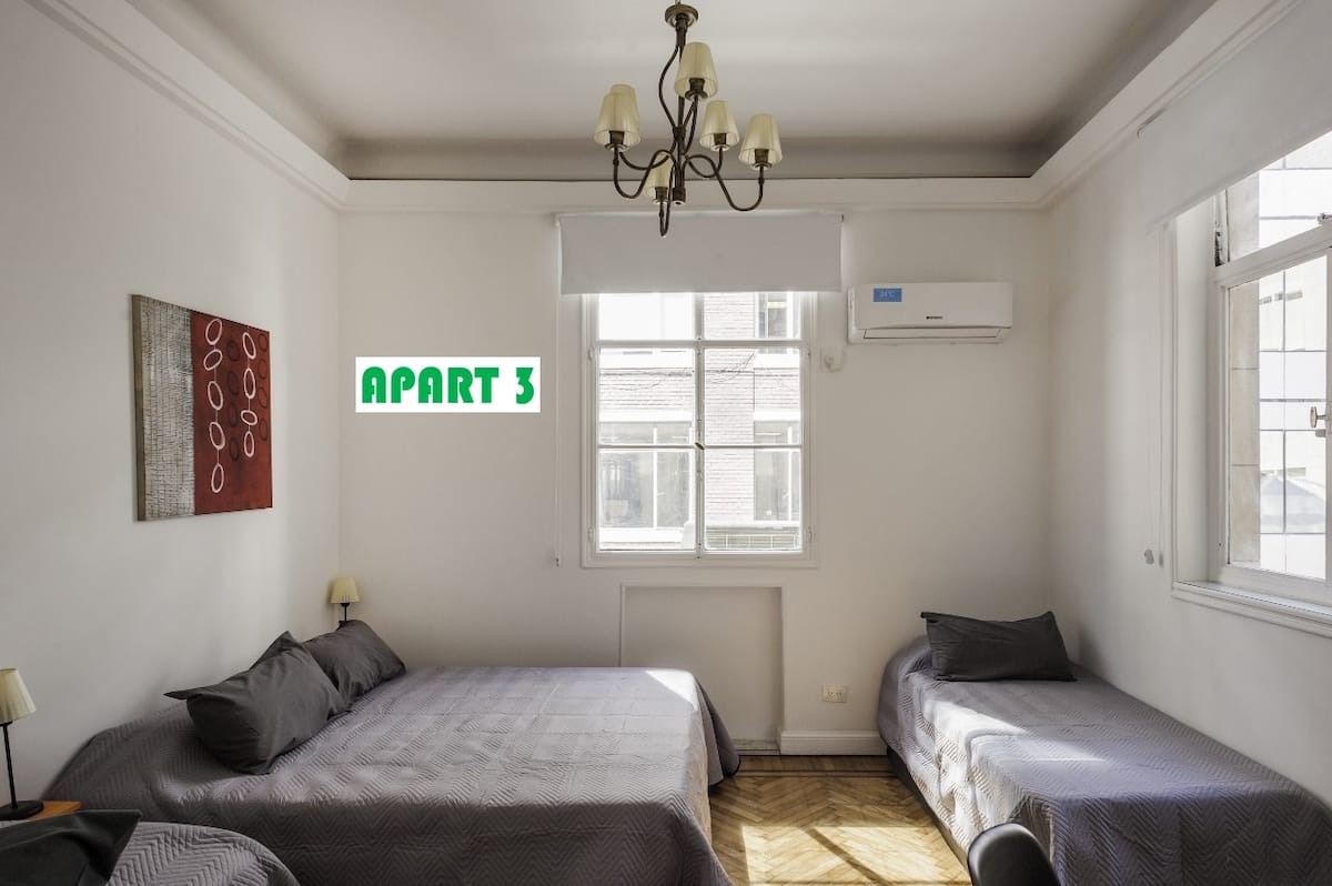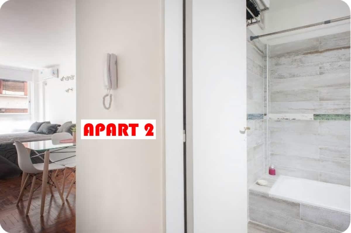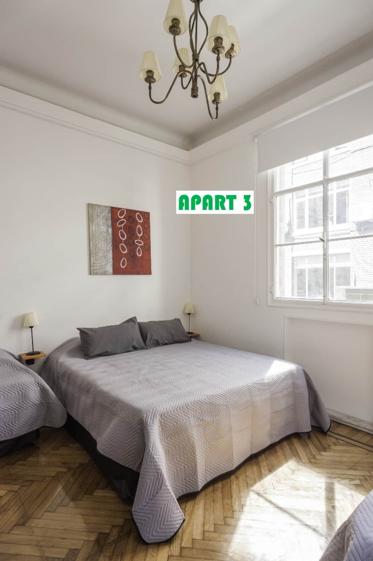 Três apartamentos ficam a 300 metros do mesmo ponto em Retiro. Dois deles estão no mesmo prédio e o terceiro em outro prédio, a 300 metros. Acomodações: até 11 pessoas nos dois apartamentos do mesmo prédio e até 4 pessoas no apartamento do outro prédio, totalizando até 15 pessoas. O imóvel está a cerca de 300 metros de Puerto Madero.