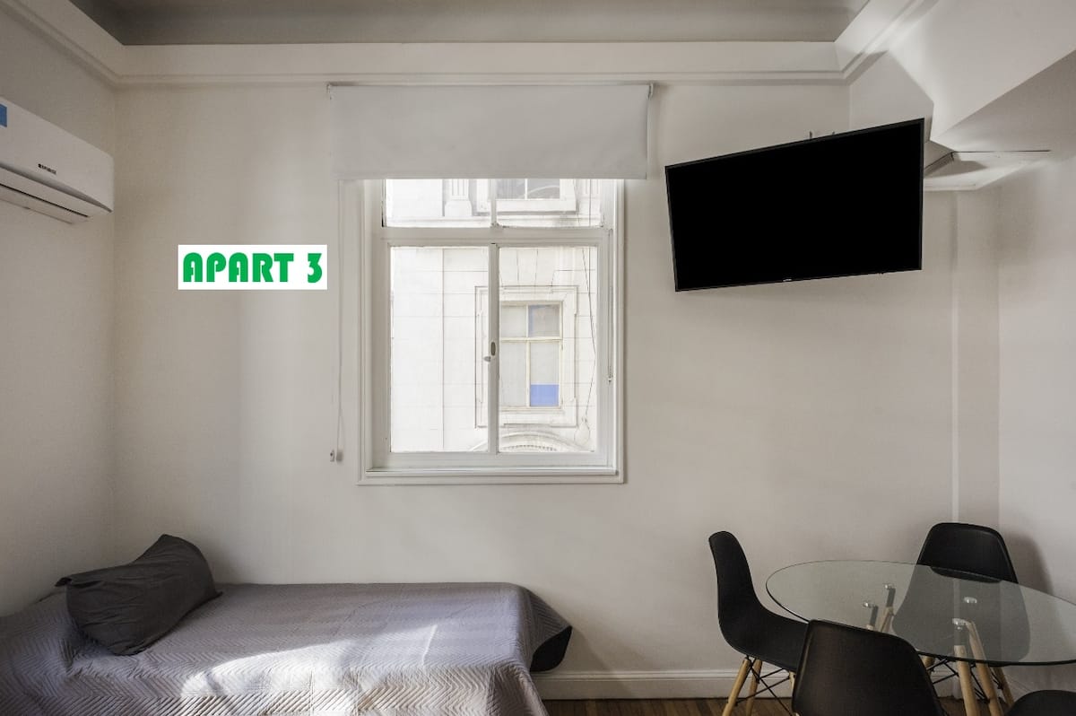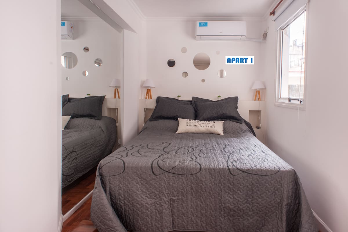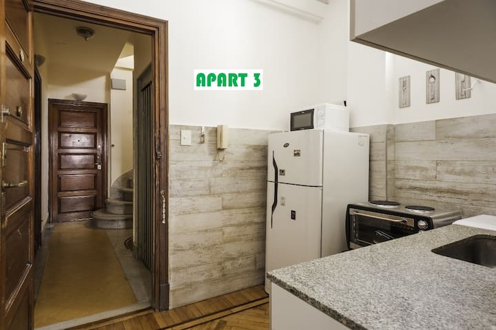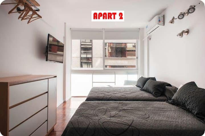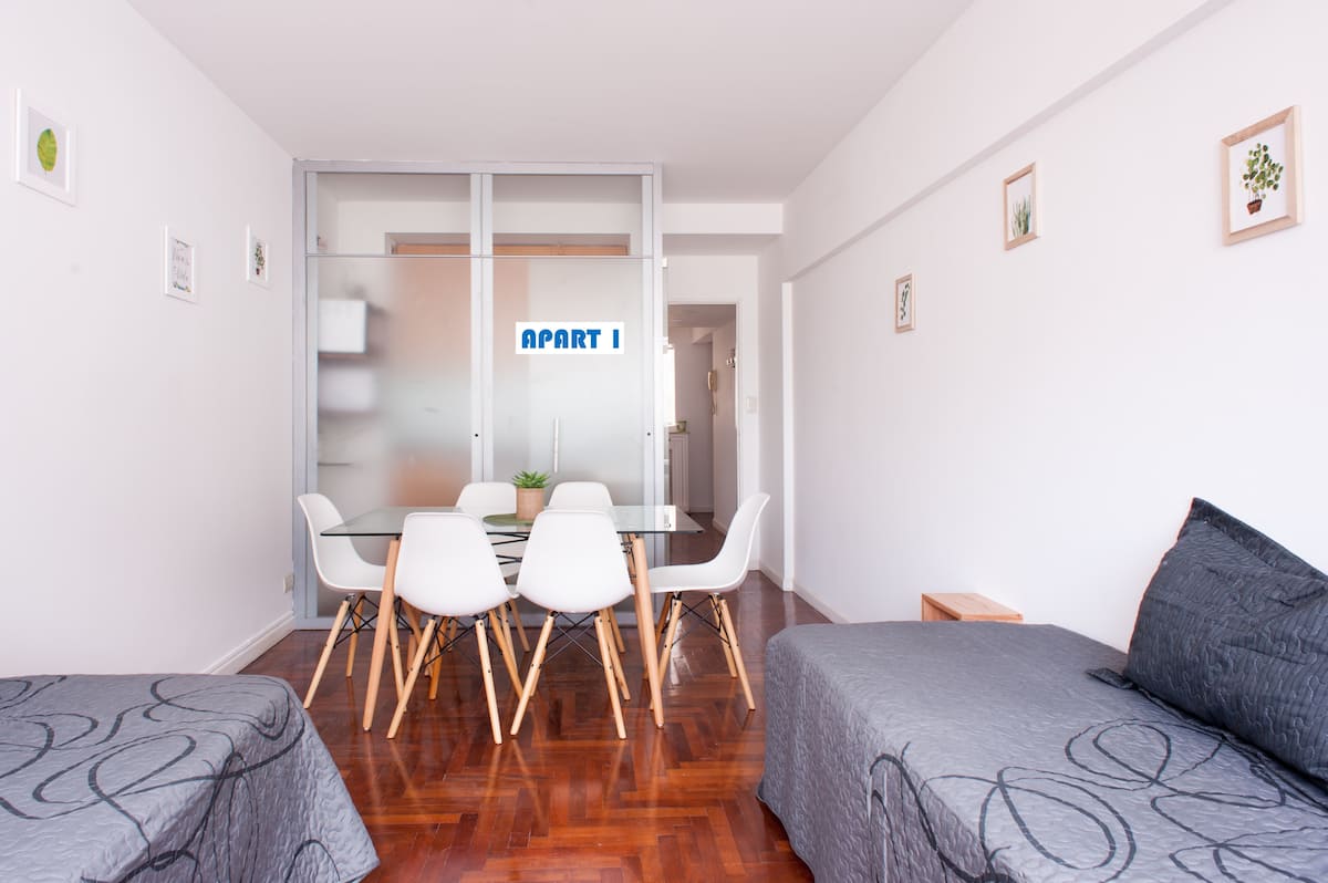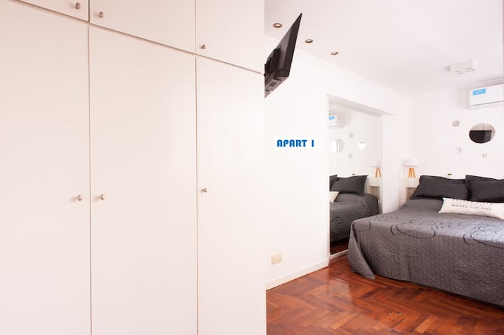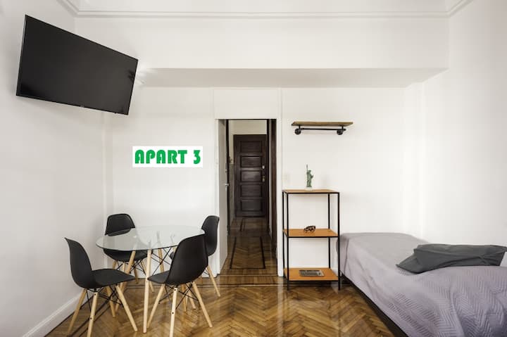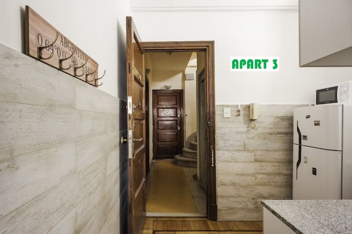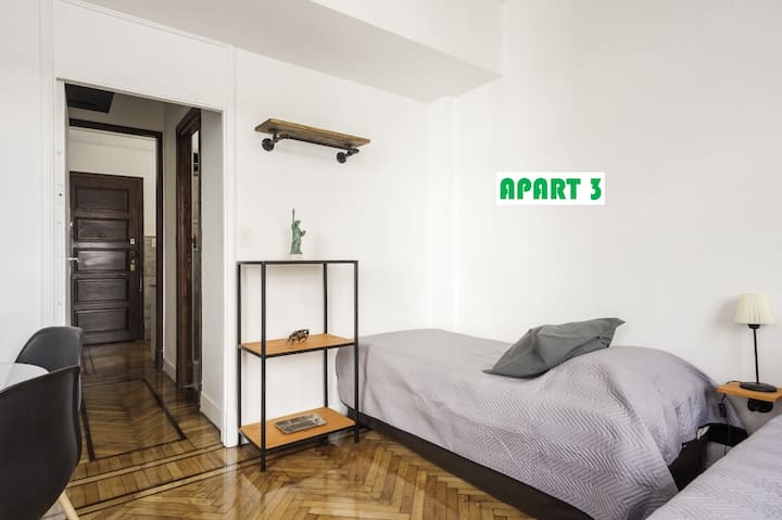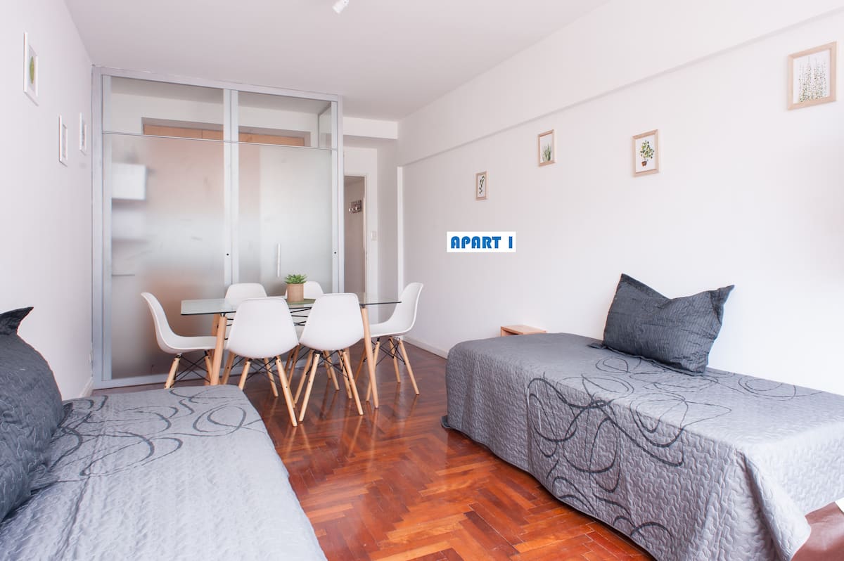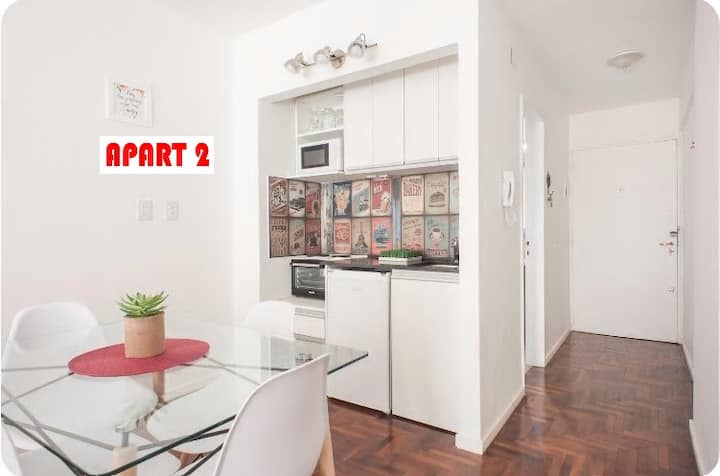 Três apartamentos ficam a 300 metros do mesmo ponto em Retiro. Dois deles estão no mesmo prédio e o terceiro em outro prédio, a 300 metros. Acomodações: até 11 pessoas nos dois apartamentos do mesmo prédio e até 4 pessoas no apartamento do outro prédio, totalizando até 15 pessoas. O imóvel está a cerca de 300 metros de Puerto Madero.