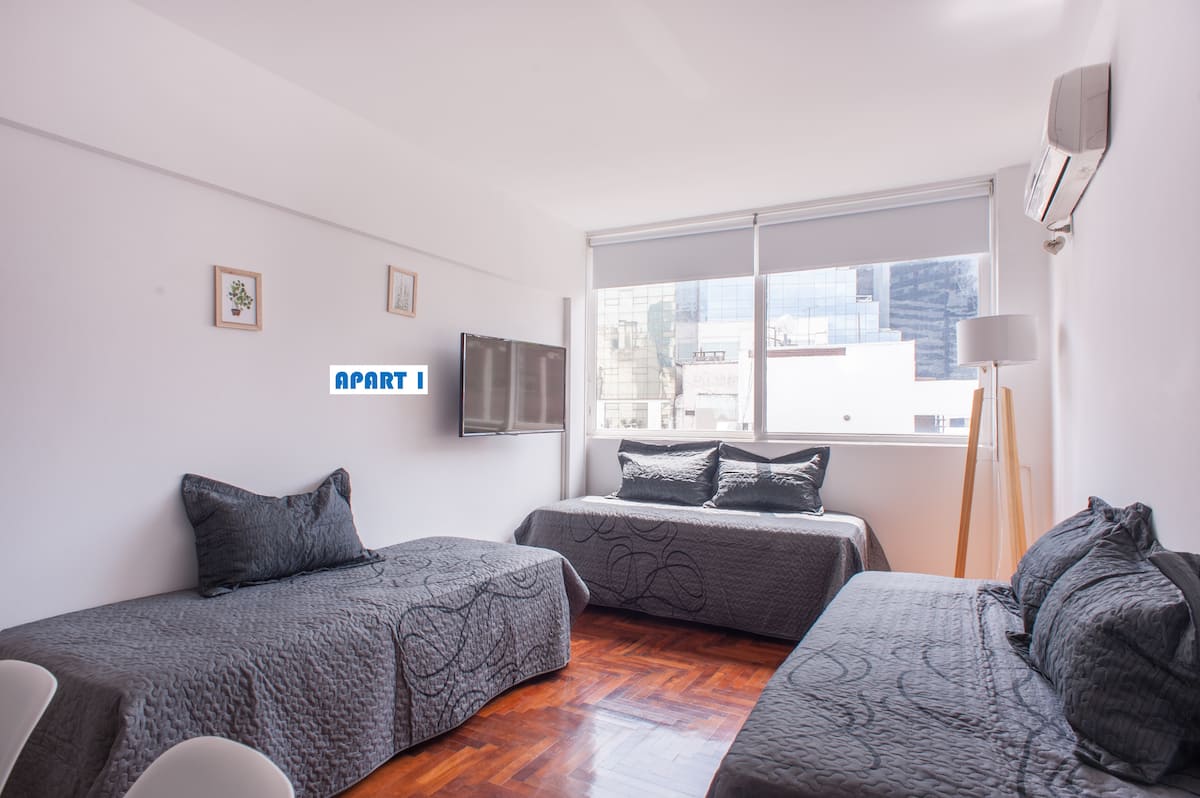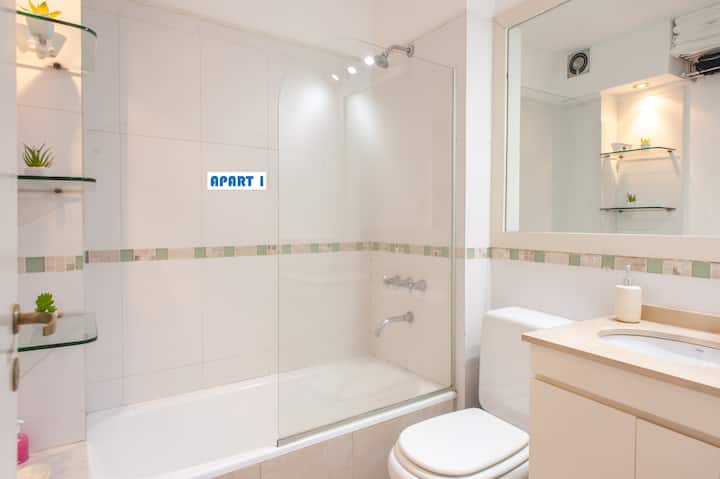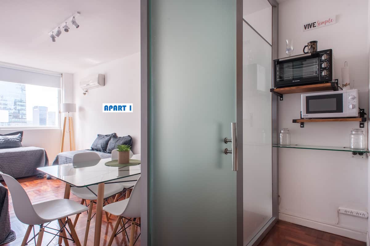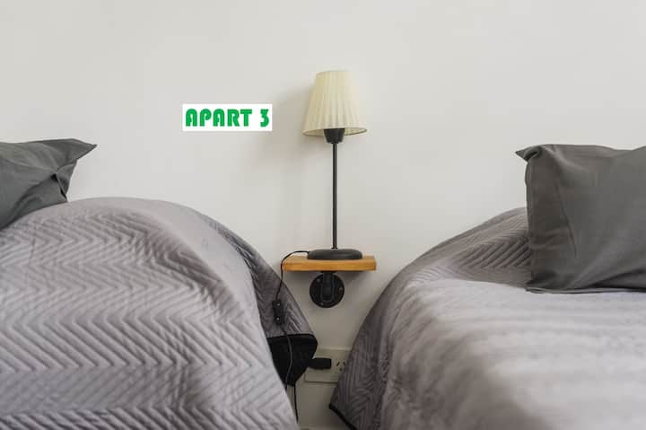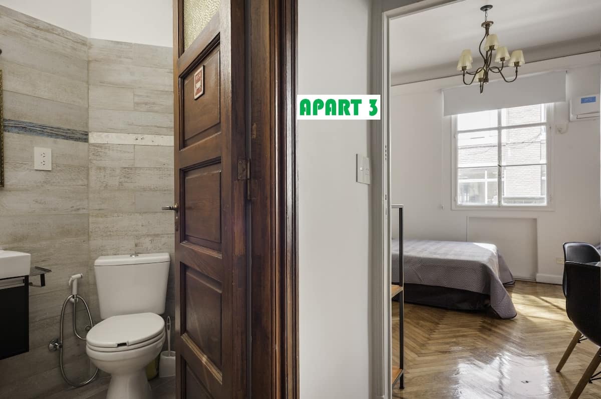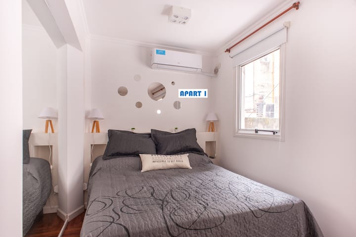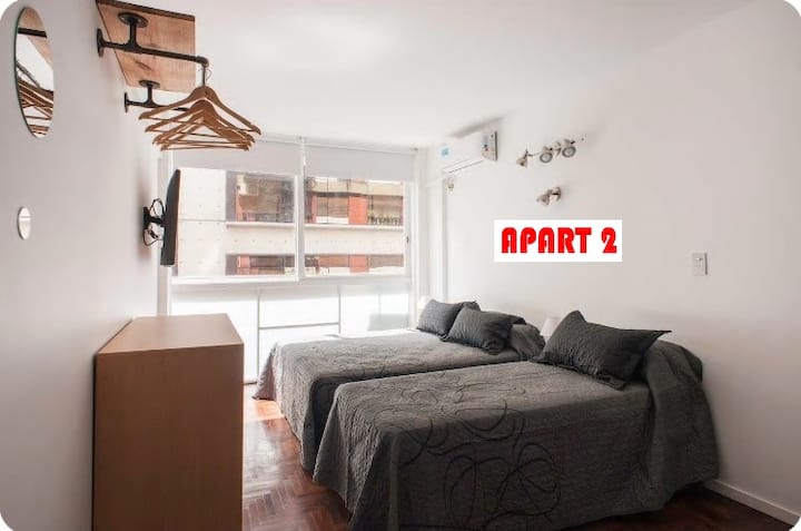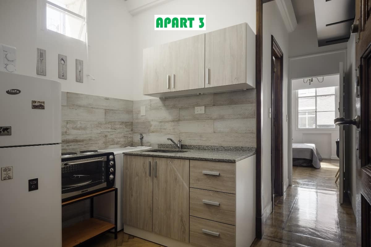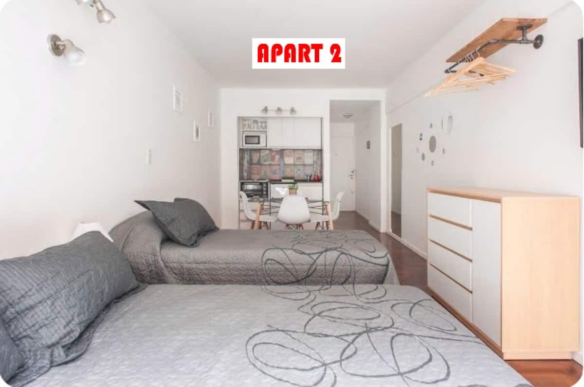 Três apartamentos ficam a 300 metros do mesmo ponto em Retiro. Dois deles estão no mesmo prédio e o terceiro em outro prédio, a 300 metros. Acomodações: até 11 pessoas nos dois apartamentos do mesmo prédio e até 4 pessoas no apartamento do outro prédio, totalizando até 15 pessoas. O imóvel está a cerca de 300 metros de Puerto Madero.