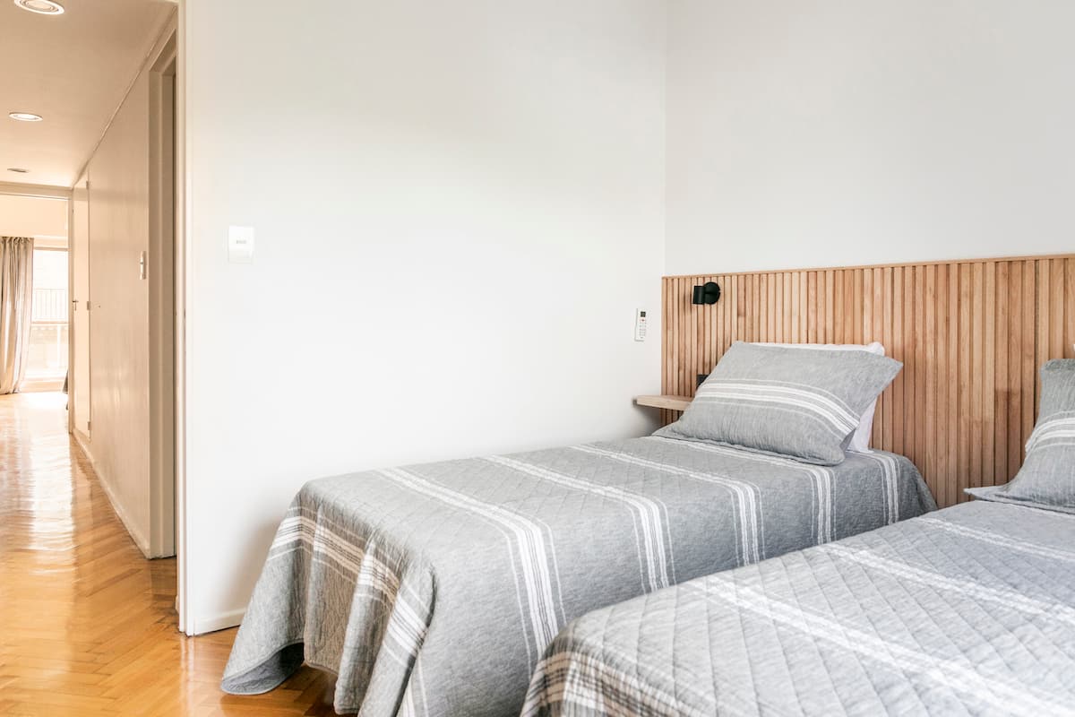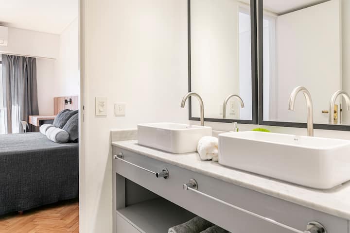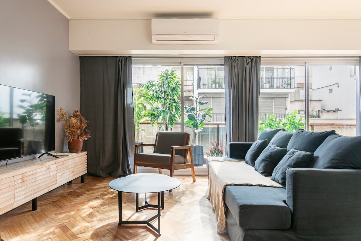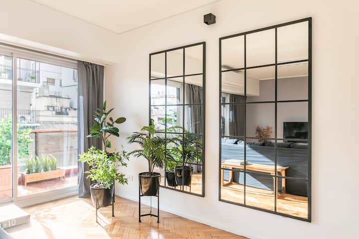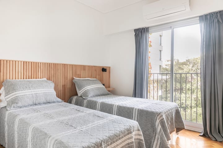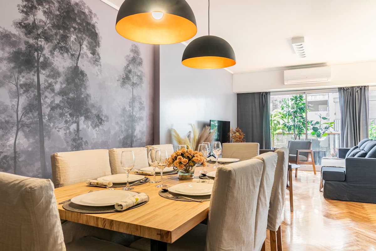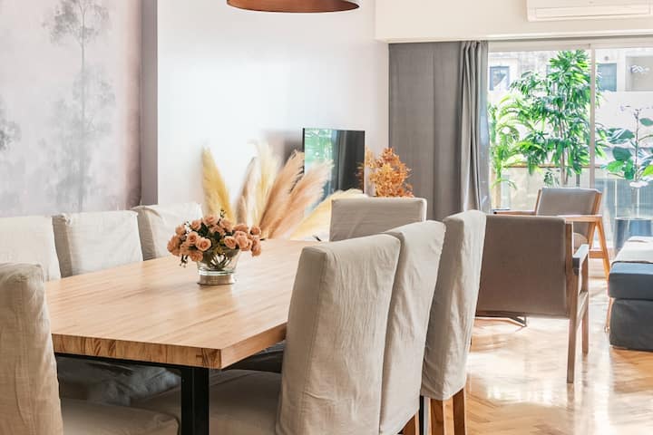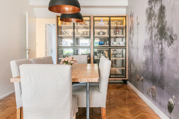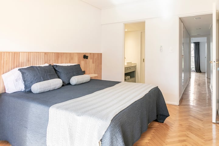Apartamento com 4 dormitórios e 145 m² em Recoleta, no 9º andar, recém-reformado. O imóvel tem duas entradas independentes e ocupa o andar inteiro, com acesso pela área social de sala de estar e jantar e varanda privativa com vista para a rua Posadas. A planta inclui 4 quartos, com 2 suítes, 3 banheiros completos no total, cozinha totalmente equipada com refeitório diário e ar-condicionado para quente e frio em todos os ambientes, além de aquecimento por piso radiante no inverno. Há área de trab