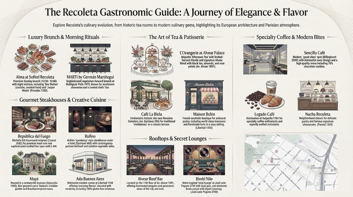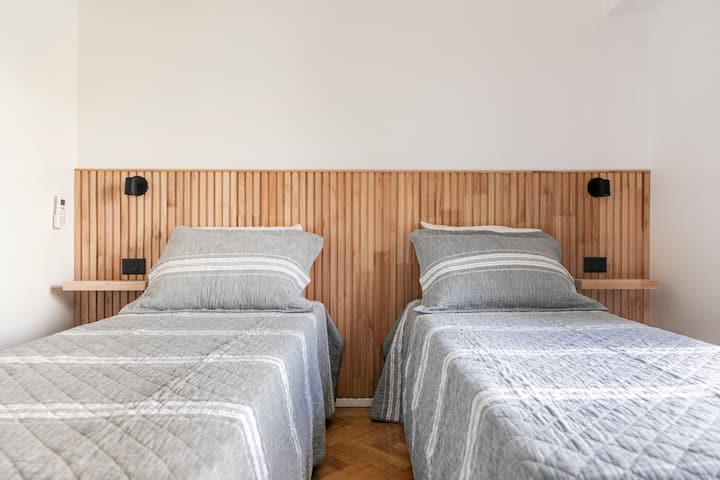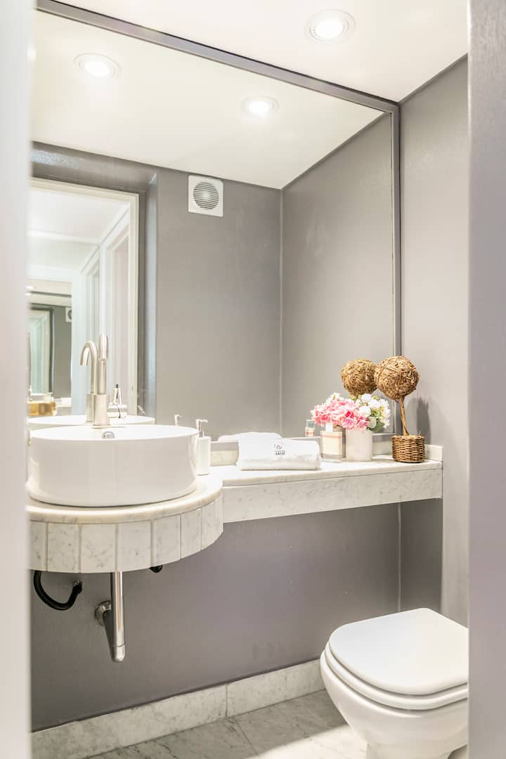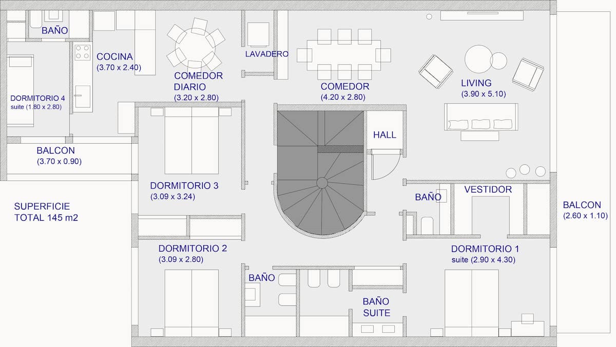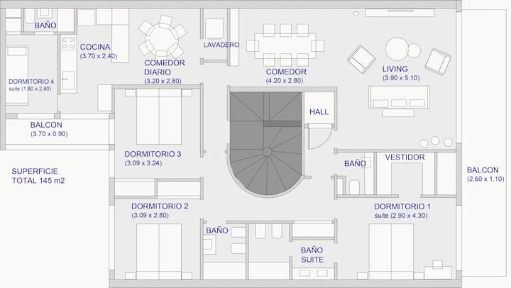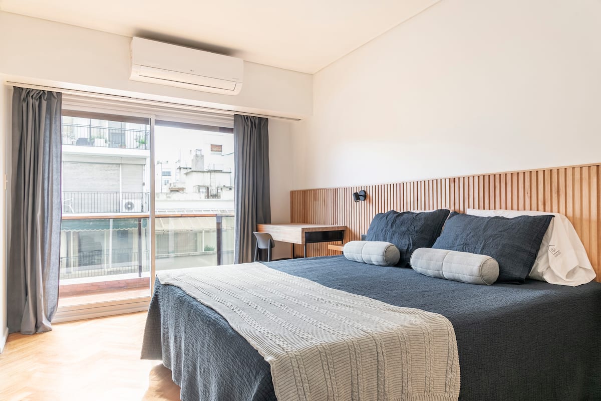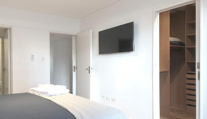 Apartamento com 4 dormitórios e 145 m² em Recoleta, no 9º andar, recém-reformado. O imóvel tem duas entradas independentes e ocupa o andar inteiro, com acesso pela área social de sala de estar e jantar e varanda privativa com vista para a rua Posadas. A planta inclui 4 quartos, com 2 suítes, 3 banheiros completos no total, cozinha totalmente equipada com refeitório diário e ar-condicionado para quente e frio em todos os ambientes, além de aquecimento por piso radiante no inverno. Há área de trab