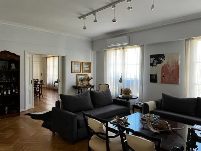 Apartamento reformado em Retiro, com 2 suítes, 4 dormitórios, pallier privado e entrada principal e de serviço. O imóvel tem hall amplo, living e sala de jantar, lavabo de recepção e cozinha com refeitório diário; inclui dependência com banheiro, quarto de passar roupa e área de lavanderia. Há aquecimento central e água quente, e o prédio tem segurança, estilo inglês, 75 anos de idade, térreo (PB) e 9 andares, com elevador principal e de serviço originais. Fica na Av. Juncal, a metros de Plaza S