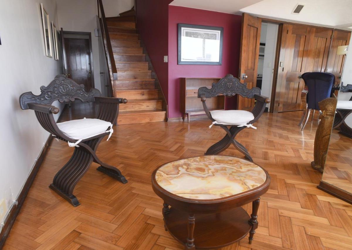 Cobertura em dois pavimentos (22º e 23º) em torre com frente ao Edificio Kavanagh, em Retiro, a cerca de 50 m da Plaza San Martín e da Calle Florida. São 250 m²; 4 dormitórios, sendo 3 suítes, além de dependência de serviço. Há 2 salas de jantar nos pisos 22 e 23 e terraço privativo coberto de 50 m² com piscina particular. Inclui vaga de garagem. Totalmente mobiliada e equipada com ar-condicionado, aquecimento por piso radiante e hidromassagem. O condomínio informa segurança com câmeras e recepç