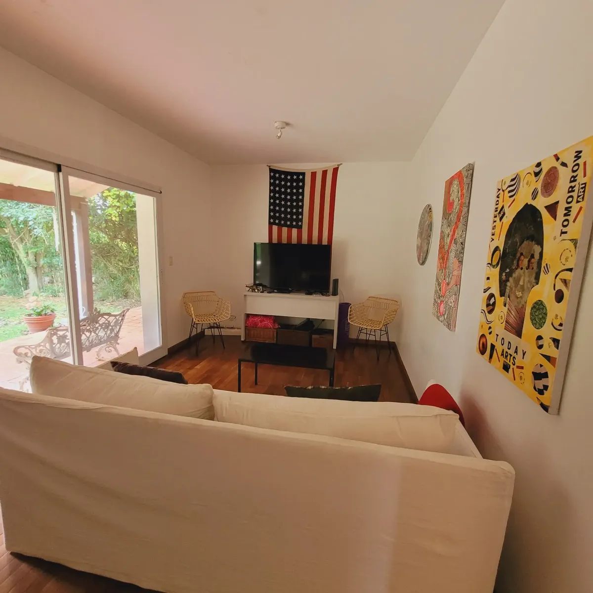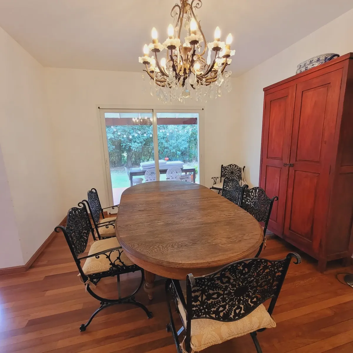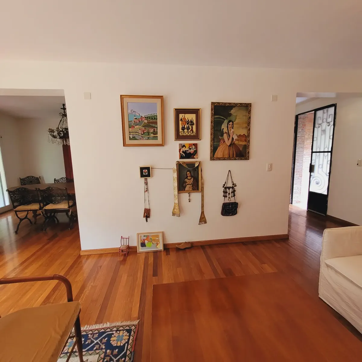Casa em bairro fechado em San Fernando, mobiliada para estadia temporária, com 4 dormitórios e ambientes distribuídos em dois pavimentos. No térreo há hall de recepção, sala com lareira a lenha e janelas amplas, sala de estar com TV ou escritório, lavabo, cozinha ampla e dependência de serviço com banheiro. No piso superior há 4 dormitórios, sendo o principal em suíte com closet, outro em suíte e 2 dormitórios com banheiros completos, além de mezanino de 50 m² com janelas e acesso por elevador.
