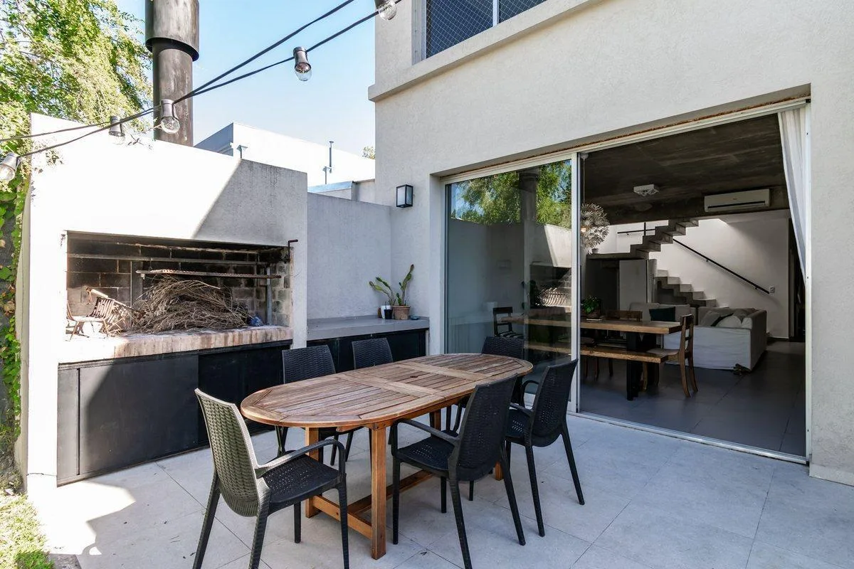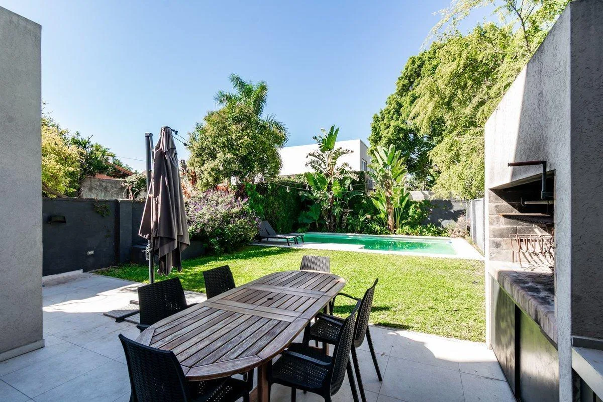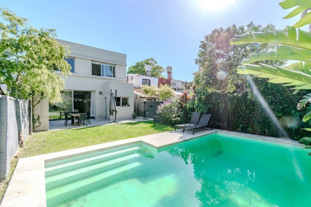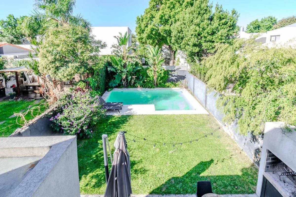 Casa para alugar em Buenos Aires, com hall na entrada, living com área de jantar integrada à cozinha em conceito aberto e grande janela voltada para o jardim. Conta com lavabo, escritório ou dormitório na parte da frente e garagem coberta. No exterior, há churrasqueira e piscina cercada por área verde. No andar superior, dispõe de hall de distribuição com armário para roupas e 3 dormitórios; o principal tem closet e banheiro em suíte com hidromassagem e ducha. A calefação é por radiadores com ca