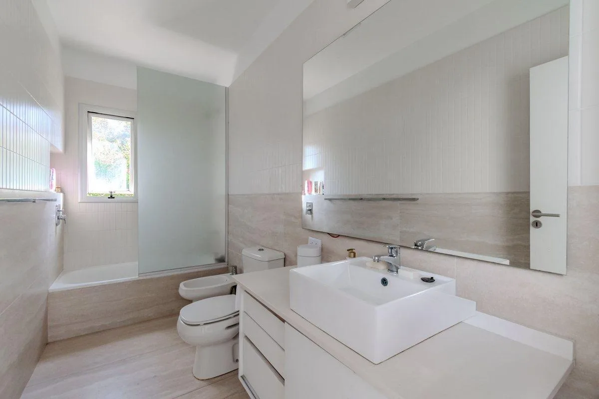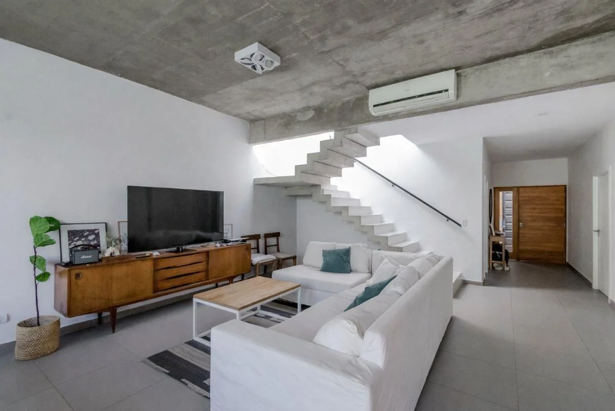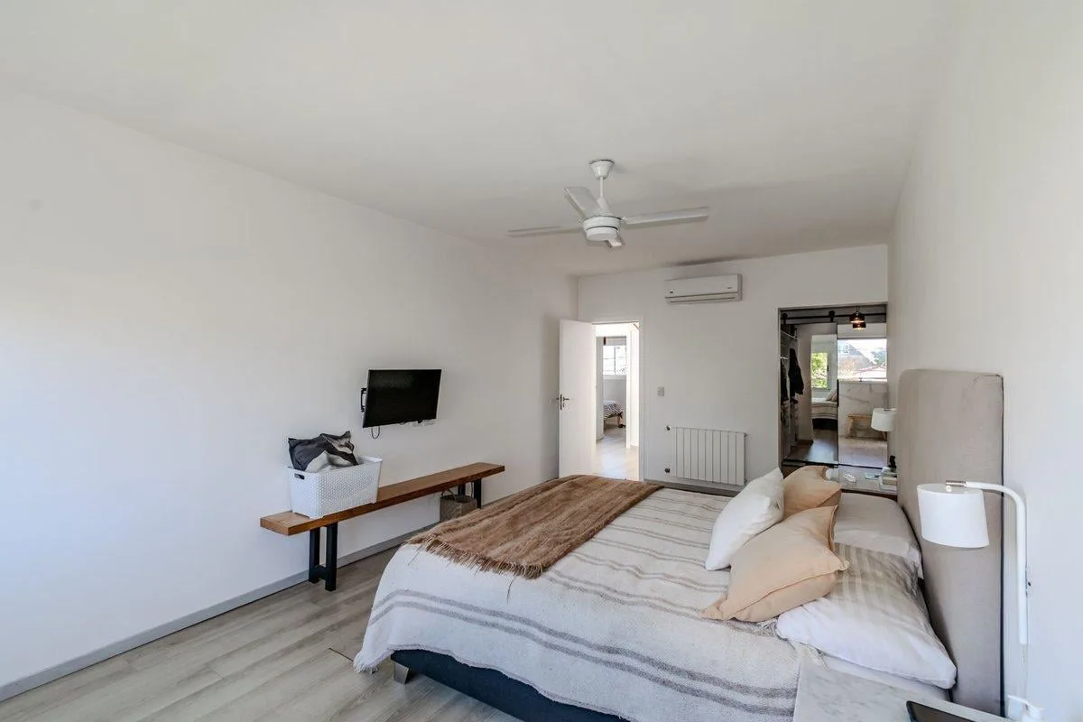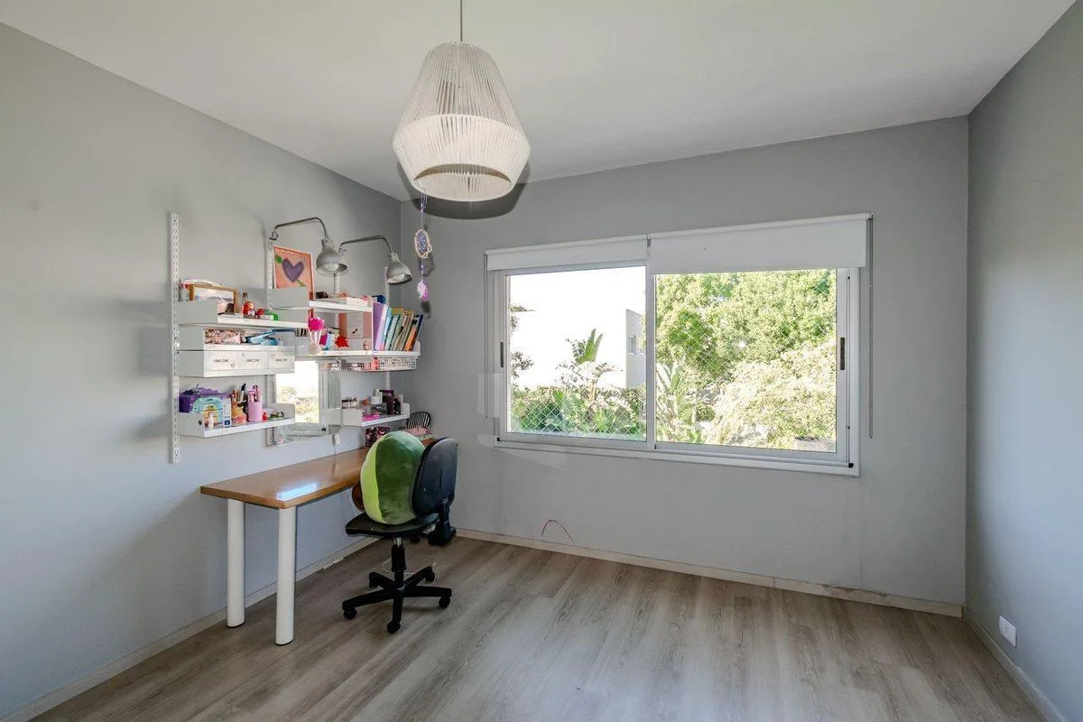 Casa para alugar em Buenos Aires, com hall na entrada, living com área de jantar integrada à cozinha em conceito aberto e grande janela voltada para o jardim. Conta com lavabo, escritório ou dormitório na parte da frente e garagem coberta. No exterior, há churrasqueira e piscina cercada por área verde. No andar superior, dispõe de hall de distribuição com armário para roupas e 3 dormitórios; o principal tem closet e banheiro em suíte com hidromassagem e ducha. A calefação é por radiadores com ca