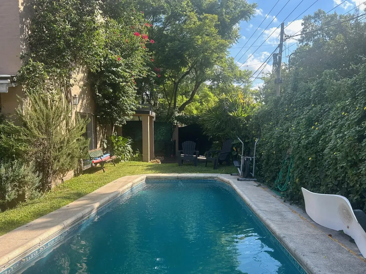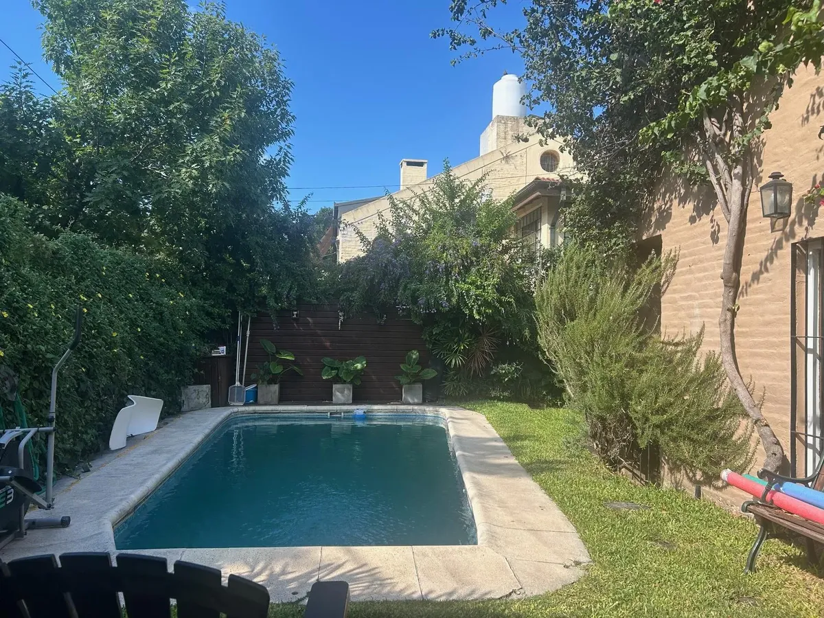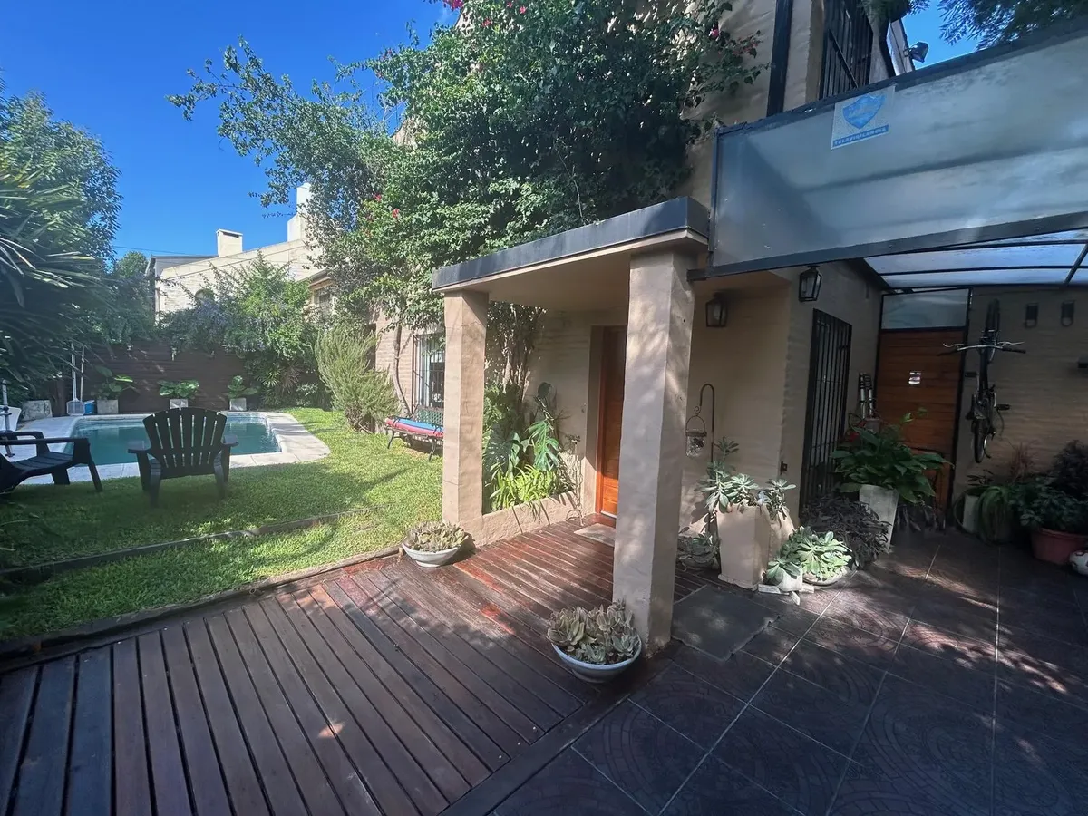 Casa de 4 dormitórios para aluguel em San Isidro, a poucos minutos do centro comercial de La Horqueta, em rua tranquila. No térreo: sala com lareira e acesso ao deck e ao jardim, sala de jantar com acesso à galeria, cozinha com móveis completos e despensa, lavabo, depósito familiar ou dependência de serviço com banheiro, galeria com área de churrasco e forno, deck com pátio e jardim ajardinado, além de vaga para 2 carros (1 coberta). No piso superior: dormitório principal com dois armários e vis