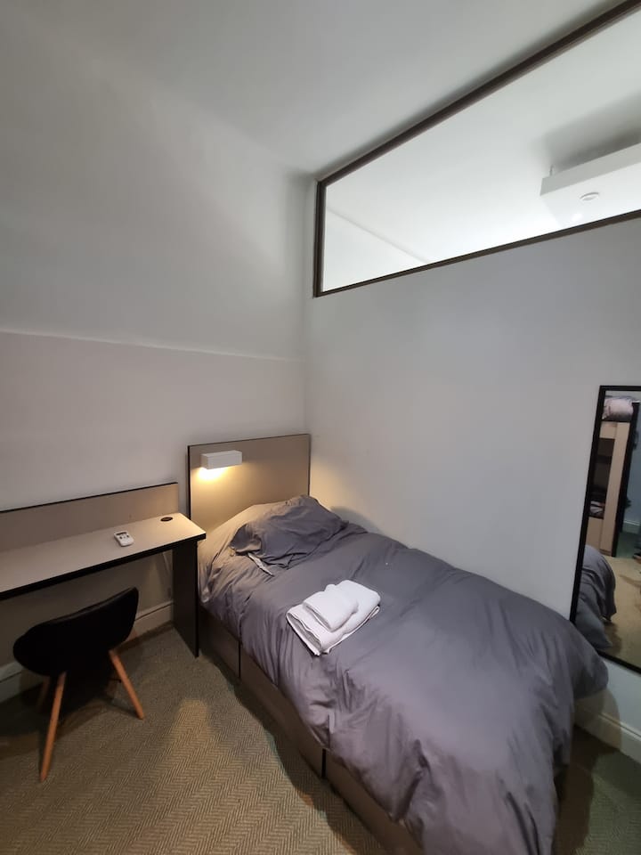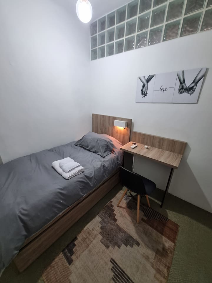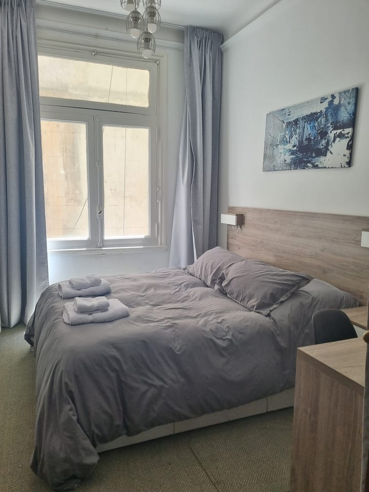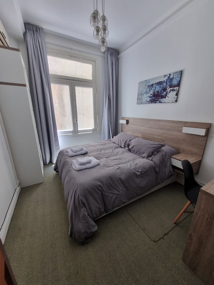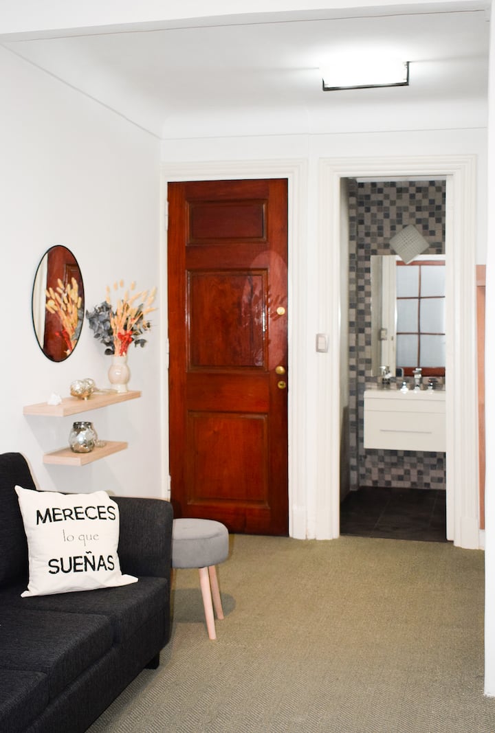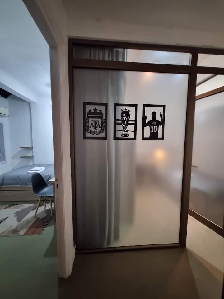 Apartamento com 4 quartos em San Nicolás, com piso e planta do imóvel distribuídos em 4 dormitórios, sala, cozinha equipada e pátio privativo. O pátio integra o acesso dos hóspedes, junto com todo o apartamento. Há TV na sala e em um dos quartos duplos. O edifício tem detalhes arquitetônicos de época e conta com segurança 24 horas.