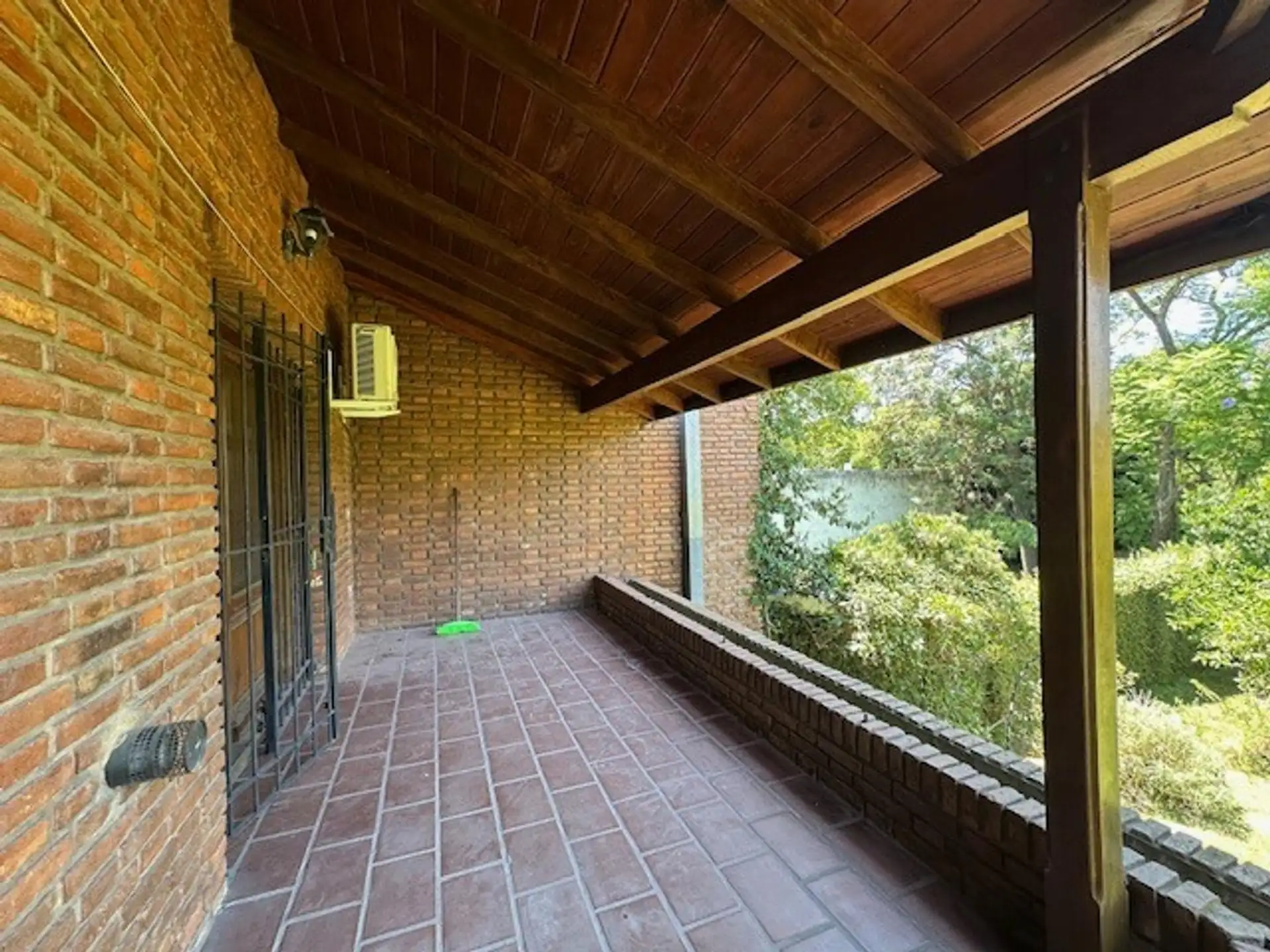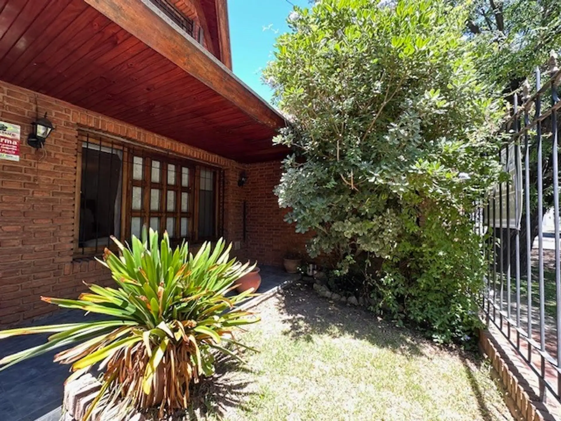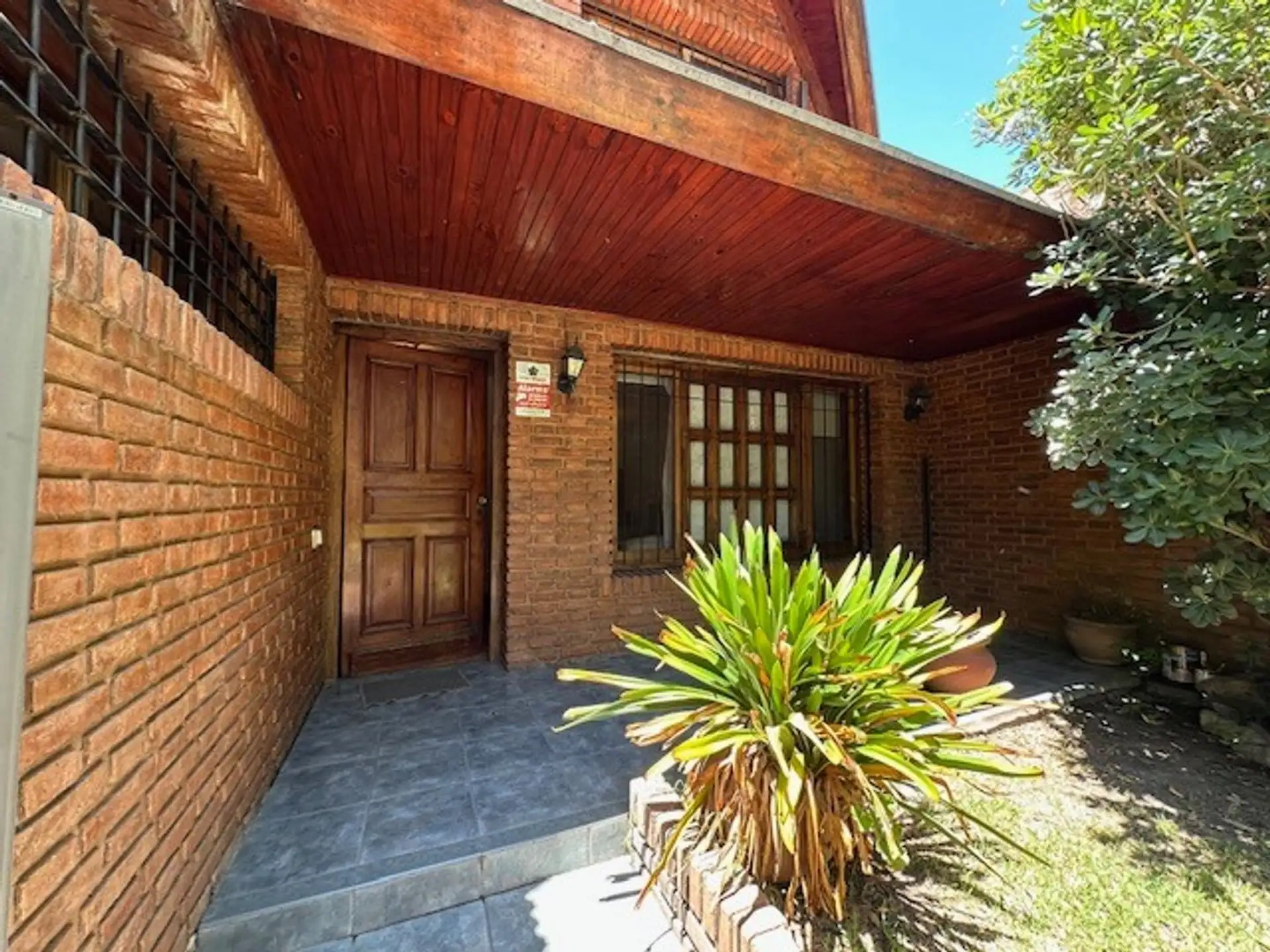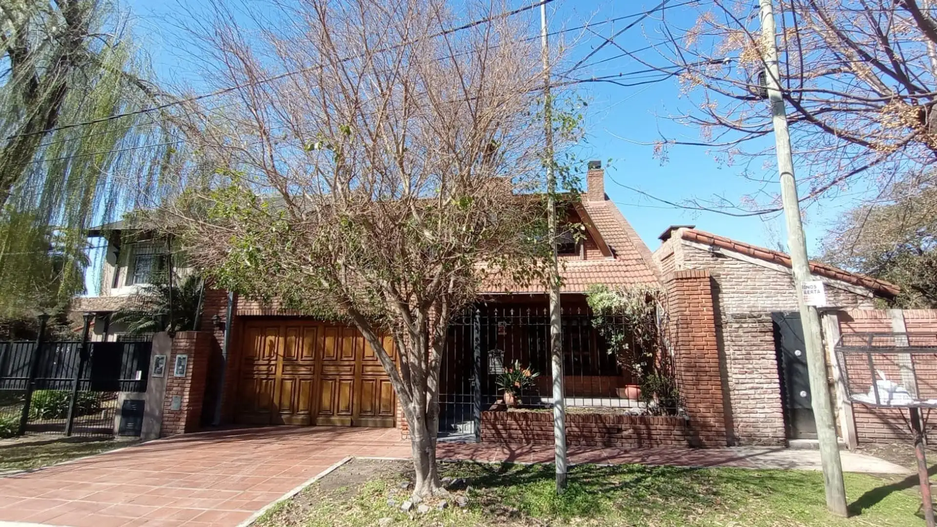 Chalé de 5 ambientes para aluguel em Don Torcuato, com 4 dormitórios (sendo 1 suíte no andar superior) e 271 m² cobertos. Casa com porch de entrada, sala em desnível (com possibilidade de instalação de salamandra), lavabo, sala de jantar, cozinha com comedor diário e área de lavanderia, além de vaga coberta para 2 autos e acesso por escada ao andar superior. Na área externa há galeria com área de churrasco, galpão, parque e sistema de irrigação por aspersão. Construção com cerca de 34 anos; lote
