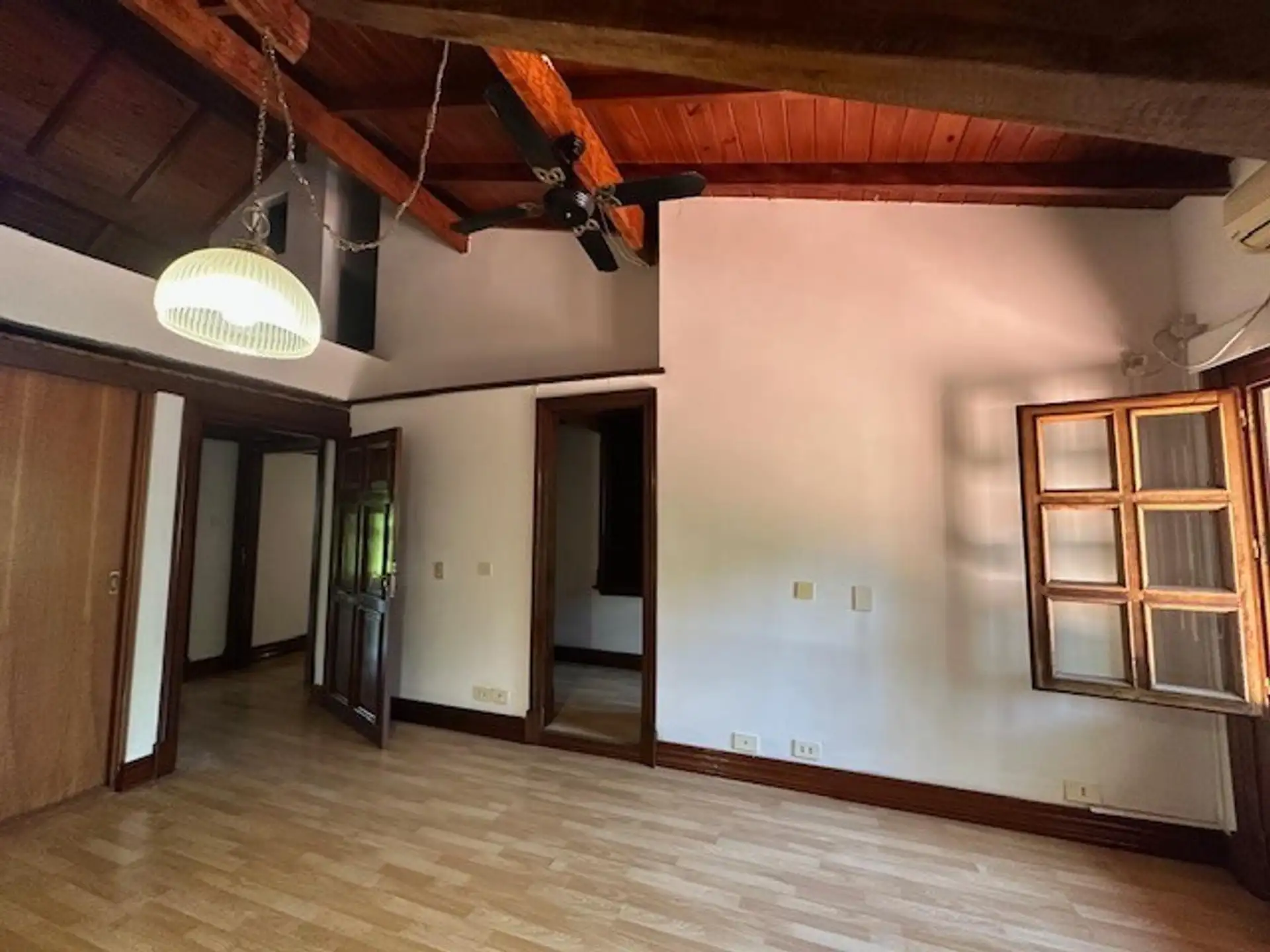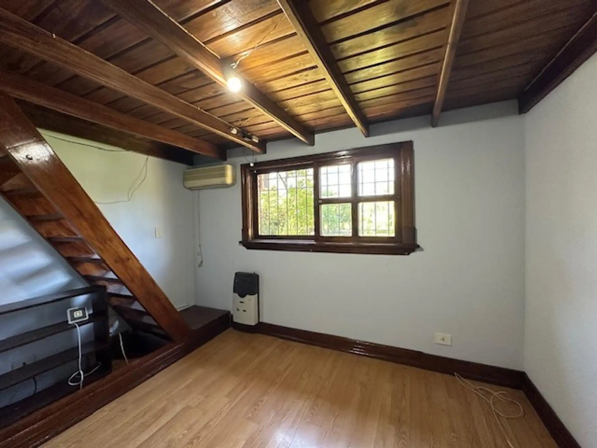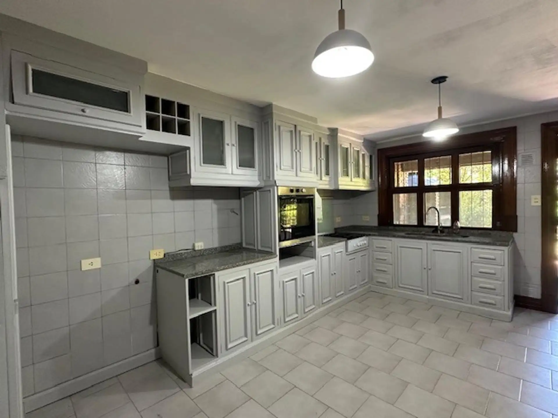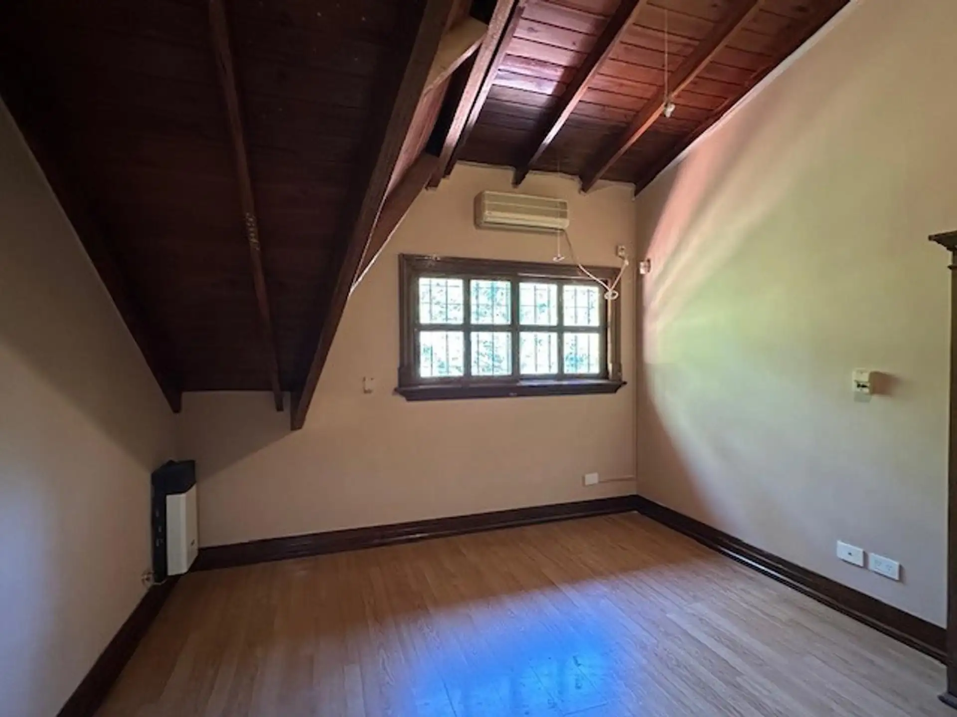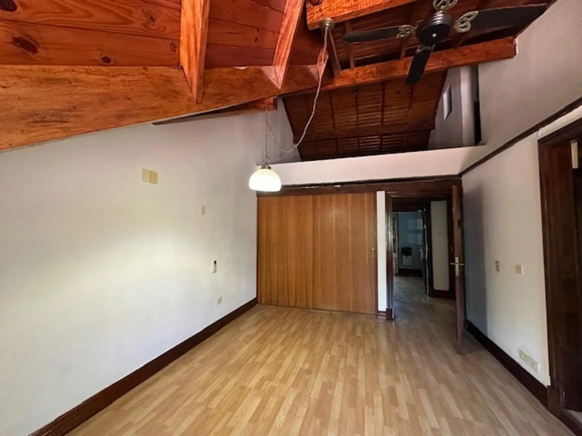 Chalé de 5 ambientes para aluguel em Don Torcuato, com 4 dormitórios (sendo 1 suíte no andar superior) e 271 m² cobertos. Casa com porch de entrada, sala em desnível (com possibilidade de instalação de salamandra), lavabo, sala de jantar, cozinha com comedor diário e área de lavanderia, além de vaga coberta para 2 autos e acesso por escada ao andar superior. Na área externa há galeria com área de churrasco, galpão, parque e sistema de irrigação por aspersão. Construção com cerca de 34 anos; lote