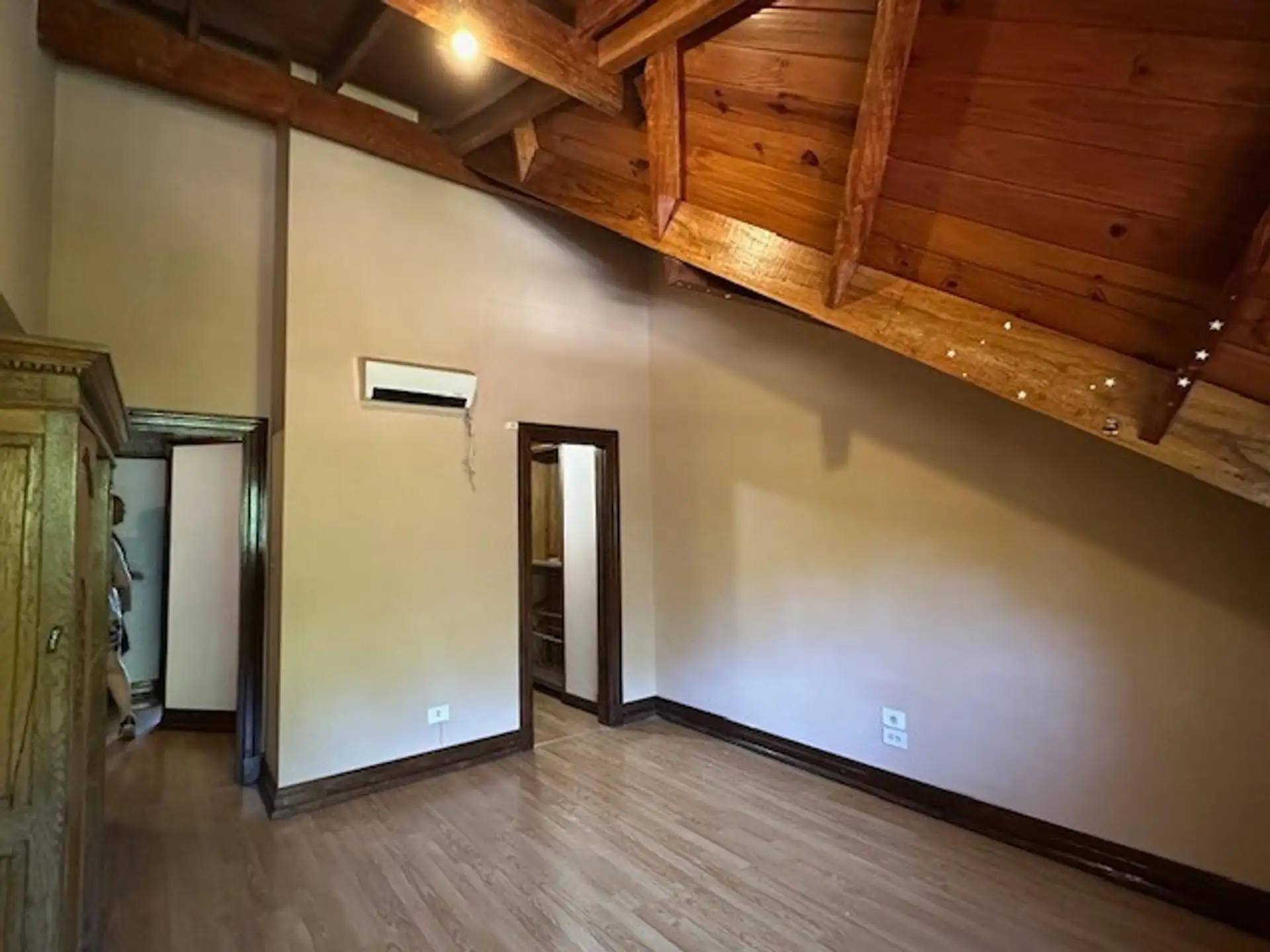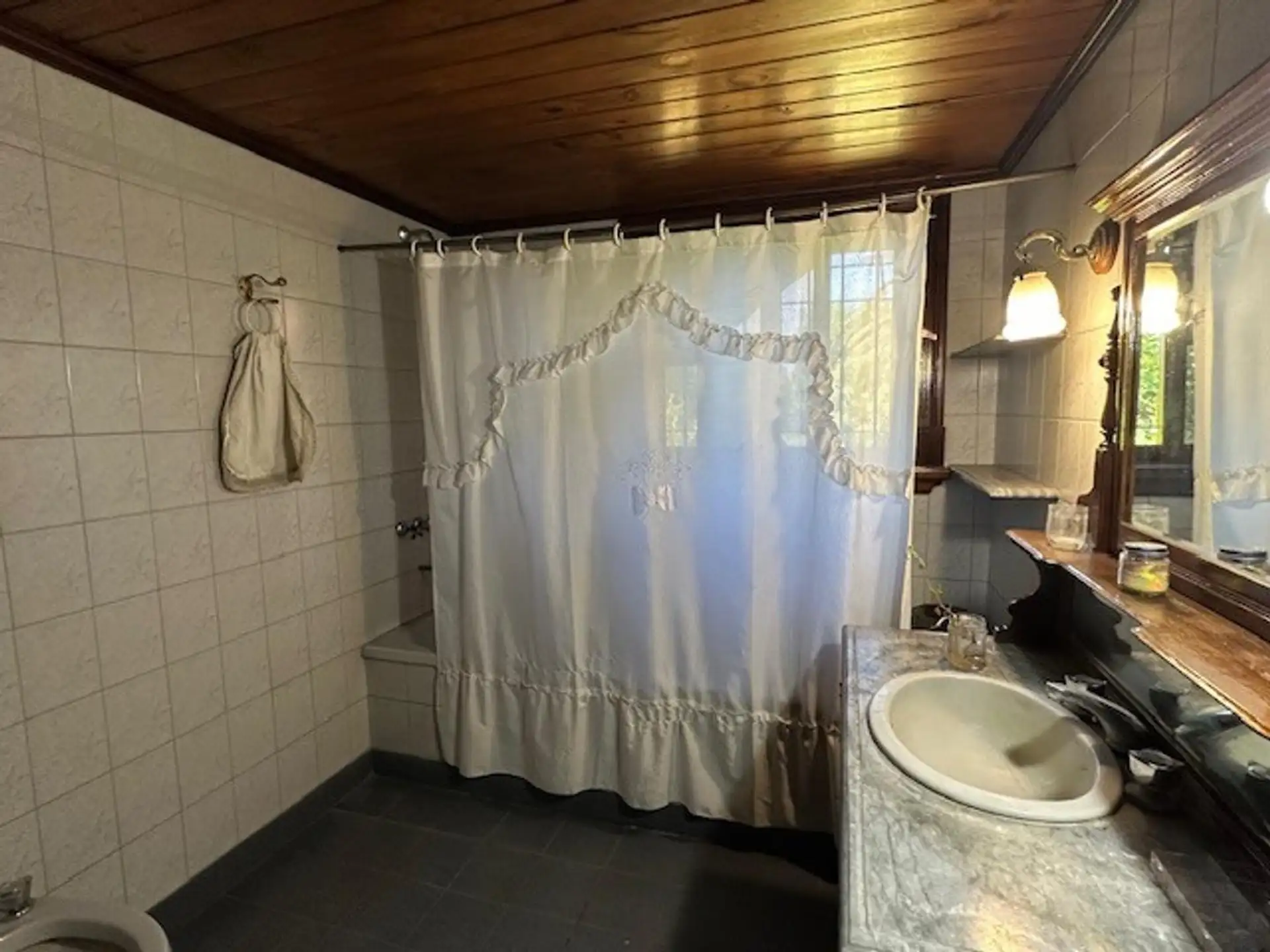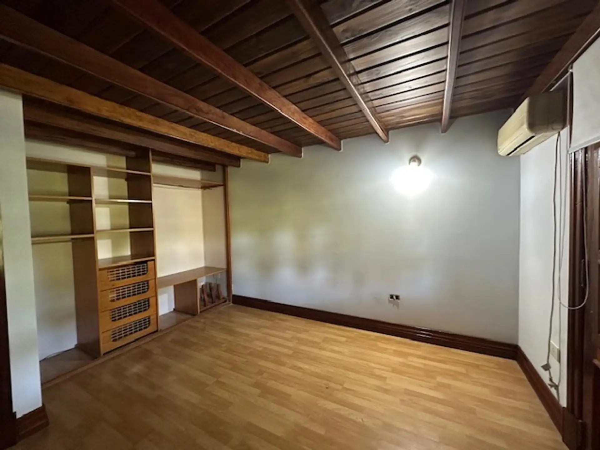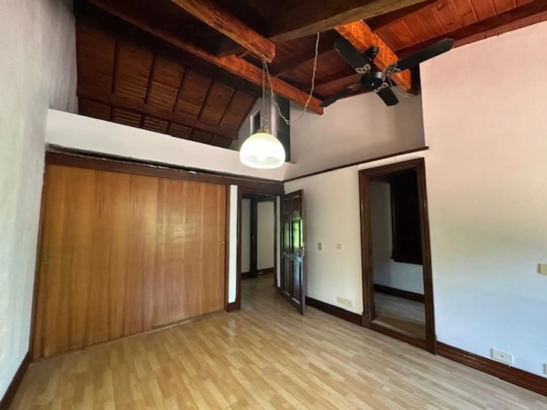 Chalé de 5 ambientes para aluguel em Don Torcuato, com 4 dormitórios (sendo 1 suíte no andar superior) e 271 m² cobertos. Casa com porch de entrada, sala em desnível (com possibilidade de instalação de salamandra), lavabo, sala de jantar, cozinha com comedor diário e área de lavanderia, além de vaga coberta para 2 autos e acesso por escada ao andar superior. Na área externa há galeria com área de churrasco, galpão, parque e sistema de irrigação por aspersão. Construção com cerca de 34 anos; lote