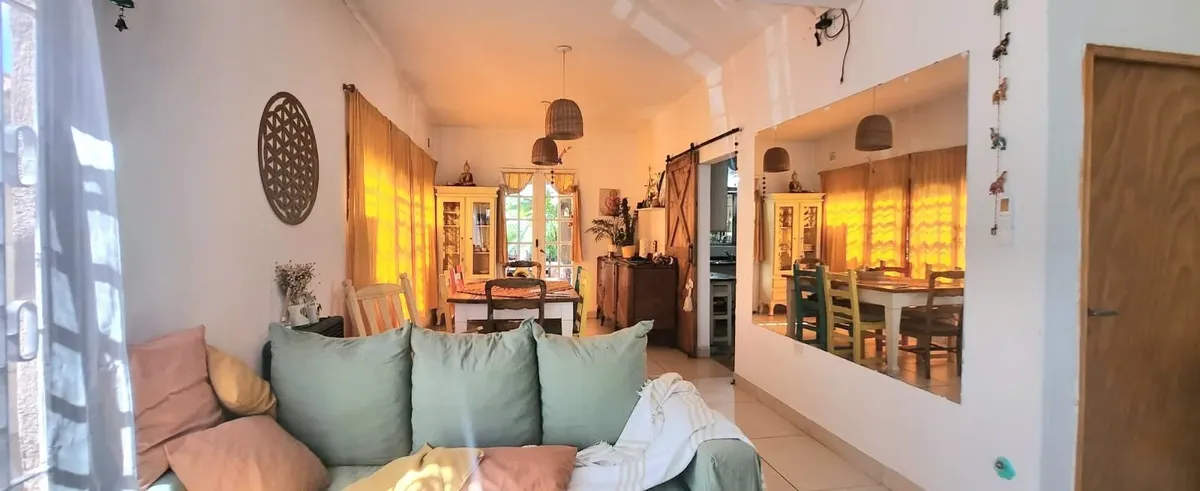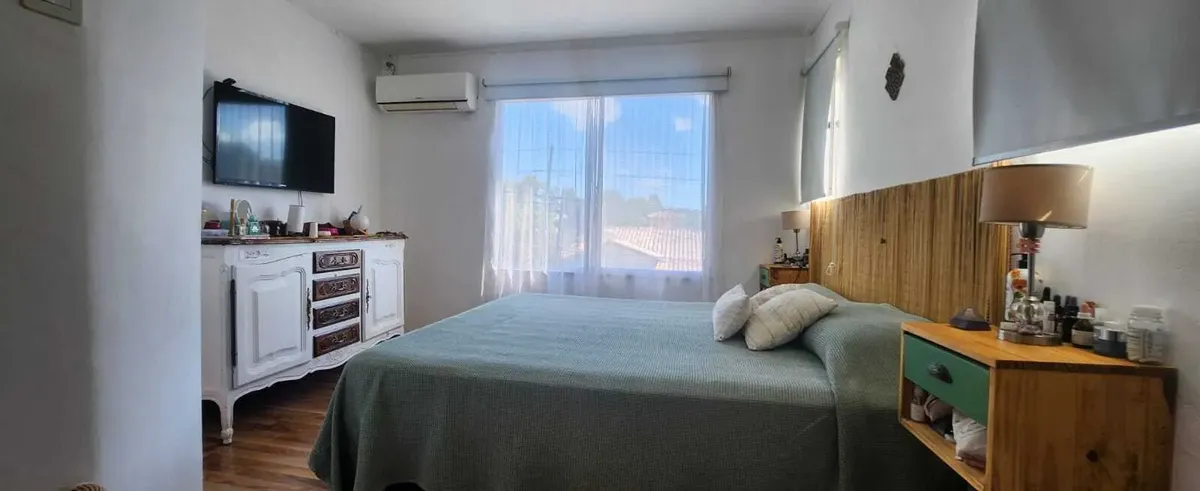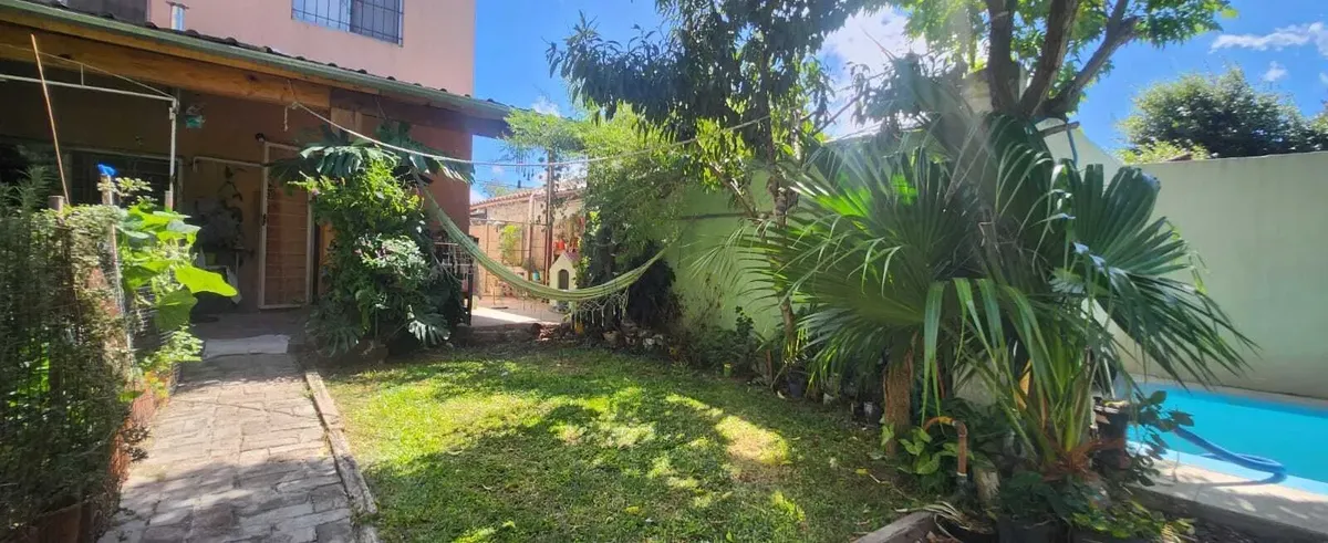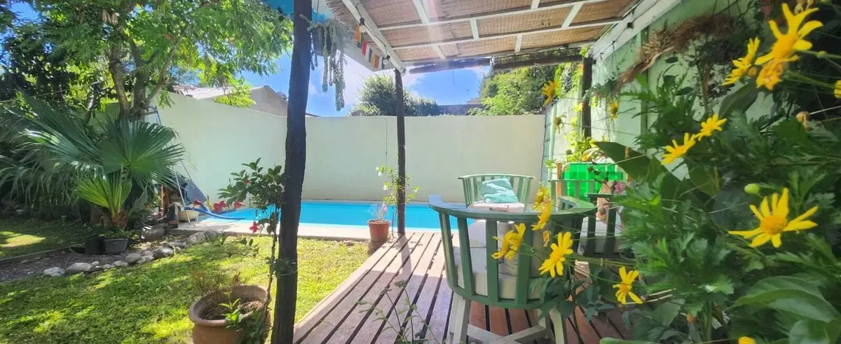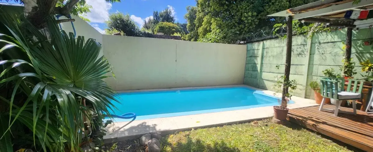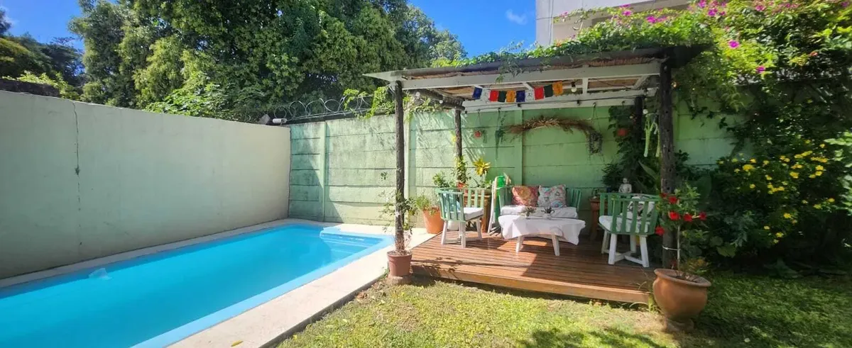 Casa em Benavídez, Tigre, em 2 andares, com 4 dormitórios. No térreo há sala de estar e jantar, banheiro completo, cozinha independente e área de serviço. No andar superior ficam 3 quartos e um quarto adicional com closet, além de mais um banheiro completo. O imóvel tem portão automático, garagem semicoberta, galeria com área de churrasco e jardim com pérgola, além de piscina.