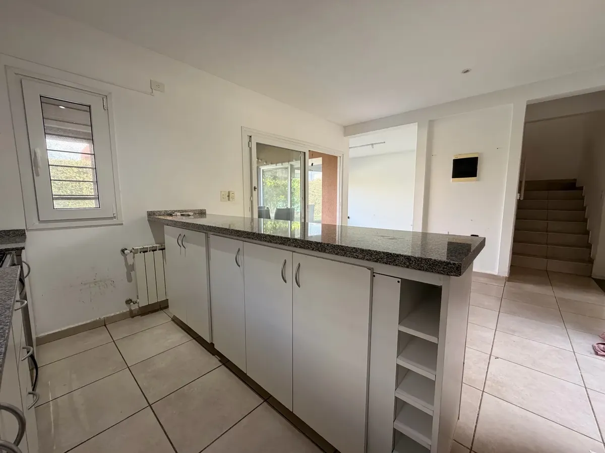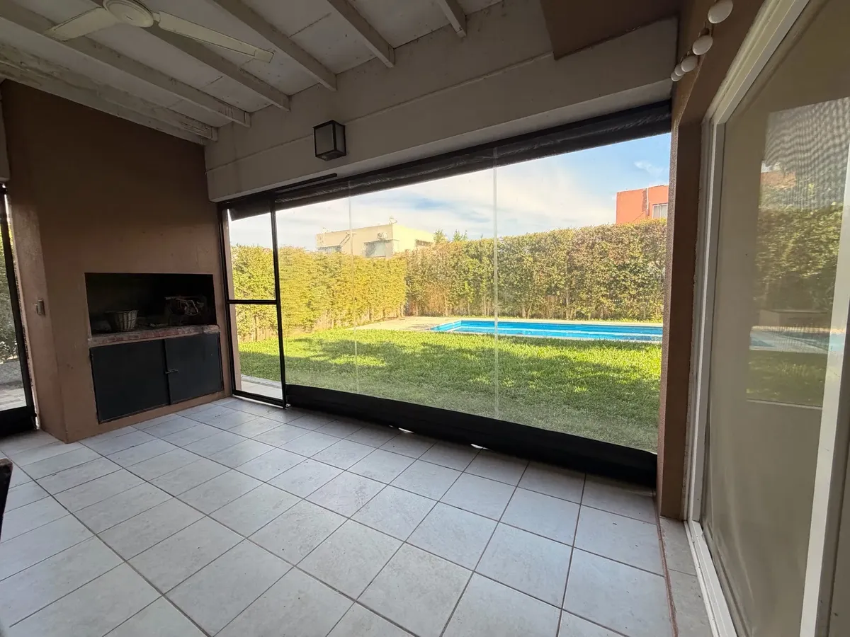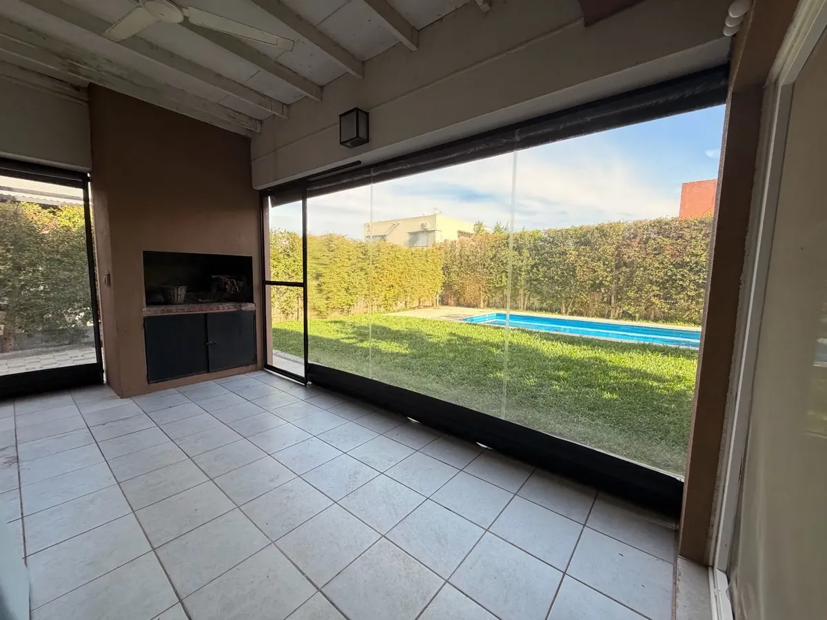 Casa para alugar em Casas de Santa Maria, bairro semi-fechado em Villanueva, sem condomínio. Lote de 300 m², 140 m² cobertos e 20 m² semi-cobertos, com 4 dormitórios no total. Possui hall de entrada, cozinha e área de serviço com saída para pátio, living e sala com acesso a galeria coberta com fechamento em toldos de vidro. Inclui lavabo, playroom ou escritório para home office, 2 dormitórios no piso superior com armários e banheiro completo compartilhado, e suíte master com closet e banheiro co