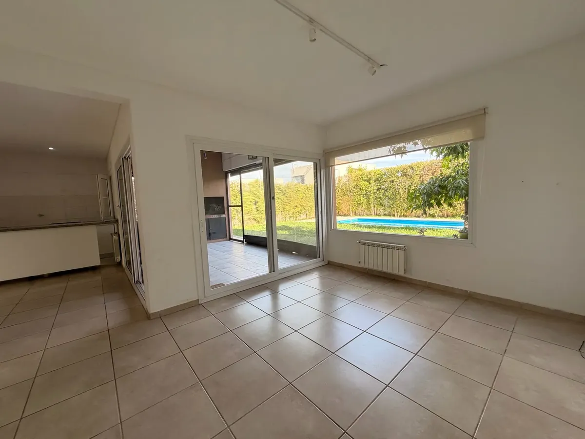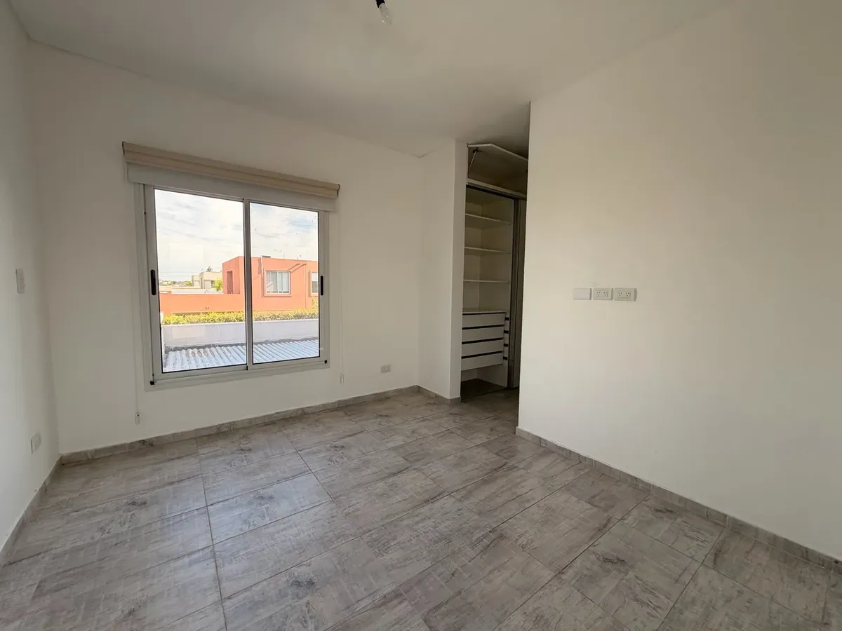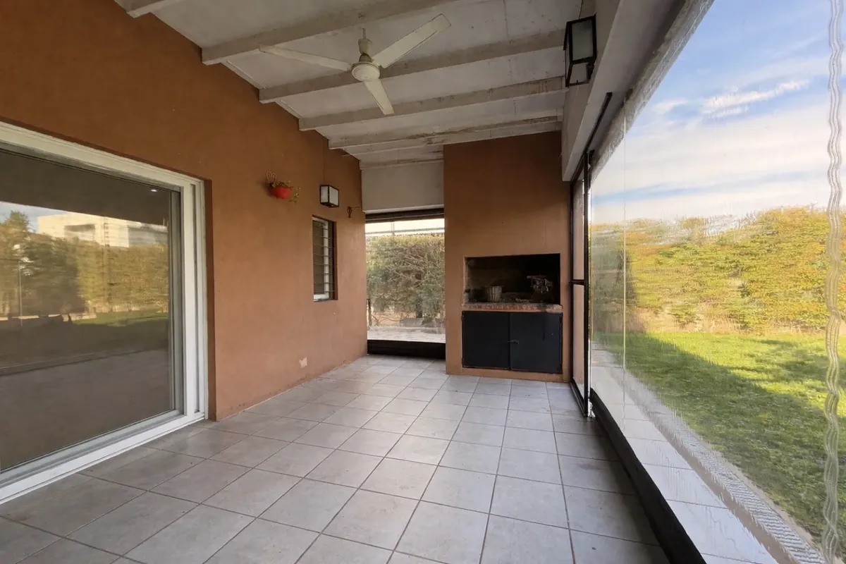 Casa para alugar em Casas de Santa Maria, bairro semi-fechado em Villanueva, sem condomínio. Lote de 300 m², 140 m² cobertos e 20 m² semi-cobertos, com 4 dormitórios no total. Possui hall de entrada, cozinha e área de serviço com saída para pátio, living e sala com acesso a galeria coberta com fechamento em toldos de vidro. Inclui lavabo, playroom ou escritório para home office, 2 dormitórios no piso superior com armários e banheiro completo compartilhado, e suíte master com closet e banheiro co