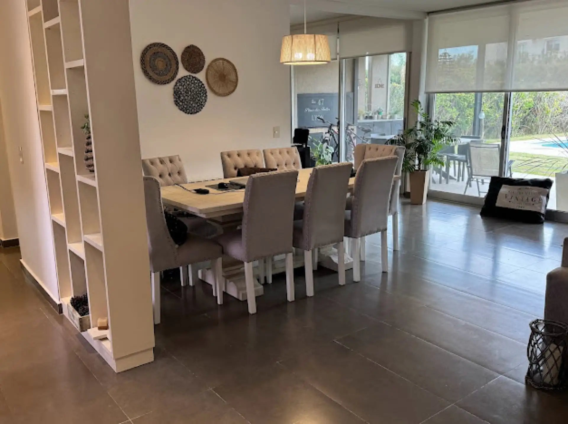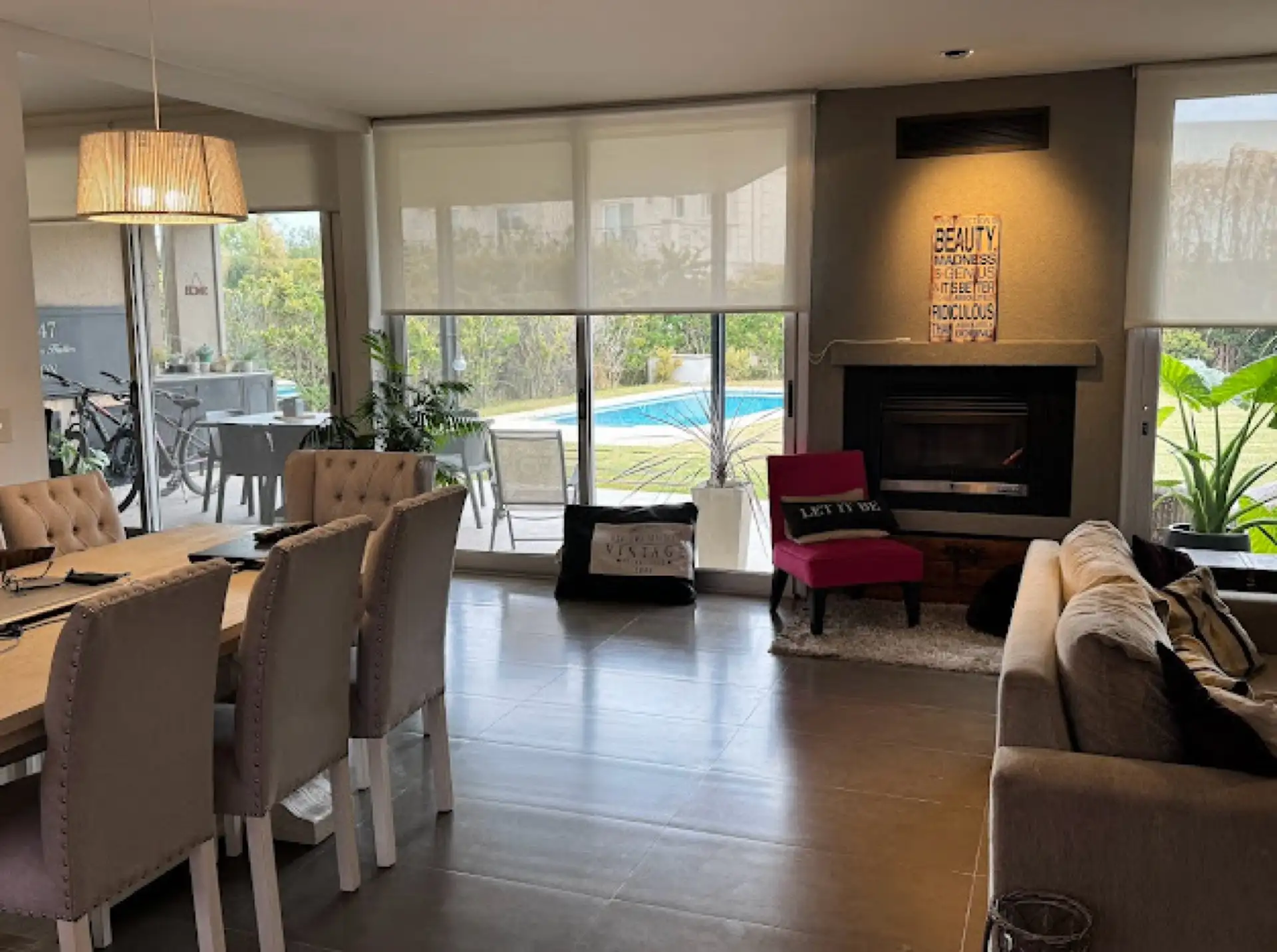 Casa em dois andares no bairro Los Alisos, Nordelta, com 6 ambientes e jardim. No térreo há hall, lavabo de recepção, sala de estar e jantar, cozinha semi integrada com barra para café da manhã, dependência de serviço e área de lavanderia. No andar superior ficam 4 quartos, sendo a suíte do quarto principal e mais três quartos, além de um banheiro completo. No exterior há galeria ampla com área de churrasco e jardim com piscina.