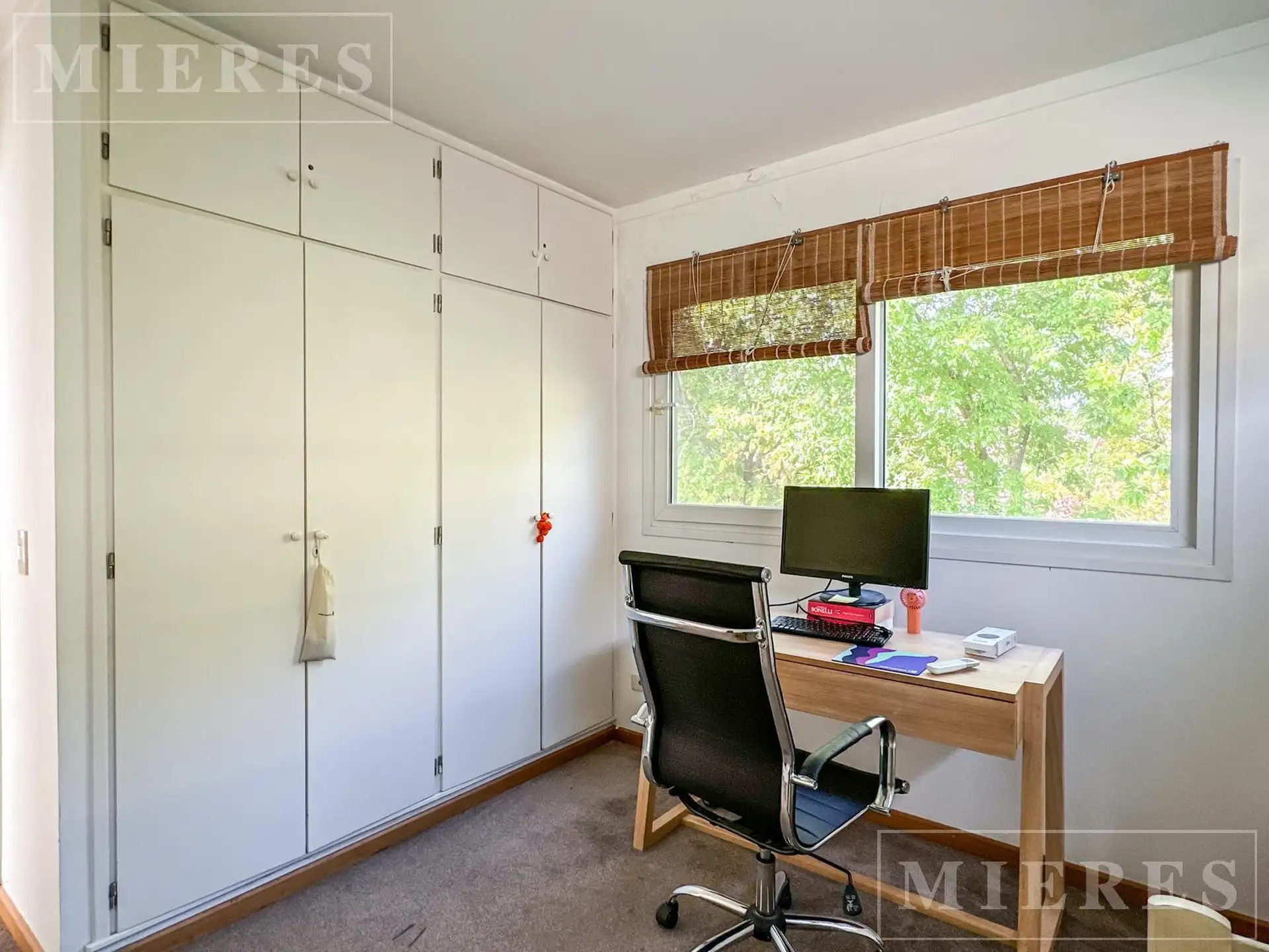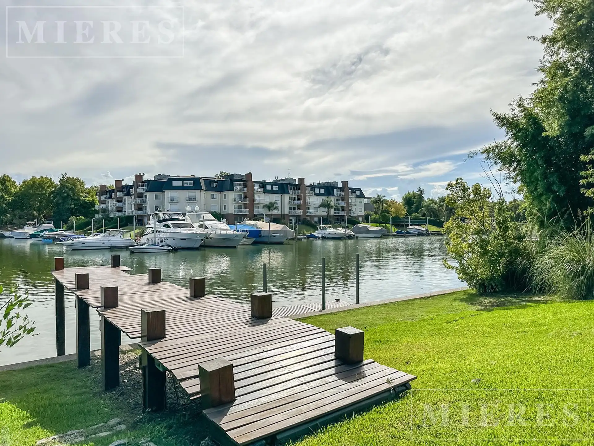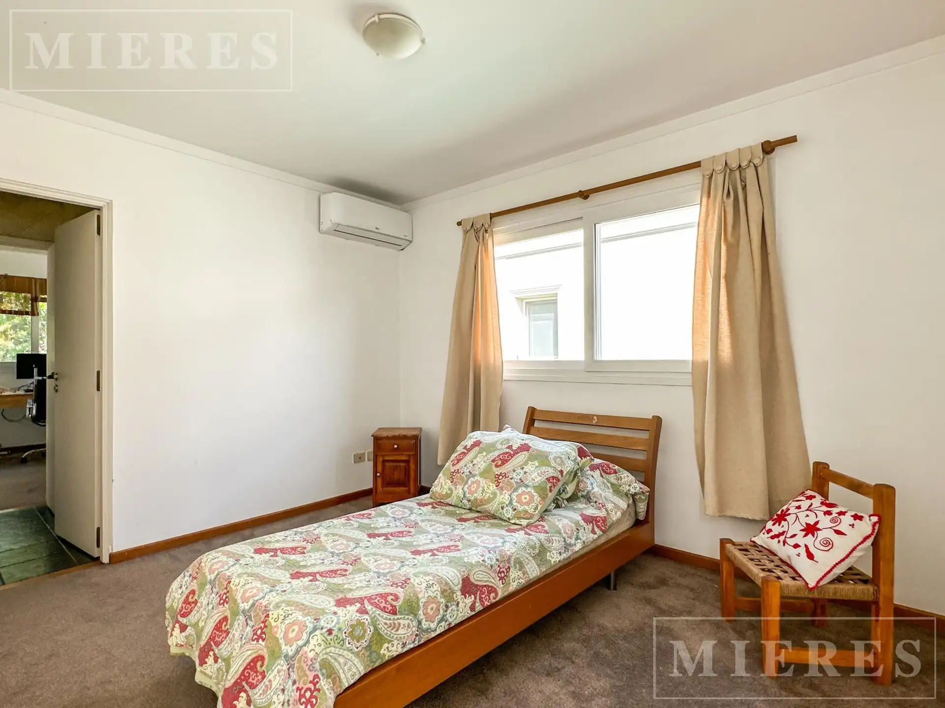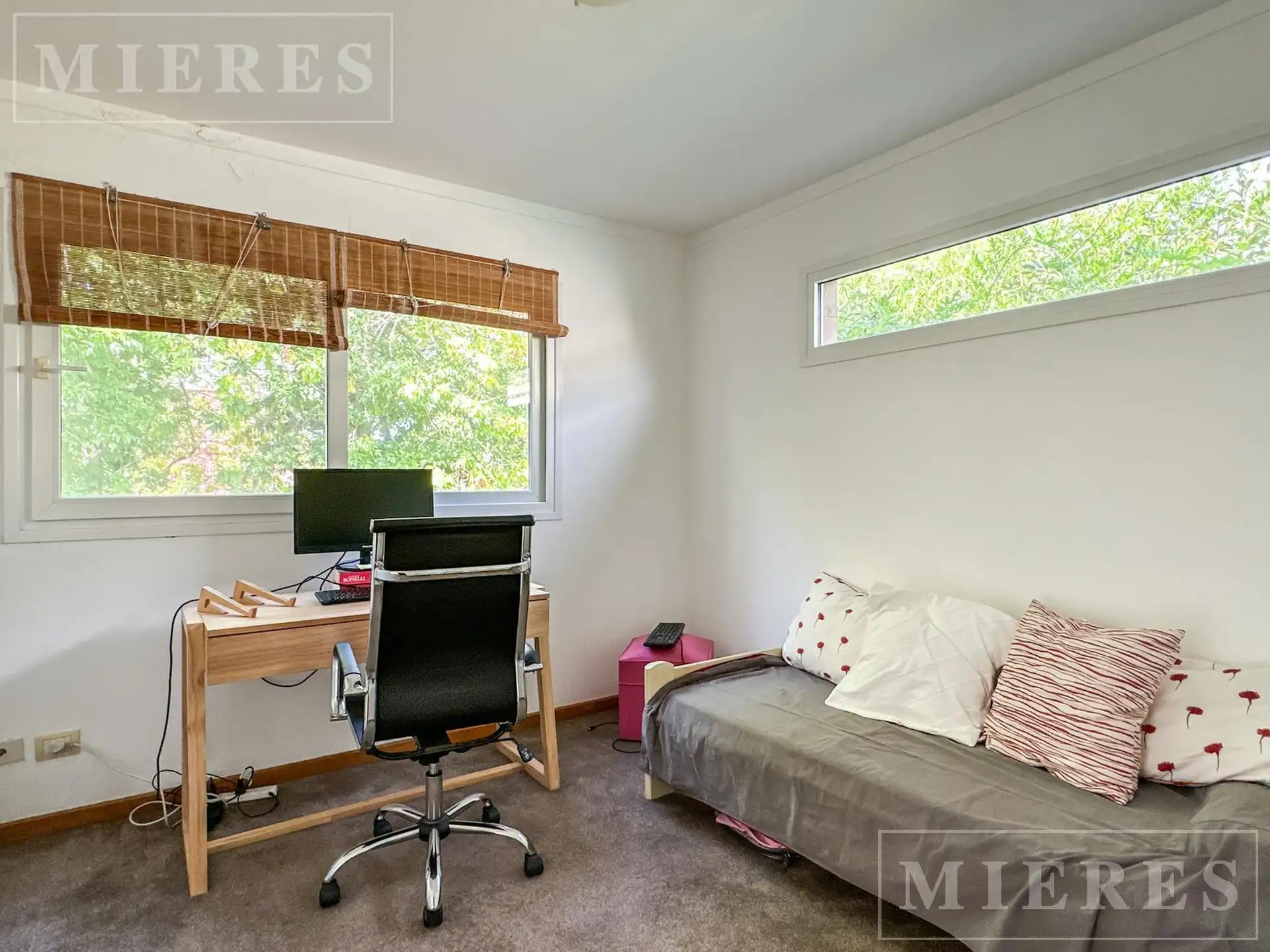 Casa para aluguel anual em Santa María de Tigre, edificada em lote de 1000 m², com 360 m² cobertos e 60 m² semicobertos. No térreo: hall, living em pé-direito duplo com lareira e vista para o rio, lavabo, sala de jantar, cozinha com área de refeições e saída para a galeria, quarto de TV, lavanderia ampla e banheiro de serviço. No andar superior: 1 suíte júnior, 2 dormitórios com 1 banheiro, área de escritório com varanda voltada para o living, suíte principal com closet, banheiro completo, varan