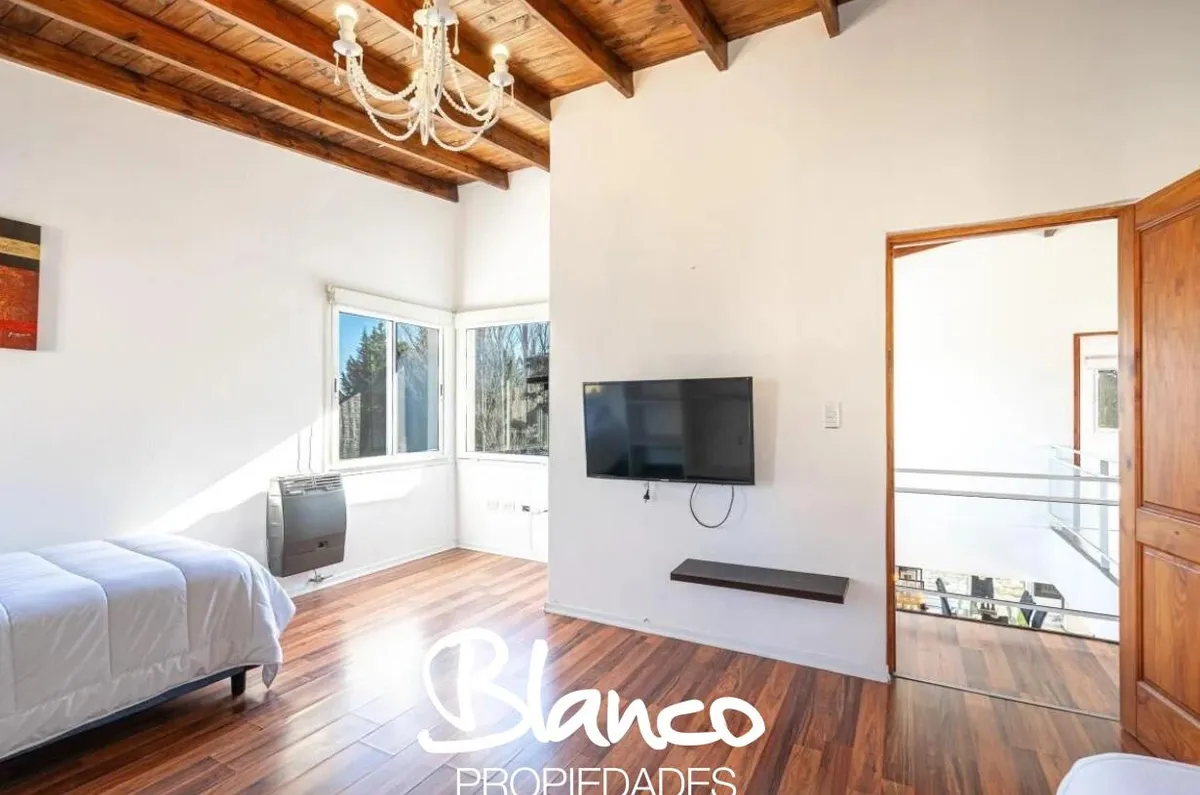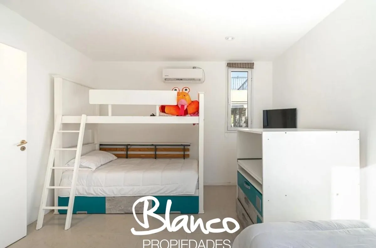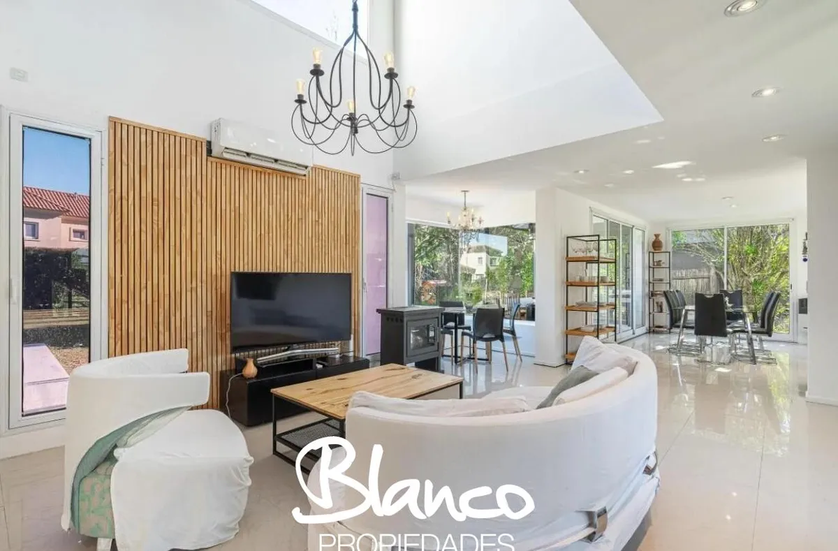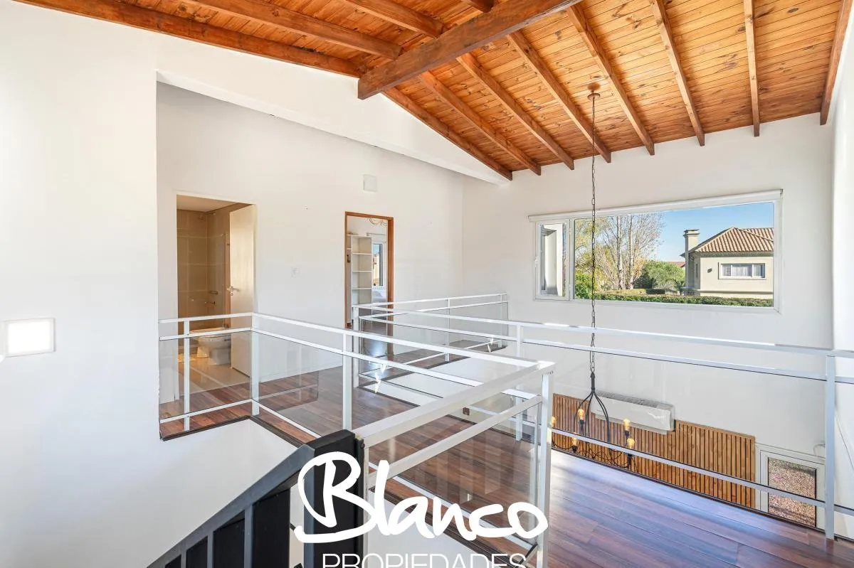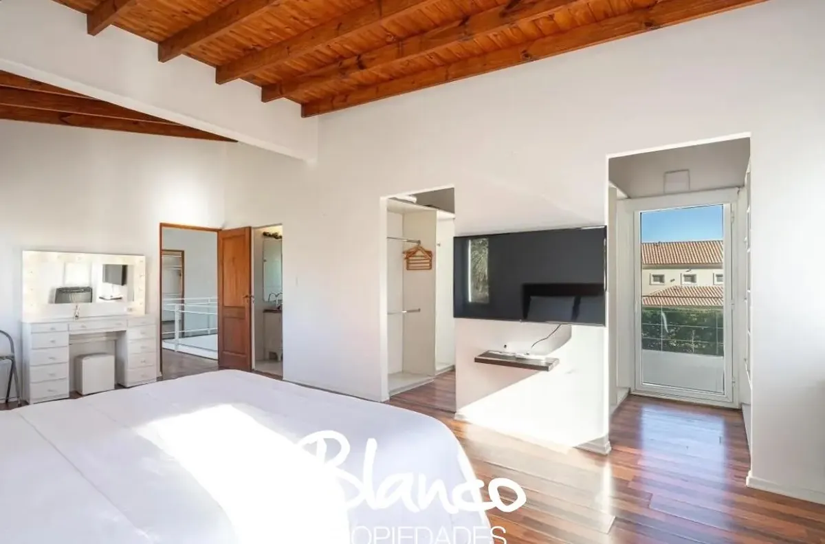 Casa em San Isidro Labrador, Villanueva, Tigre, construída em 2 plantas e totalmente equipada. No 1º andar há amplo living com janelas, cozinha com ilha e lavavajillas, banheiro completo e área de serviço com lavadora e secadora. No 2º andar, suíte principal com dois closets e acesso a terraço; mais 3 dormitórios com 2 banheiros. No exterior há galeria com área de churrasco e forno a lenha, piscina com solarium, jardim arborizado e garagem para 3 autos. Disponibilidade temporária 2025/2026: nove