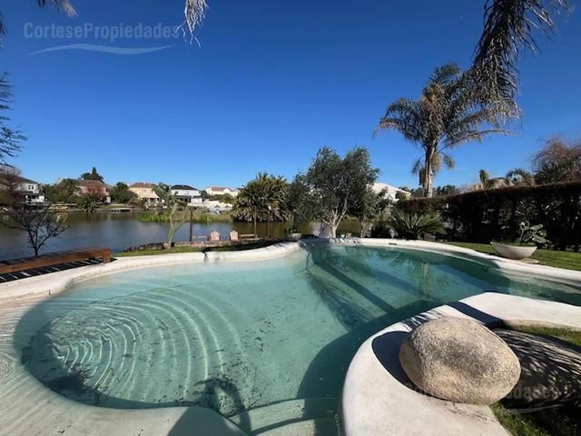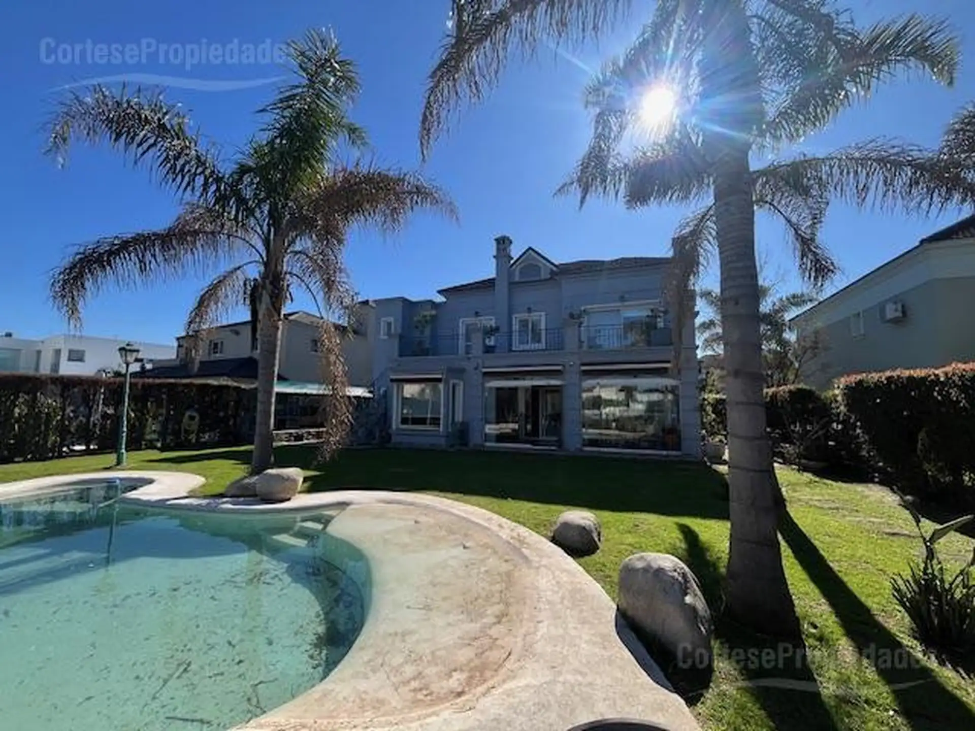 Casa em Nordelta (Tigre) com 4 dormitórios, distribuída em 2 andares. No térreo: hall de recepção com lavabo, cozinha com sala de jantar diária e playroom integrado, forno e cooktop elétrico, lava-louças e micro-ondas, além de living e sala de jantar. Há dependência de serviço com banheiro, área de serviço e entrada de serviço; galeria fechada com vidros retráteis e área de churrasco. No andar superior: suíte com closet e banheiro completo, com saída para ampla varanda com vista para o lago. O i