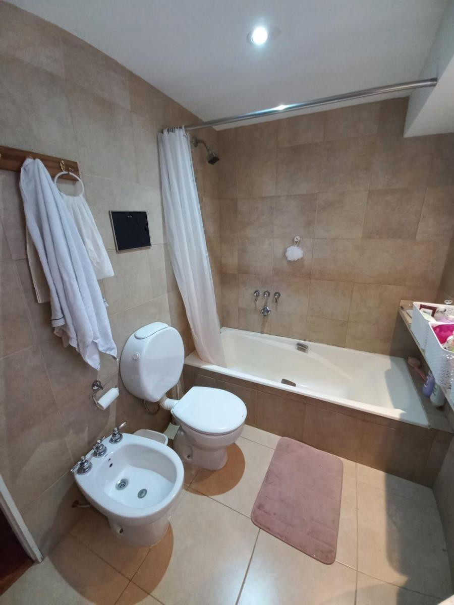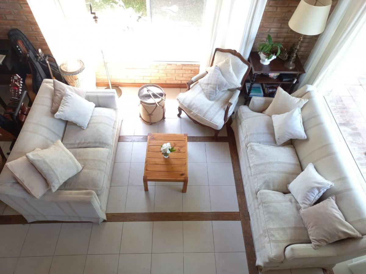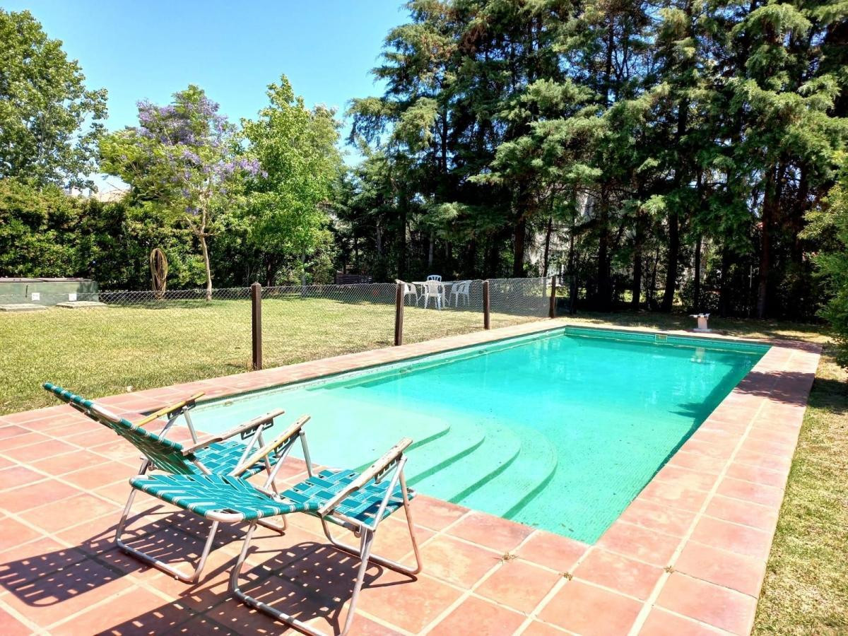 Casa em Santa Bárbara, Tigre, com 4 dormitórios, distribuída em térreo e piso superior. Possui jardim com árvores, piscina de 9,86 m por 3,97 m, galeria em L, área de churrasco com churrasqueira, queimadores e tanque para lavagem, além de vaga de garagem coberta e 2 vagas descobertas. No térreo há living com pé-direito duplo, sala de jantar separada, cozinha a gás nova, lavabo/depósito sob a escada, área de serviço com saída lateral e 1 dormitório com placard e banheiro completo. O piso superior