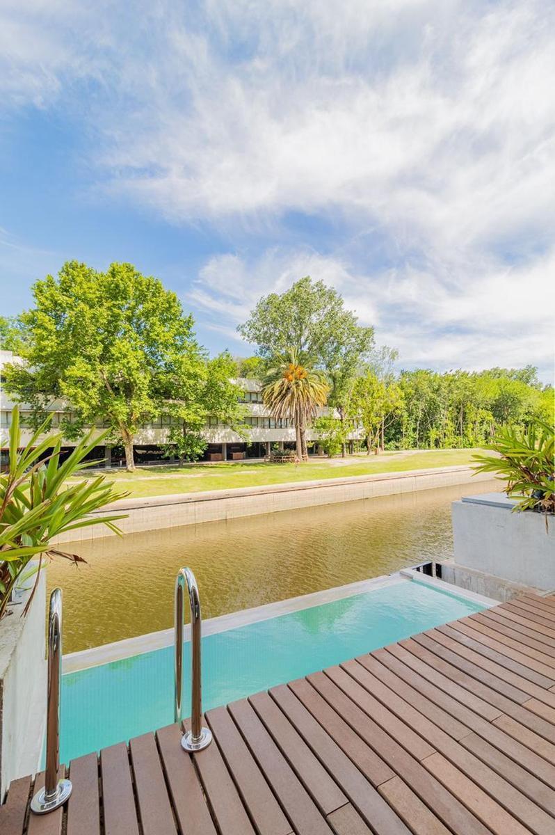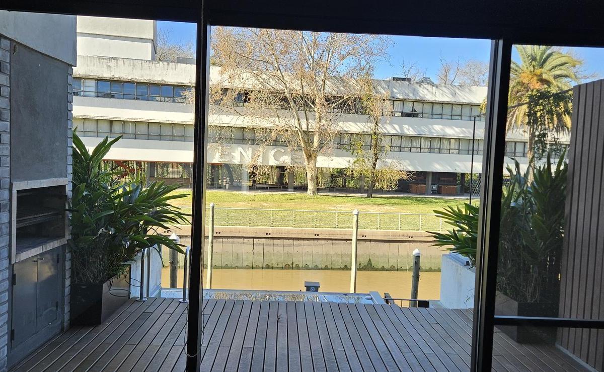 Townhouse em Tigre com 4 dormitórios, unidade de 3 plantas, em canal principal de Venice e com saída para o Rio Lujan. No térreo, sala de jantar integrada à cozinha, galeria com área de churrasco, amarra própria para embarcações de 12 m e jacuzzi. No 1º andar, suíte master com closet e varanda com vista para o canal de Venice, além de mais 2 dormitórios e banheiro amplo com vista para o NO; no 2º andar, outro dormitório com banheiro e terraço com vista para o canal. Entrega com ar-condicionado,