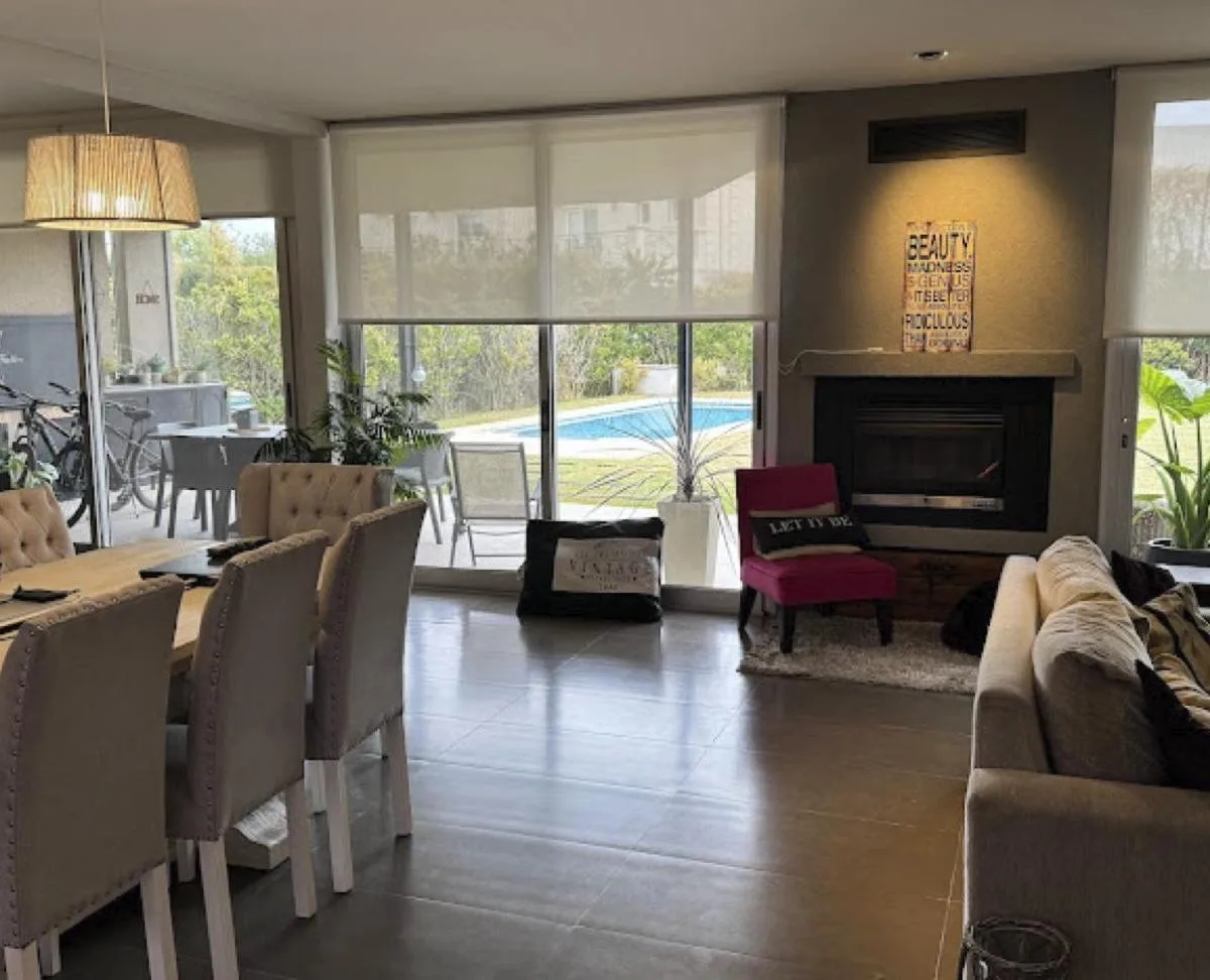 Casa mobiliada em Los Alisos, Nordelta, com lote interno. No térreo: hall de entrada, sala de jantar, lavabo, cozinha integrada com móveis planejados, geladeira dupla e lava-louças, área de serviço e quarto de serviço com banheiro. Há pérgola coberta para 1 carro e bicicletas. No piso superior: suíte com quarto principal e banheiro completo com acesso a terraço; além de 3 dormitórios e segundo banheiro completo. A casa tem aquecimento por radiadores e ar-condicionado em todos os ambientes. Na ár