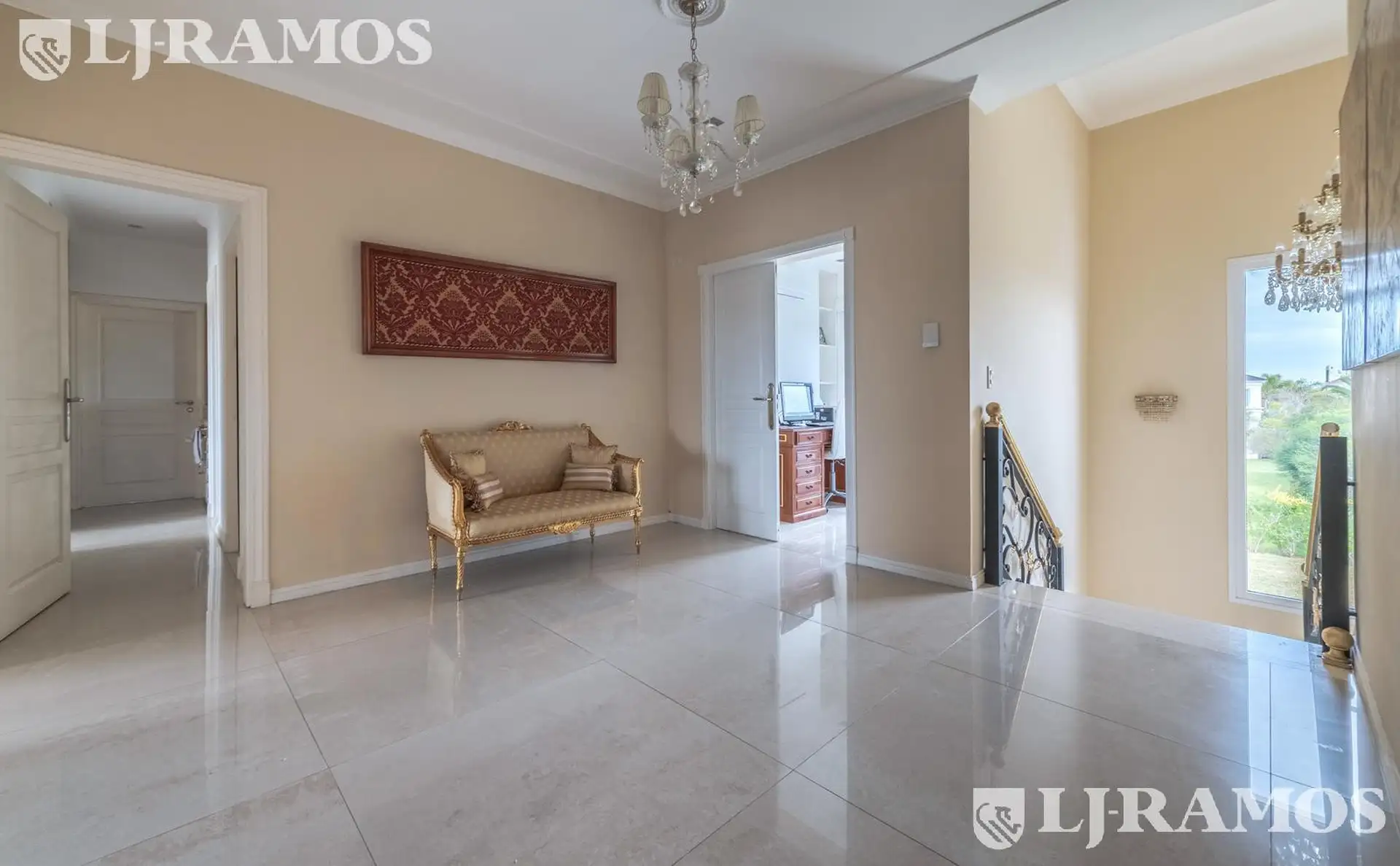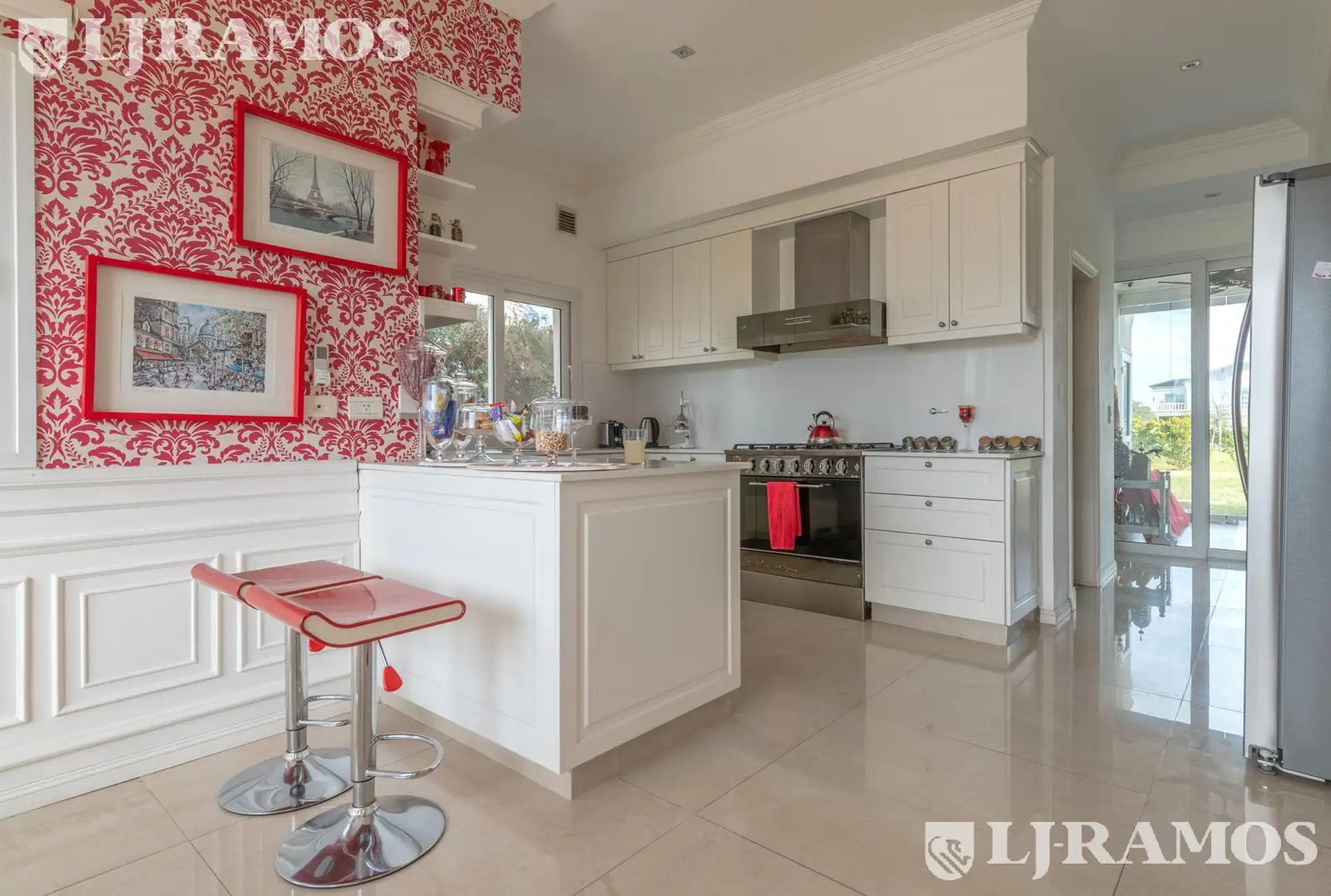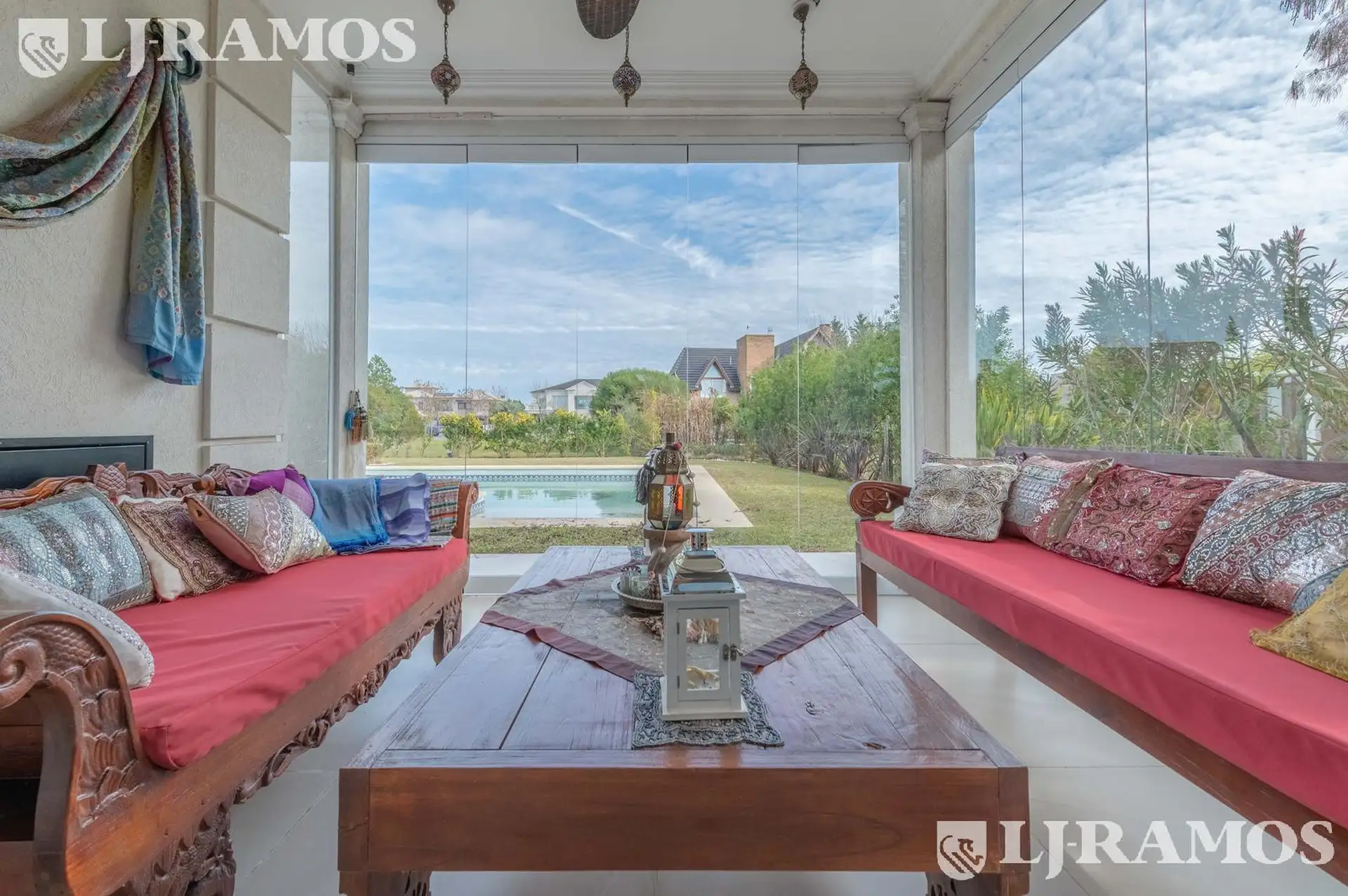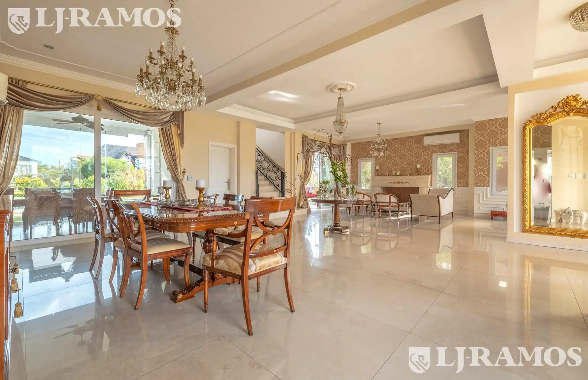 Casa em Nordelta, Tigre, com 400 m² construídos sobre lote interno de 960 m², com orientação noroeste a oeste e vista para a laguna a partir dos ambientes. São 4 dormitórios (2 suítes) e escritório. Em aluguel anual, a unidade pode ser alugada com ou sem móveis. A cozinha tem ilha e sala de jantar diário com janela para a laguna; a área de serviço inclui lavadero. No andar térreo há living com lareira a lenha, comedor para 12 pessoas e um dormitório em suíte, além de lavabo. No andar superior, a