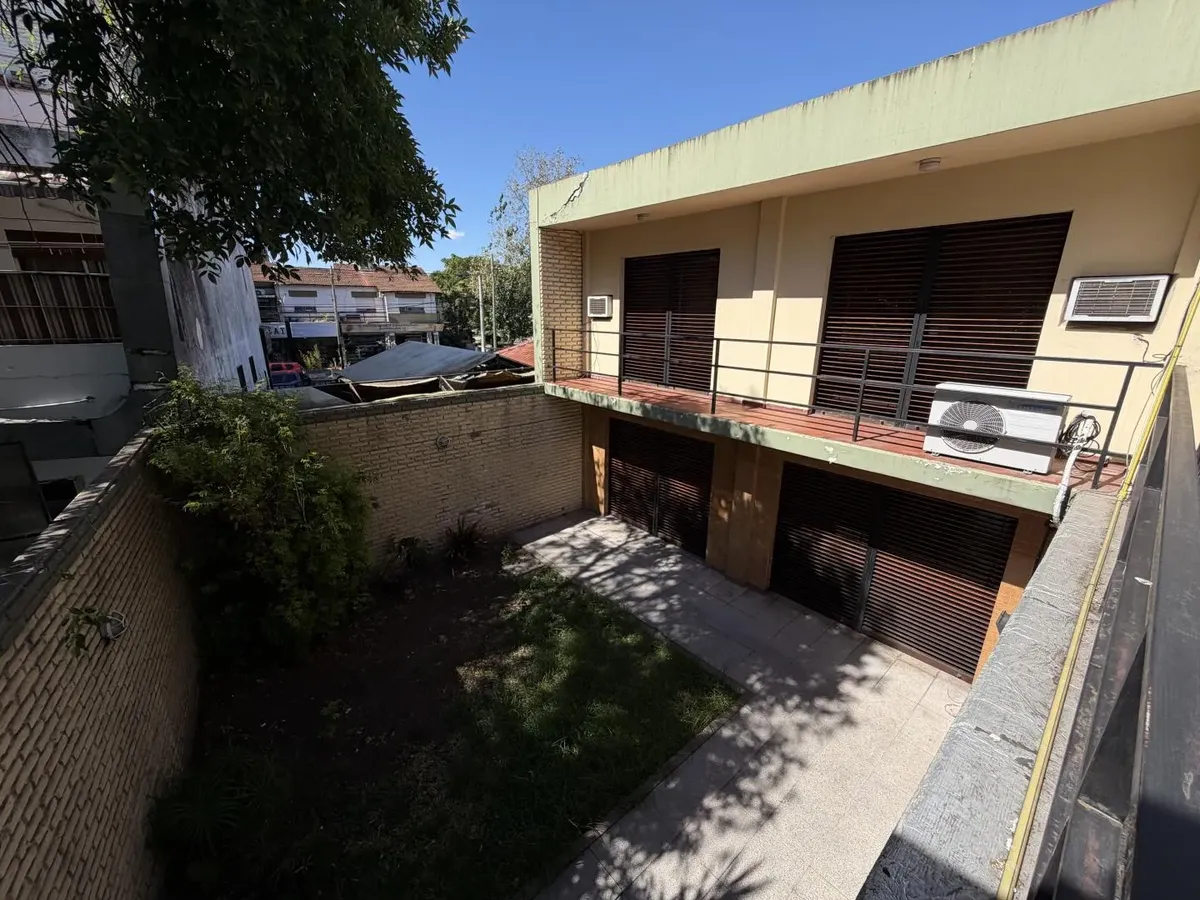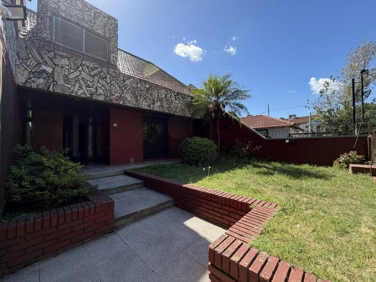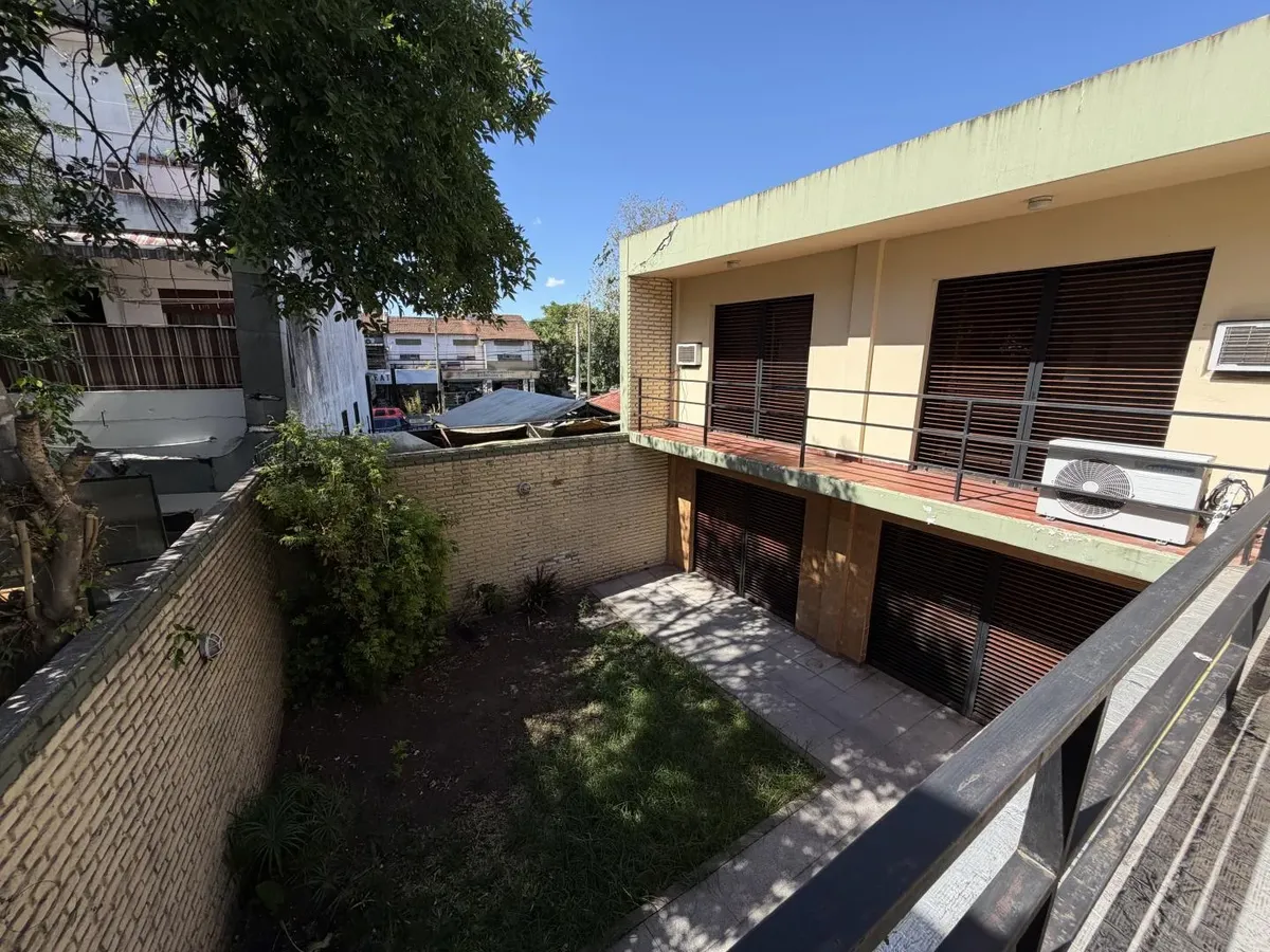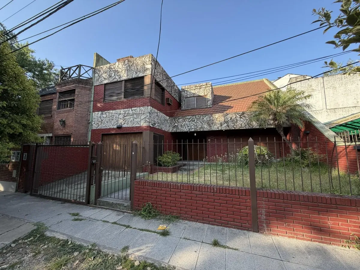 Apartamento tipo chalet em Ciudad Jardín, com 6 ambientes e 3 banheiros, com entrada com grades na frente e jardim. No térreo há garagem, amplo living-comedor com lareira, cozinha e antecozinha, banheiro e um pequeno porão, além de acesso a portas-balcão nos fundos, área de serviço e pátio-terraço. No primeiro andar ficam 1 quarto com banheiro em suíte e closet, um escritório-quarto, dois dormitórios secundários com armários e um banheiro completo.