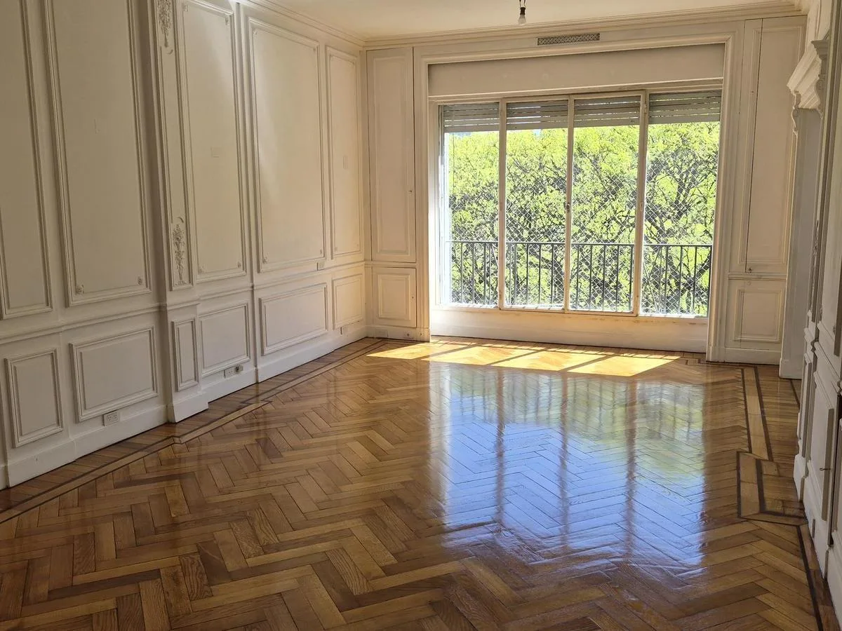 Apartamento de cinco ambientes com 4 dormitórios e fachada voltada para a Plaza Alemania. Possui ampla recepção, salas de estar e de jantar com vista para áreas verdes e cozinha com dimensões amplas. Há espaço para guardar carro. Fica em Palermo Chico, em Av. Libertador, com acesso a linhas de coletivo em Av. Libertador e Avenida Las Heras.