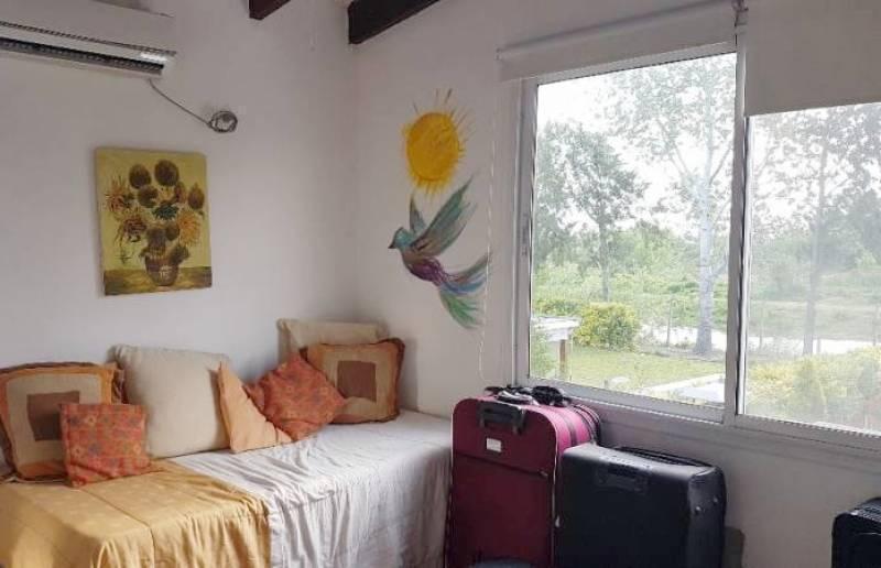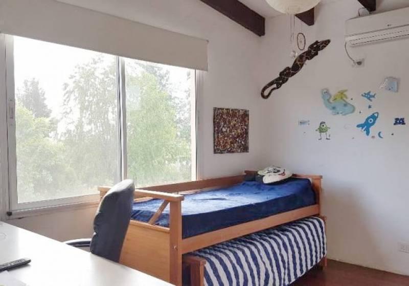 Casa no bairro San Isidro Labrador, dentro do complexo Villanueva. No térreo há hall de recepção, living com jantar em pé-direito duplo e janelas amplas com acesso ao jardim, cozinha semi-integrada e 1 dormitório com banheiro completo. No andar superior ficam a suíte principal com closet e banheiro completo, mais 2 dormitórios com vista para o jardim e banheiro próprio. O exterior inclui jardim com vegetação consolidada, área de churrasco e piscina. O bairro tem segurança 24 horas, campo de golf