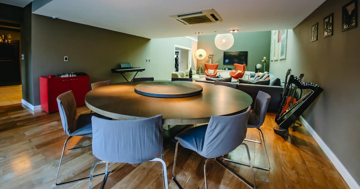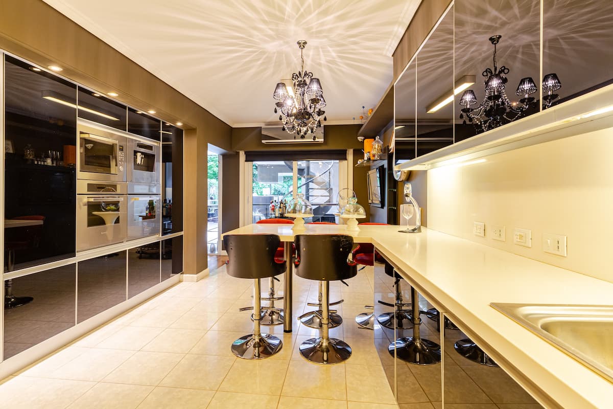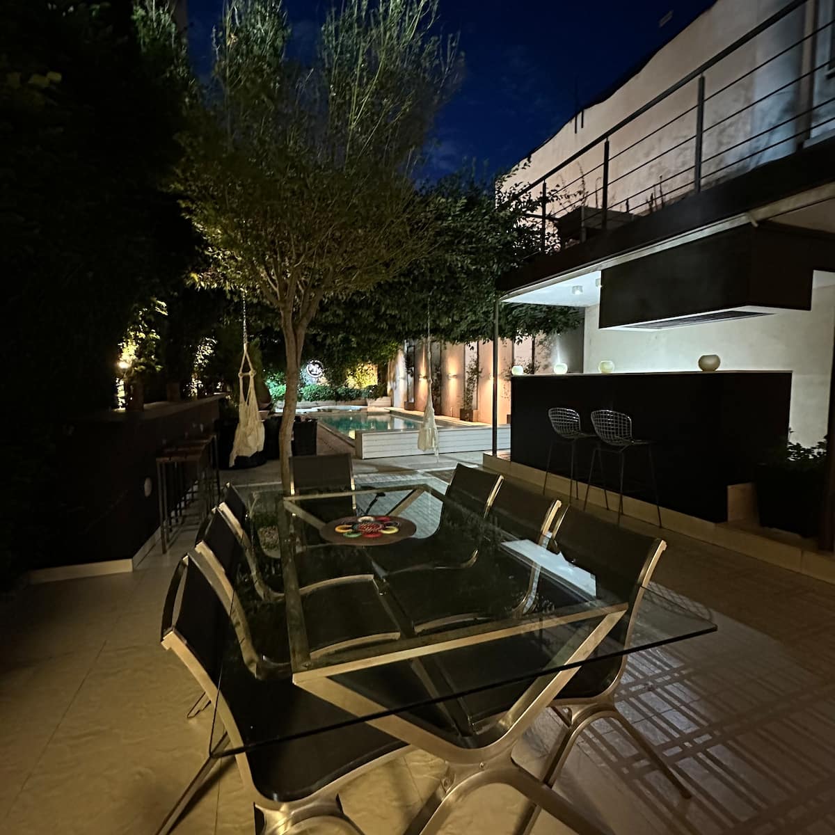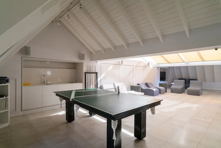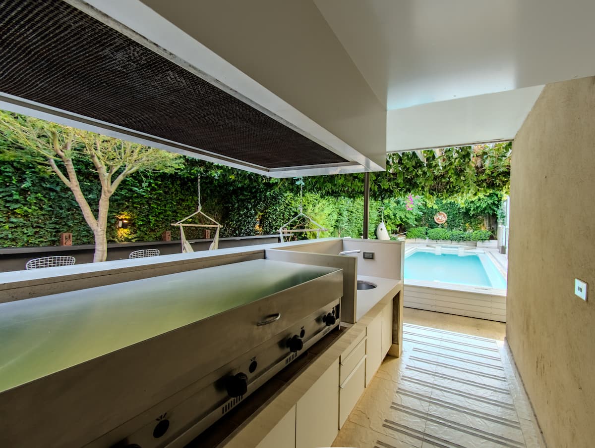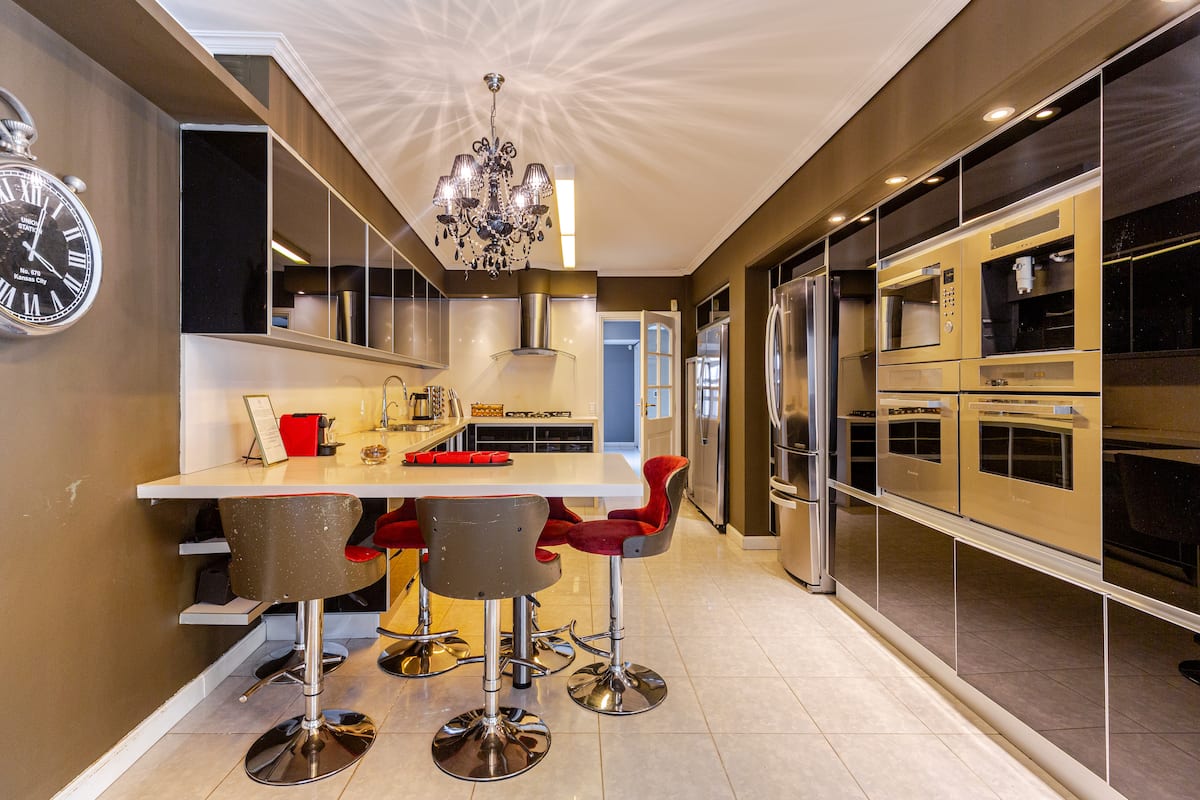 Apartamento em Villa Crespo com 4 quartos, com área superior a 1.000 m². Há piscina semicampista aquecida e solário, além de área externa com churrasqueira e espreguiçadeiras. O imóvel inclui cozinha gourmet com adega, máquina Nespresso, 2 fornos Ariston e micro-ondas, geladeira Ariston no frost, além de spa e área com sistema de som. A descrição menciona também área de lazer (playroom/attic) e quartos com camas king, sendo duas suítes com banheiro privativo e closets.