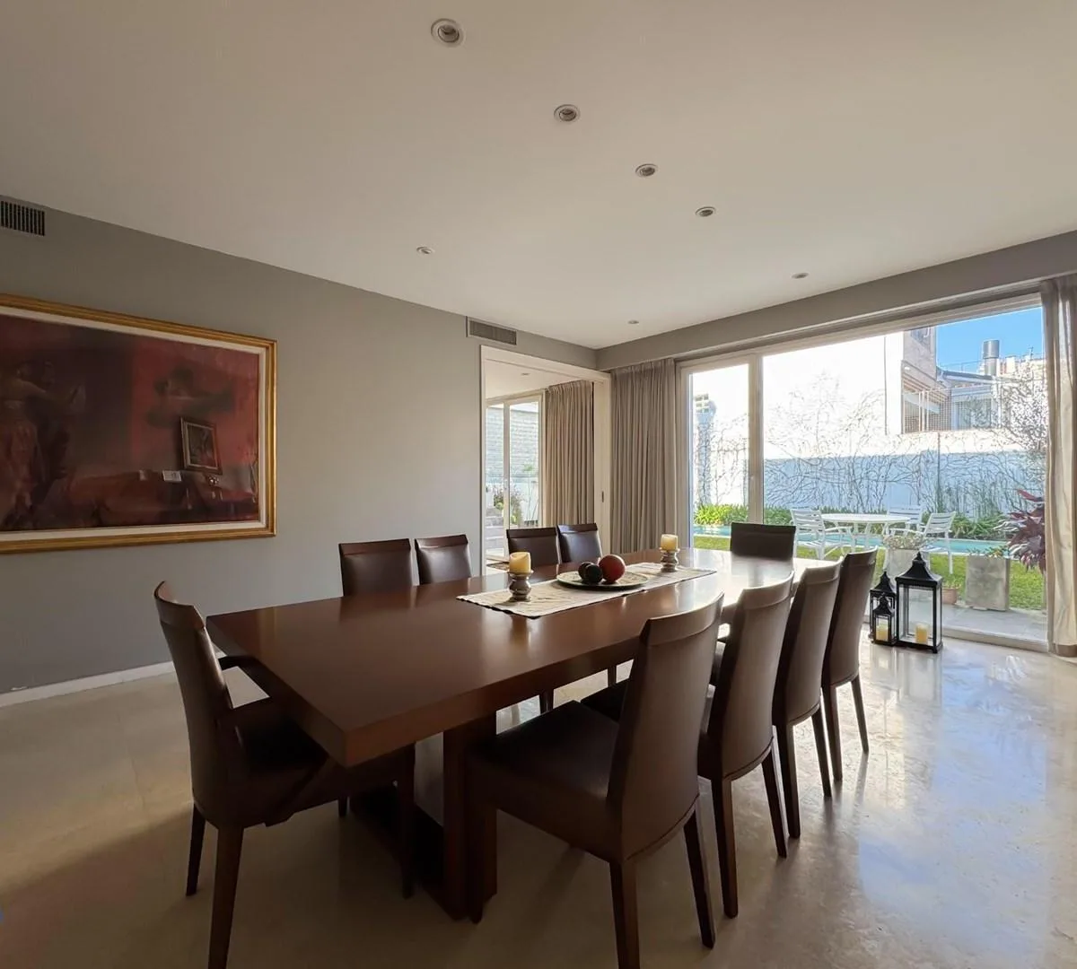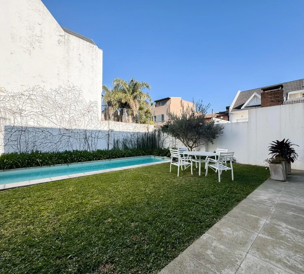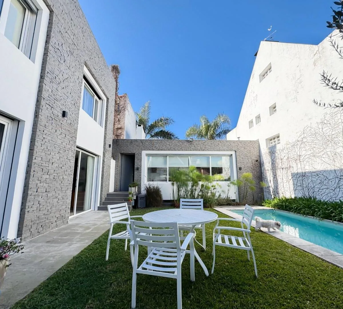 Casa em Belgrano, com 5 dormitórios, distribuída em 2 plantas. O imóvel tem jardim e é descrito como em bom estado de manutenção. O aluguel é acrescido de despesas, com contrato máximo de 24 meses.