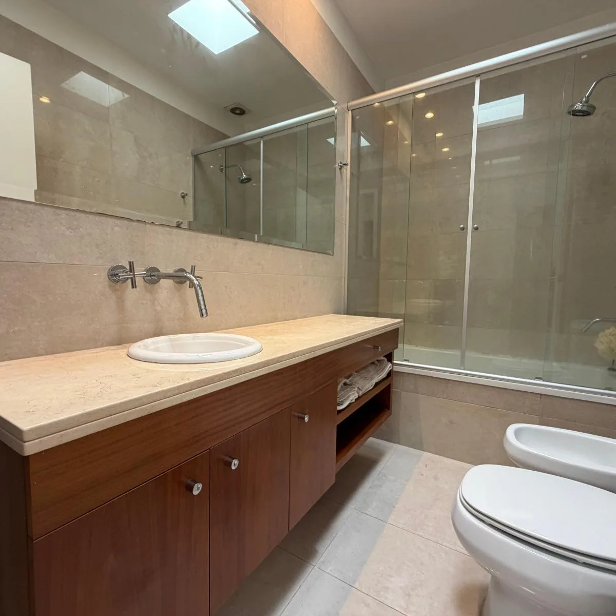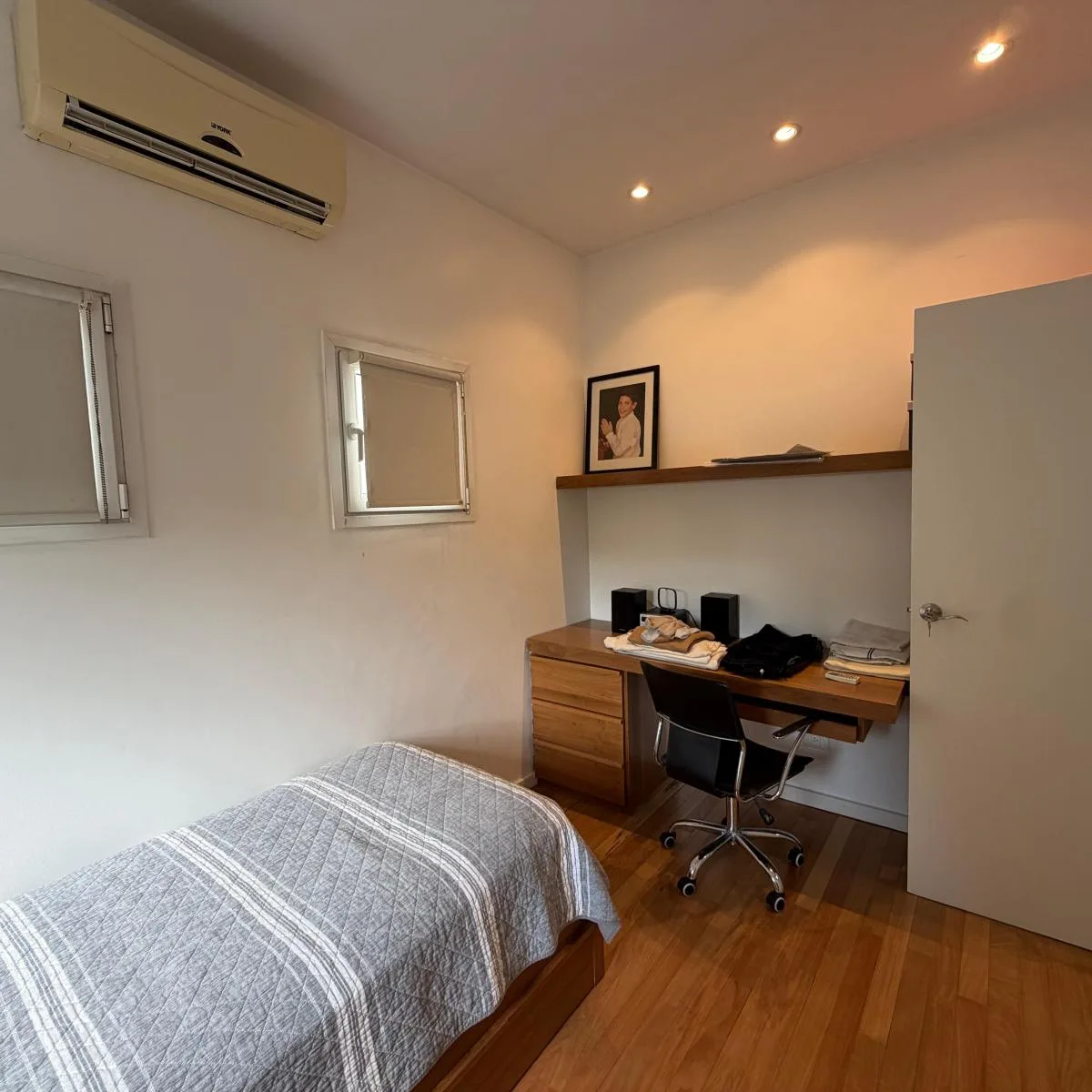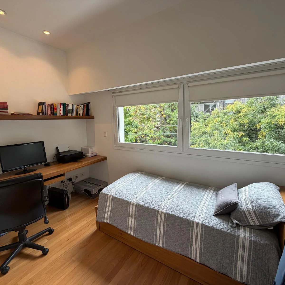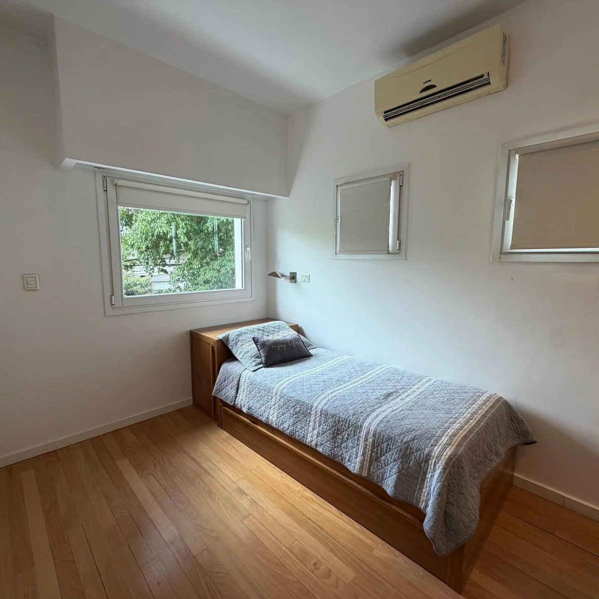 Casa para aluguel em Belgrano, no Barrio River, a uma quadra da Av. Figueroa Alcorta. Desenvolvida em 2 plantas, com mezanino e subsolo. No andar térreo: sala de estar e jantar com janelas voltadas para a rua e para o jardim, lavabo, cozinha com espaço para refeições diárias e saída para o jardim. Mezanino com dormitório em suíte ou escritório. No segundo andar: 2 dormitórios com armários e banheiro completo compartilhado, e uma suíte com closet; master suite com amplo closet, armários e banheir