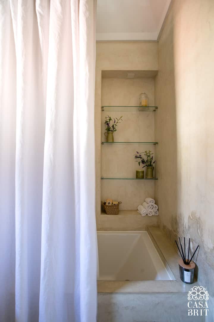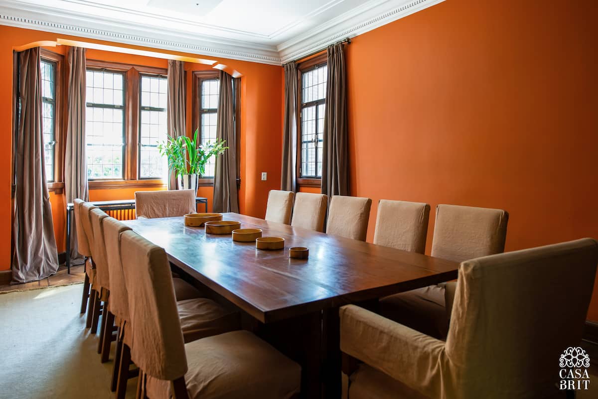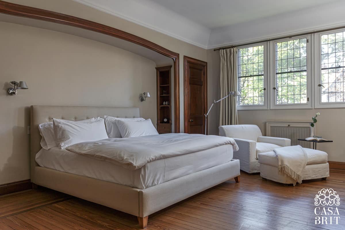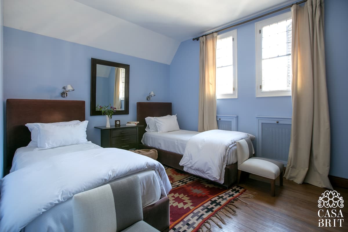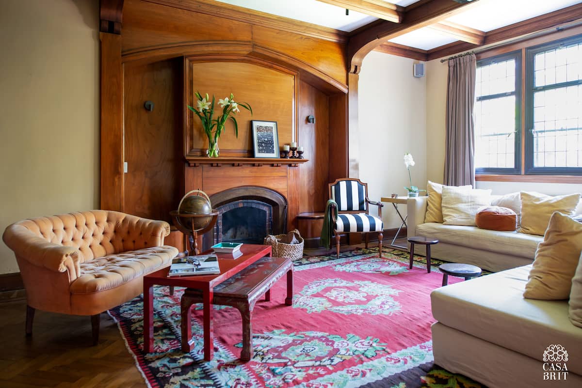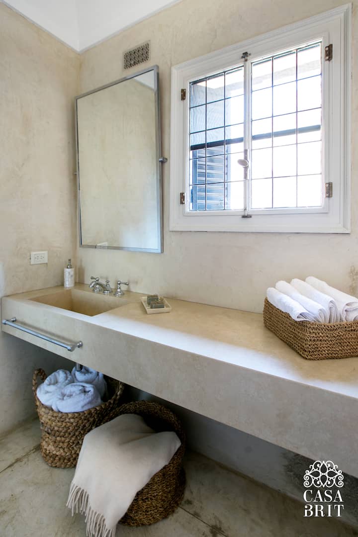 Casa “Casa Brit” em Belgrano R, construída em 1928 e totalmente reformada. São 5 dormitórios, 4 deles com banheiros privativos completos. A casa tem cozinha ampla, sala de jantar para 12 a 14 pessoas, sala de TV e de projeção, além de pátio e jardim com área de piscina.