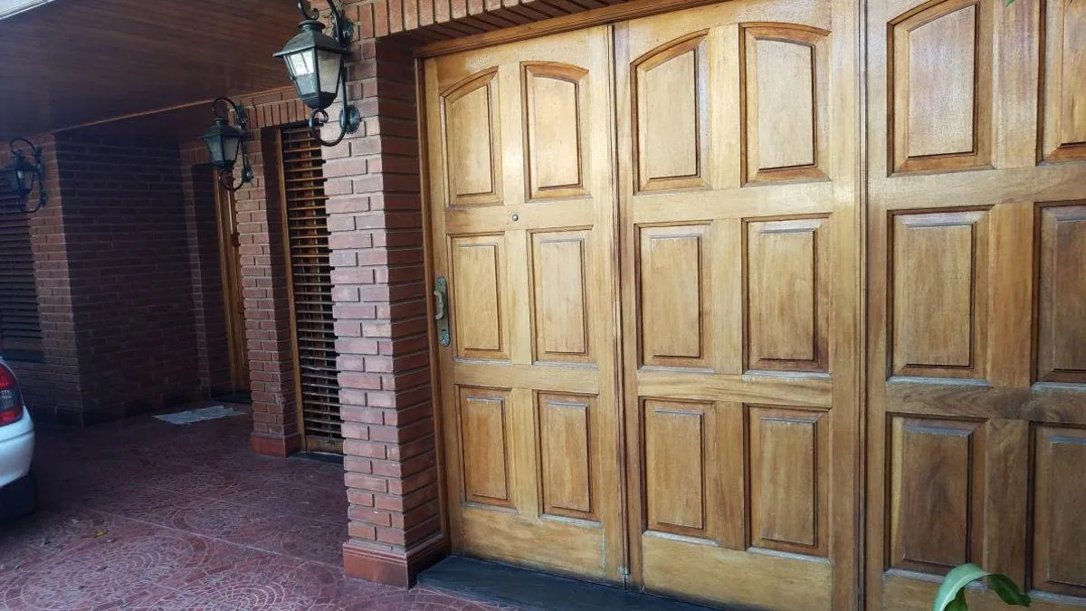 Casa com 2 dormitórios no térreo e 3 dormitórios no primeiro pavimento, totalizando 5 dormitórios. No térreo há 1 banheiro completo, sala em desnível, sala de jantar, cozinha com área de jantar e garagem coberta para 2 carros. Há galeria coberta, área de churrasco (quincho) e, no primeiro pavimento, banheiro e grande playroom.