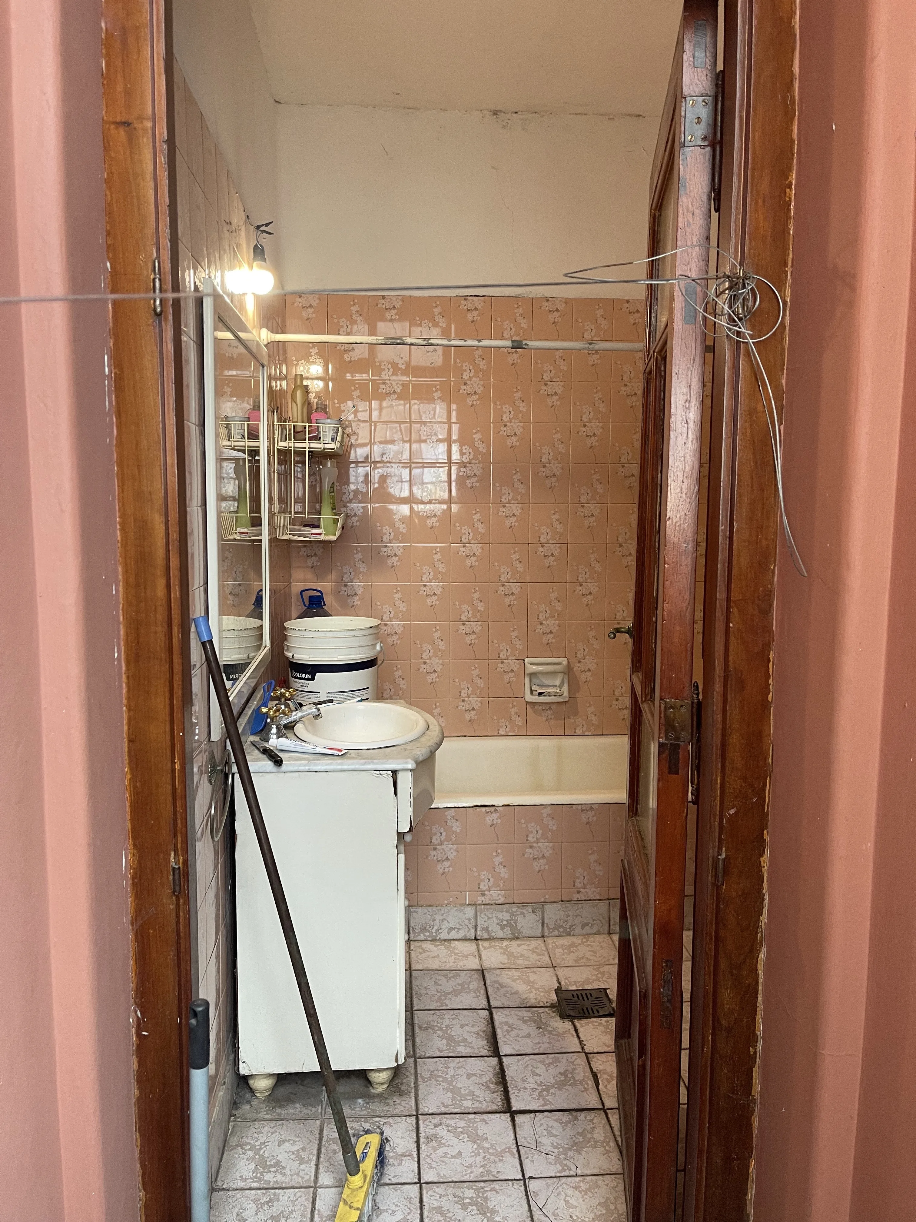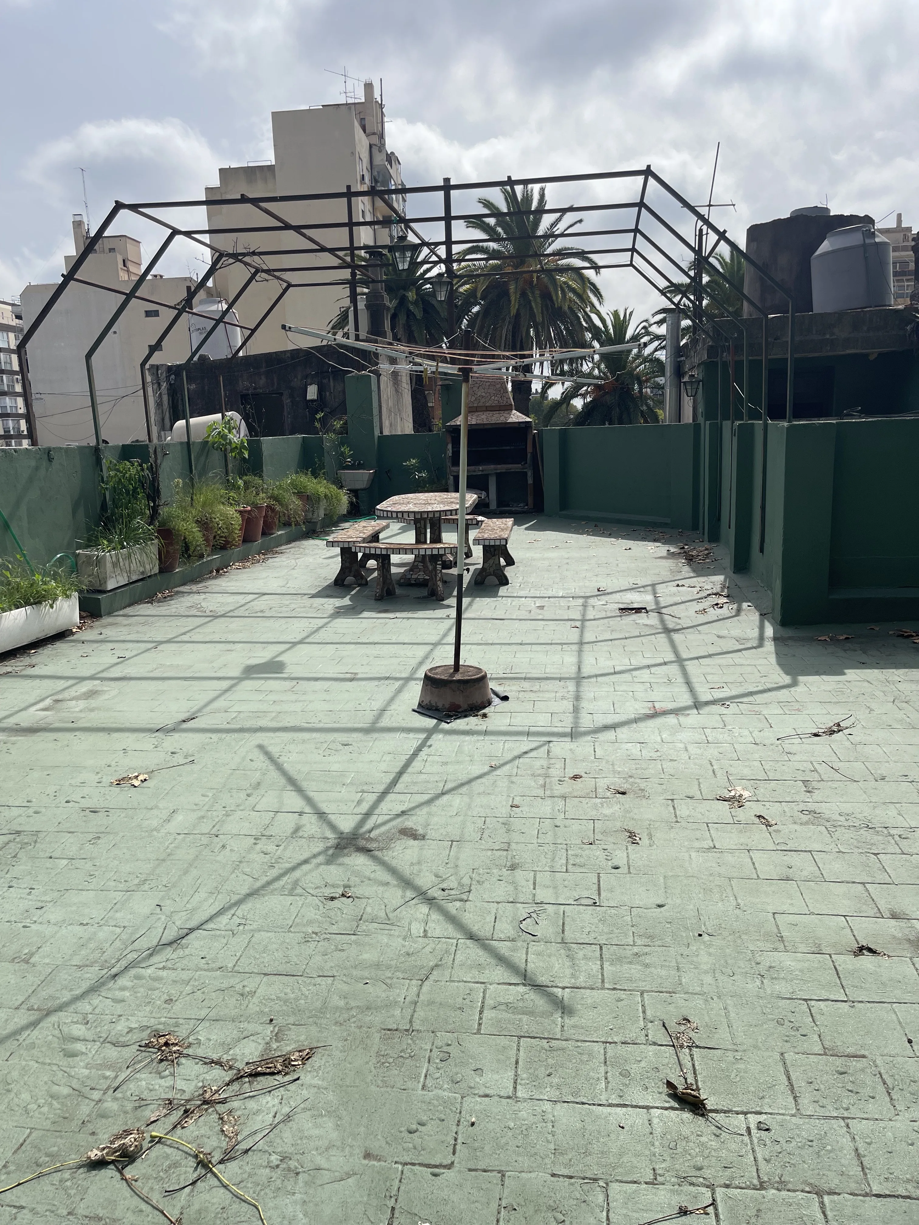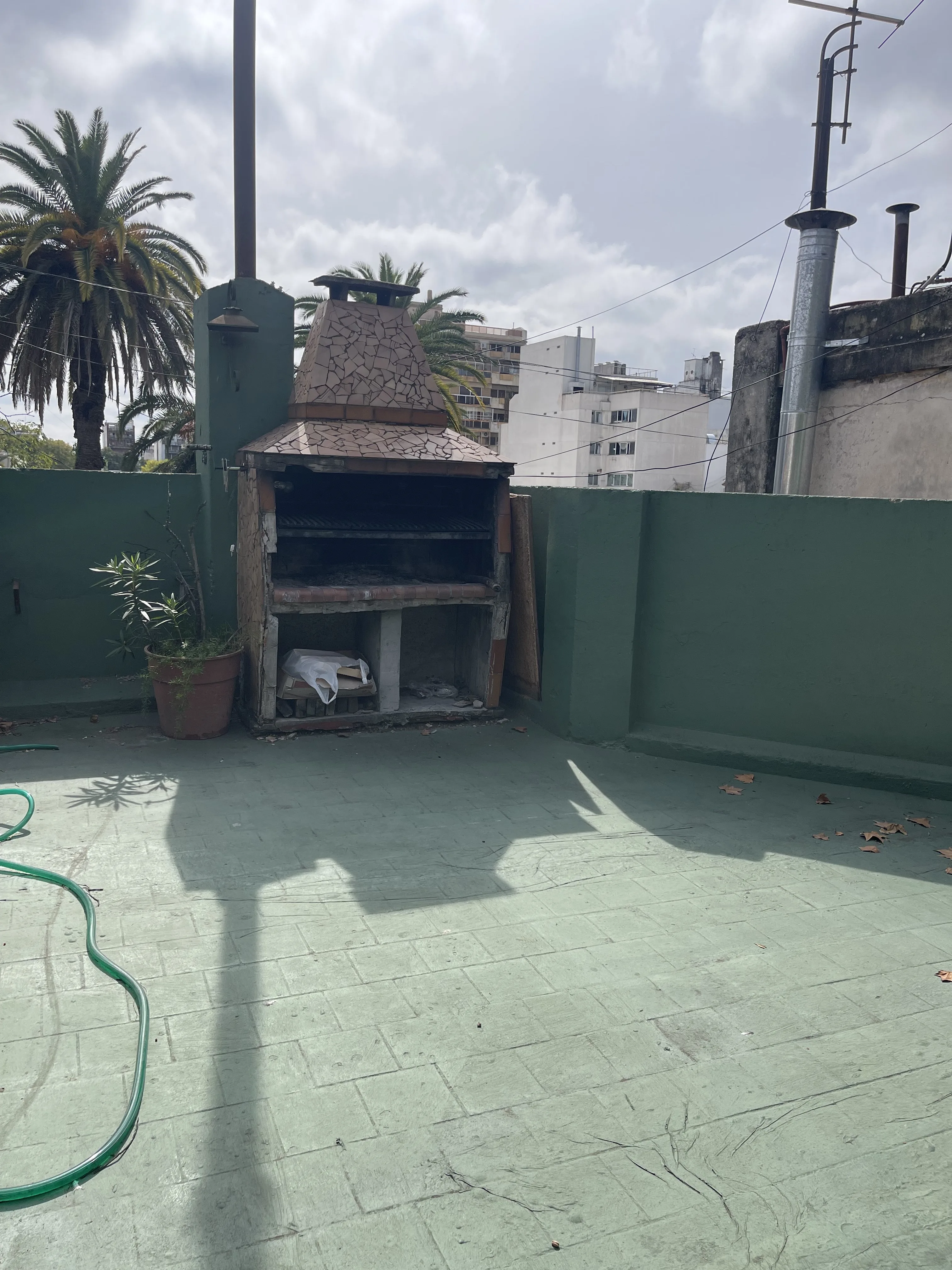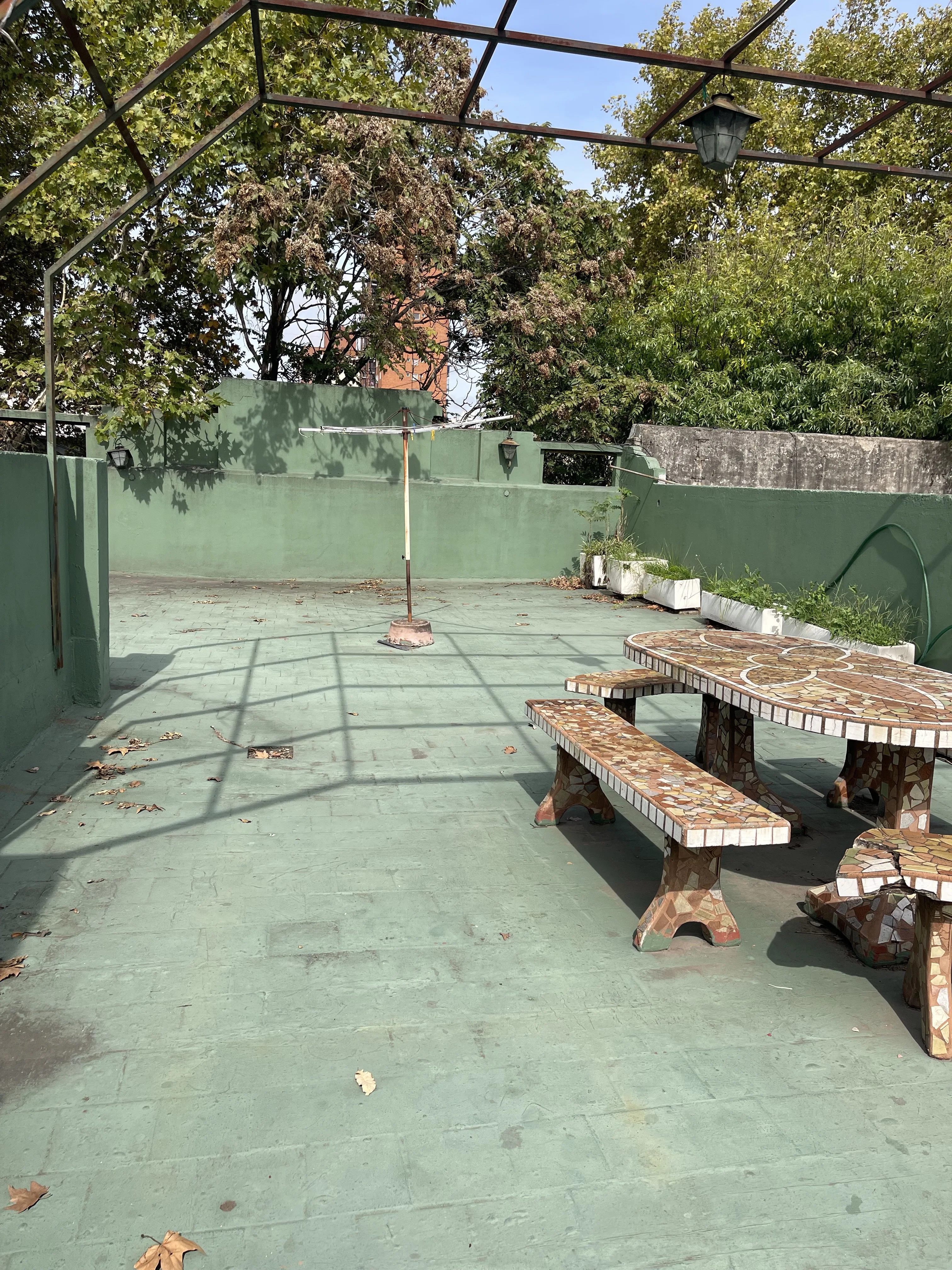 PH com entrada independente em Flores Norte. Está no 1º andar, acessado por escada, com 5 ambientes, ar-condicionado e amplo pátio. O anúncio menciona proximidade ao centro comercial “Flores” e à Linha A do Subte. Requer aluguel do mês, depósito e fiança com garantia proprietária.