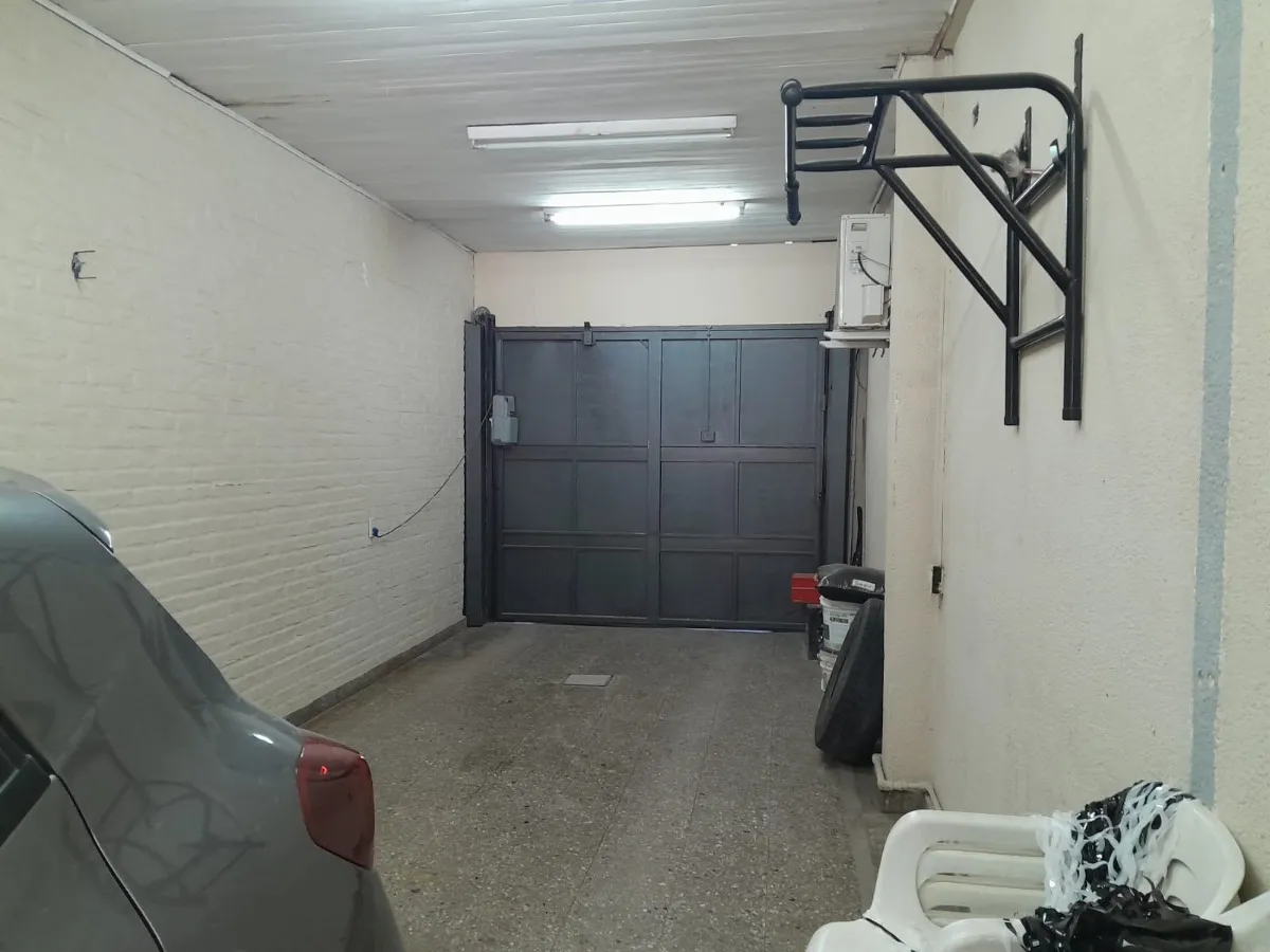 Casa para alugar com entrada por jardim e entrada para veículos. Conta com garagem para 3 veículos, living e sala de jantar, cozinha e sala de jantar integradas na área inferior, além de galeria e estufa a gás (fogão a lenha). No primeiro piso por escada caracol: dormitórios com janelas para a frente e para os fundos, ar-condicionado frio e calor e 2 banheiros com pia (vanity), bidê e vaso com descarga acoplada. Há pátio livre de 8,70 x 10 m, galpão de 10 x 3 m, área de lavanderia coberta na gal