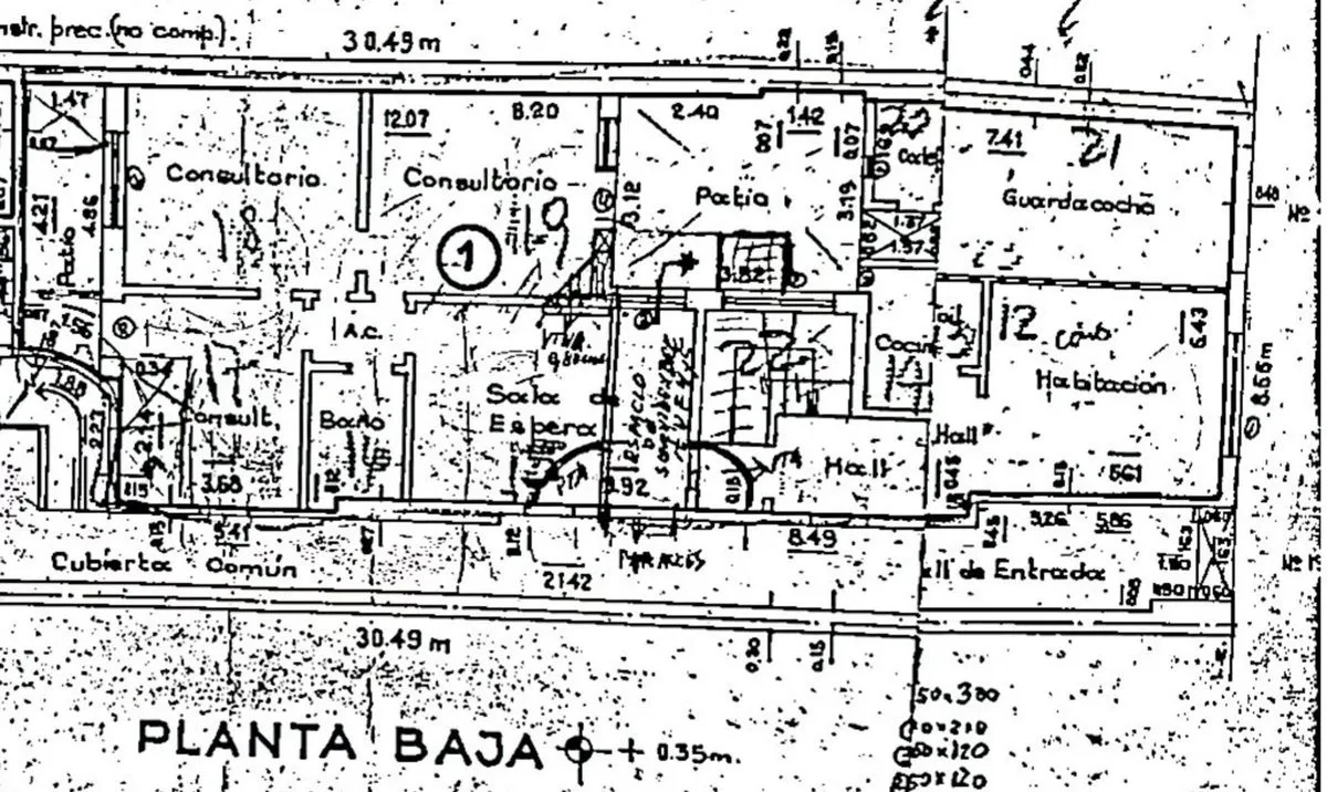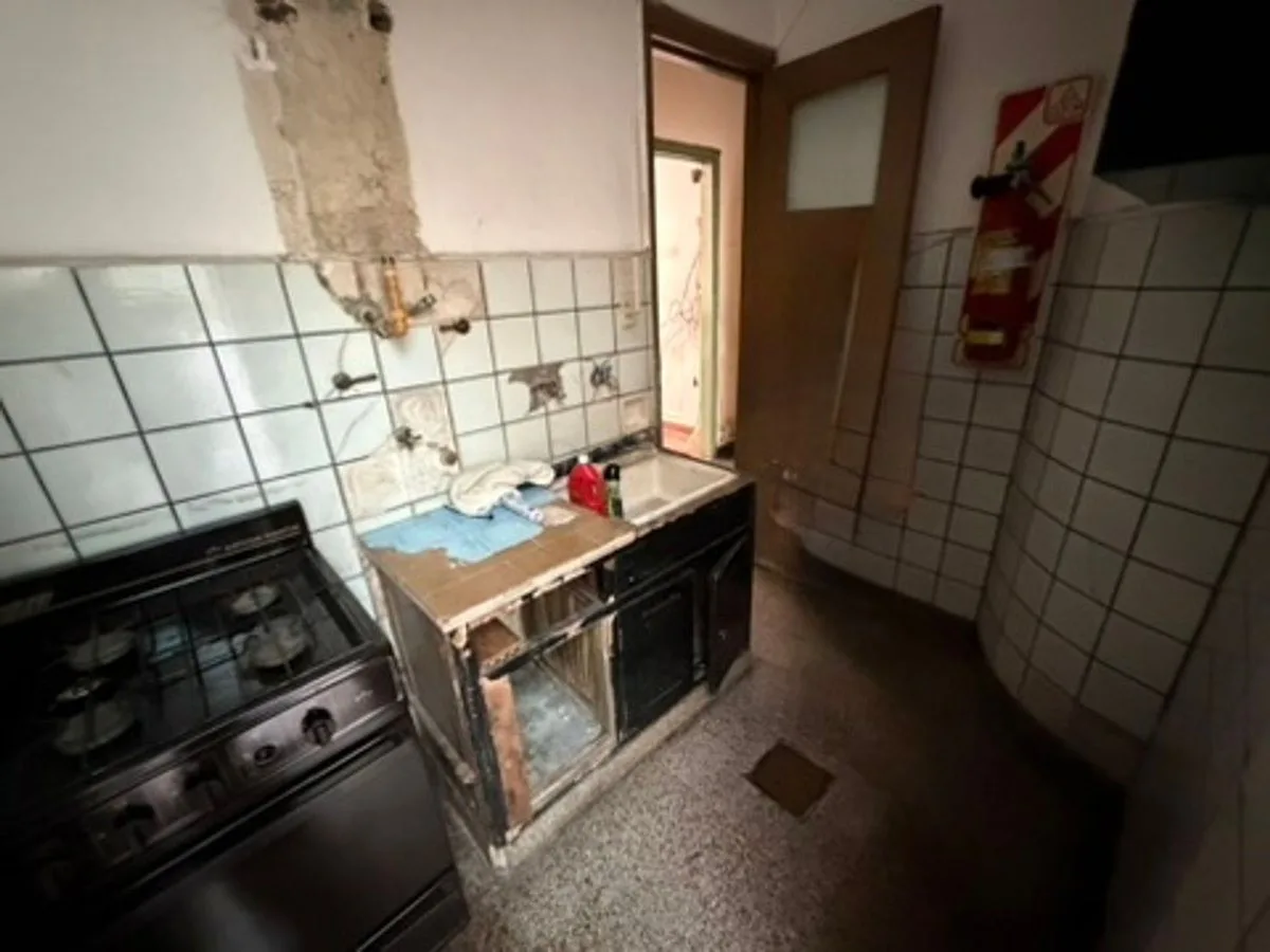 Apartamento comercial com 5 ambientes, 119 m² cobertos e 20 m² semicobertos, no térreo, com frente para a rua. Tem 5 quartos, 1 banheiro completo e 1 lavabo, cozinha independente e área de serviço, além de armários. Ano de construção 1948. Conta com conexões de eletricidade, água, gás, internet e esgoto cloacal; estado geral a reformar. ABL de ARS 62.000 e AYSA de ARS 30.000.