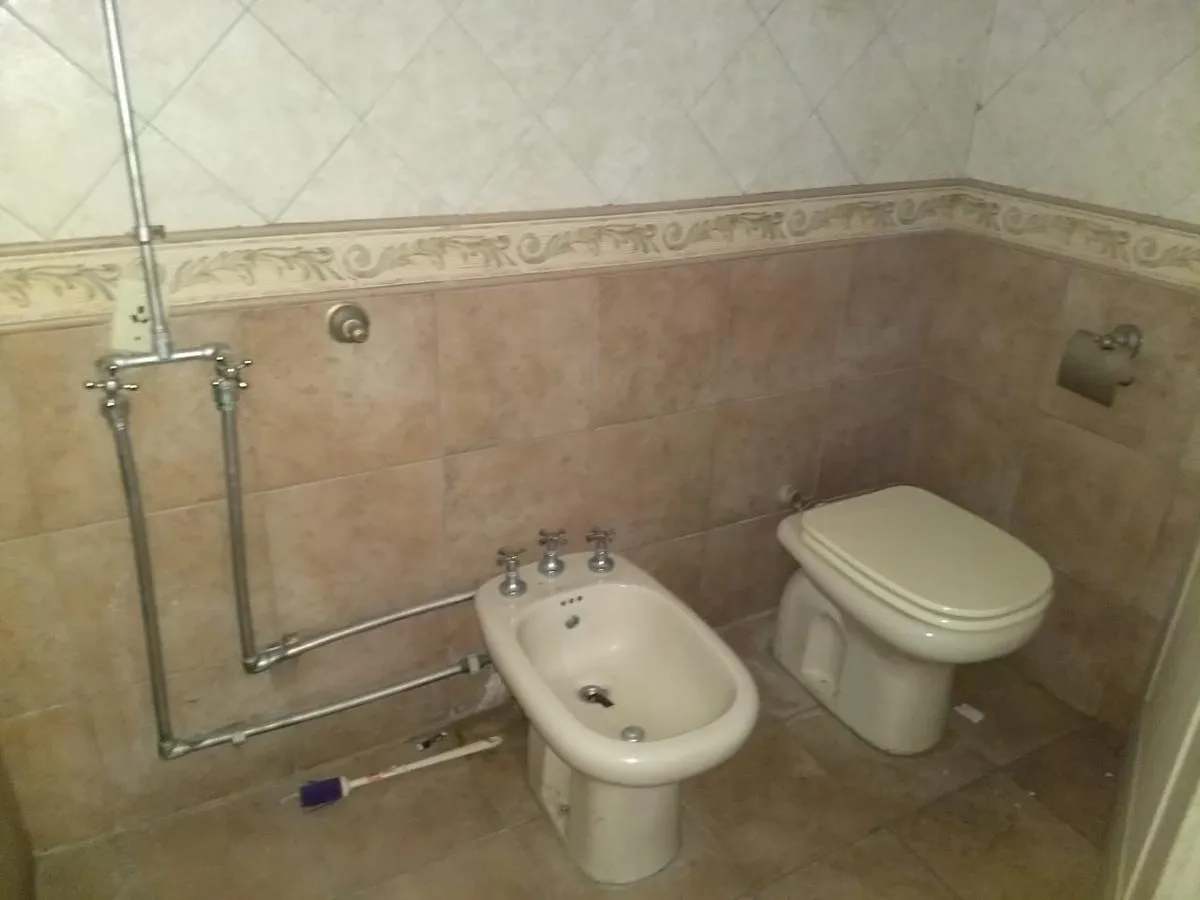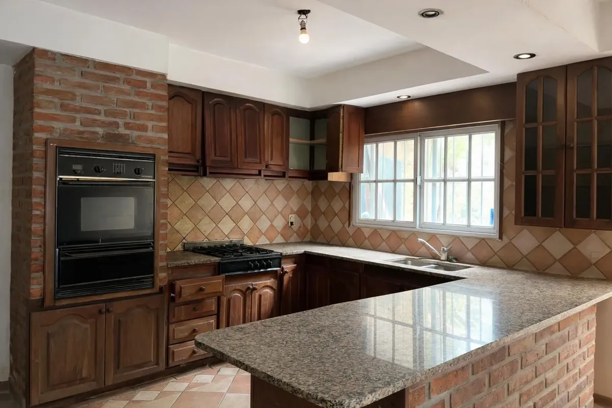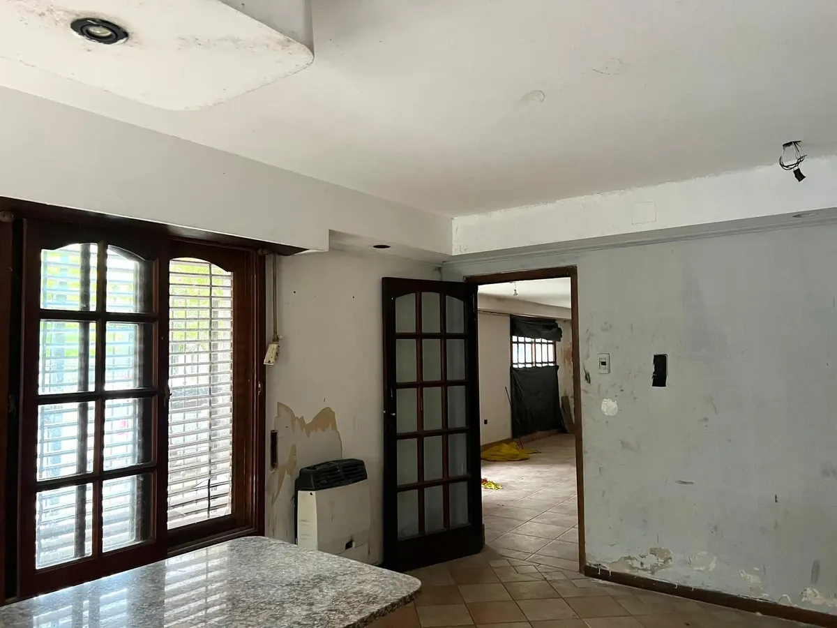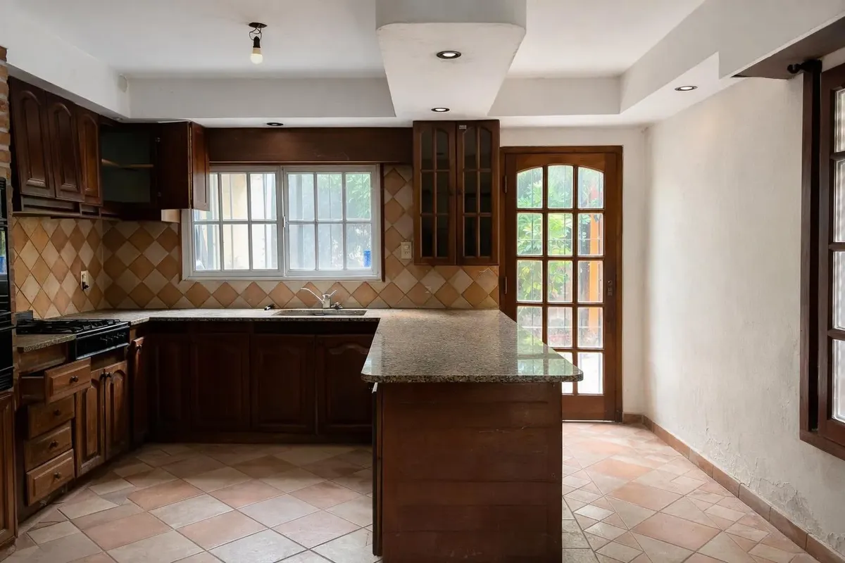 Casa em 2 plantas, com 17 m de frente, em bom estado, em City Bell. Possui amplo living e sala de jantar, cozinha com saída para a garagem, 2 dormitórios e 1 banheiro no piso térreo, além de 3 dormitórios e mais 1 banheiro no piso superior. O anúncio menciona frente para a rua e integração ao complexo comercial, próximo ao Hotel City Bell e a uma distância de 30 m do Café Martínez. Regras de locação incluem garantia do tipo proprietário da região ou garantias do interior, além de comprovante de