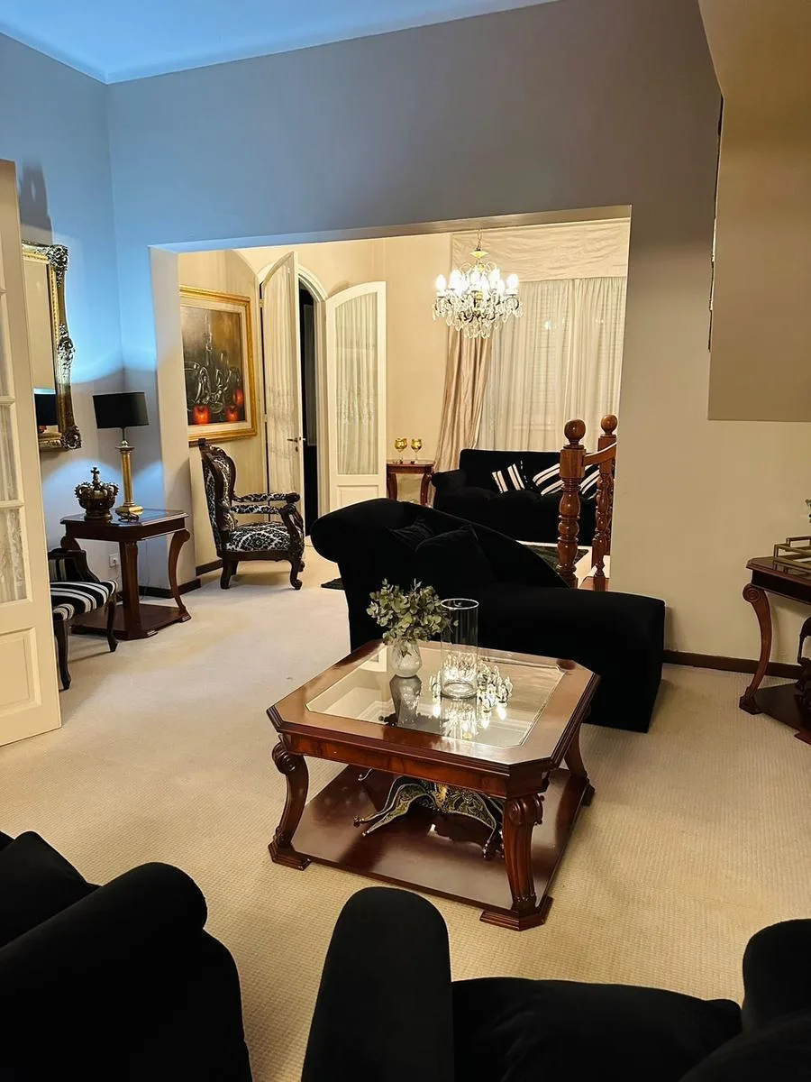 Casa à venda e para aluguel de alto padrão na zona norte de La Plata, em rua entre 37 e 38. No térreo há garagem, sala principal, recepção, sala de jantar principal com lavabo, sala de jantar diária, cozinha ampla com acesso ao pátio por diferentes setores e entrada independente com acesso por corredor. Há área de serviço com acesso ao salão (SUM) e lavabo, além de pátio seco com área de churrasco. No piso superior, um hall distribui 4 dormitórios, incluindo escritório/dormitório com lavabo priv