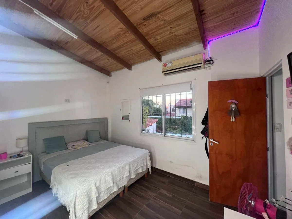 Casa em dois andares para aluguel em Lanús Oeste, com 6 quartos e piscina, área de churrasco e duas vagas de garagem com portão automatizado. Em lote próprio de aproximadamente 8,33 x 30 metros, com jardim, limoeiro e piso de grama, e piscina de PVC com bomba e filtro. No térreo há sala, cozinha independente, 2 banheiros completos, 2 quartos com ar-condicionado, área de serviço independente/quarto adicional e depósito, além de galeria coberta e área de churrasco com churrasqueira. No andar super