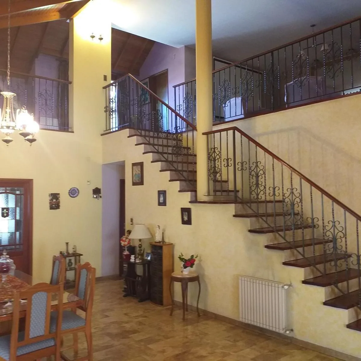 Casa de dois andares em Temperley, sobre rua de paralelepípedos, no bairro Tenis. São 5 dormitórios, com orientação para o norte e distribuição em dois pavimentos, além de mezanino para armazenamento. Possui carpintaria sob medida, pisos de mármore travertino, aquecimento central com 23 radiadores, lareira e área com “pulmão” interno; também há irrigação por aspersão e infraestrutura para ar-condicionado central. A eletricidade é trifásica e monofásica, com perfuração para piscina e irrigação; i