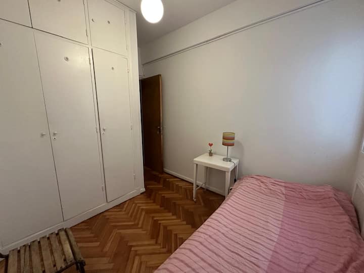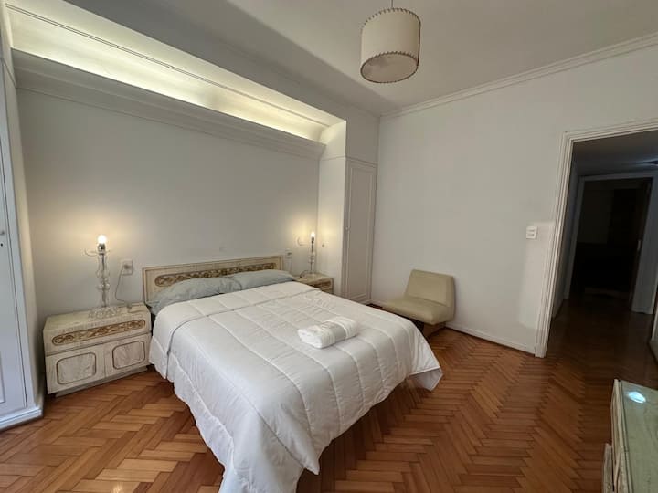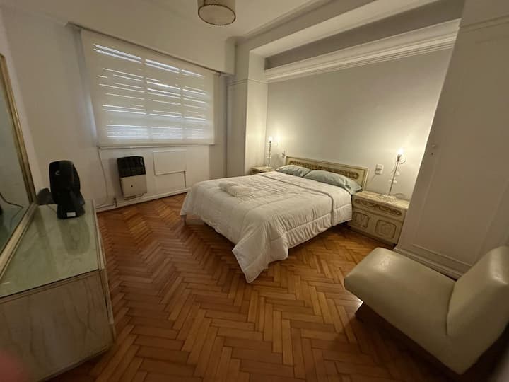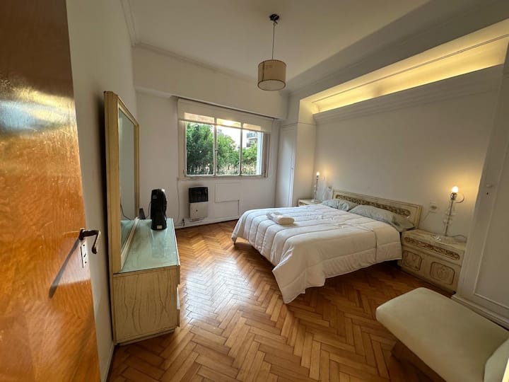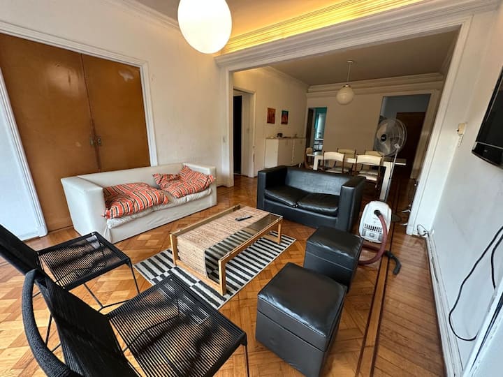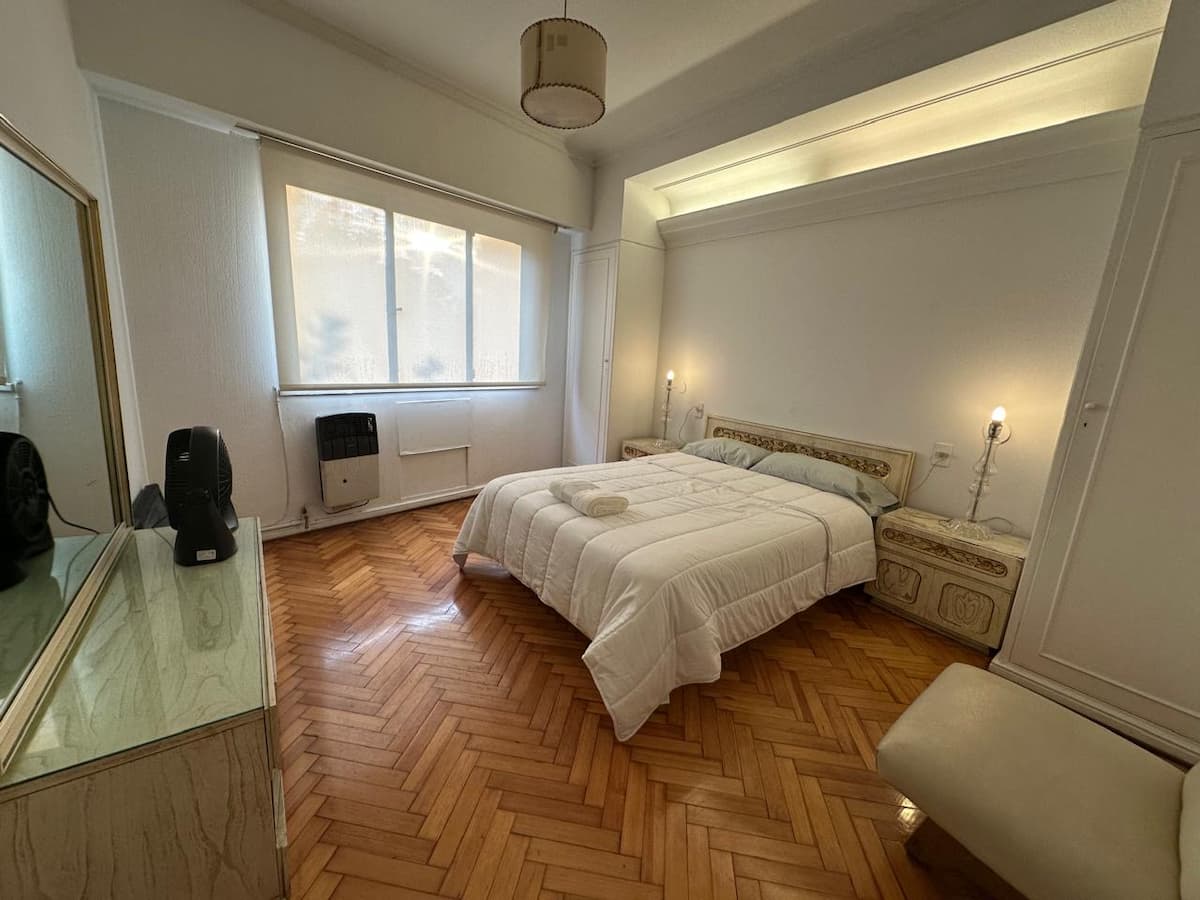 Apartamento no 3º andar em Palermo, com 5 dormitórios. Quatro dormitórios têm cama de casal e o 5º tem cama de solteiro; um dormitório inclui banheiro privativo. Um dormitório tem ar-condicionado, os demais têm ventiladores e todos têm aquecimento. Há sala de estar com área de jantar e cozinha diária, além de área de lavanderia; a unidade fica a cerca de 100 m de comércios, restaurantes e meios de transporte.