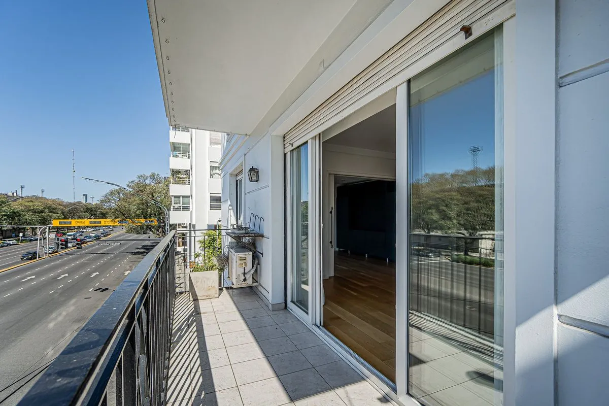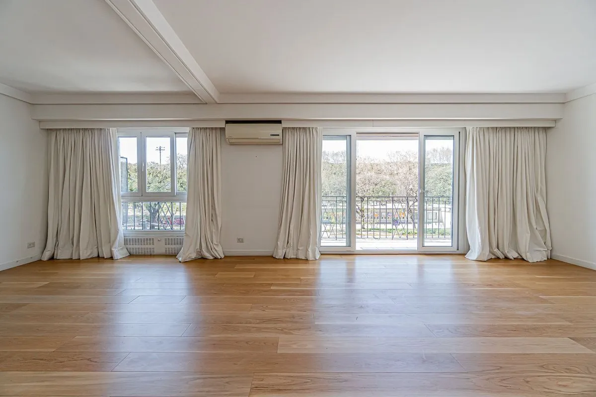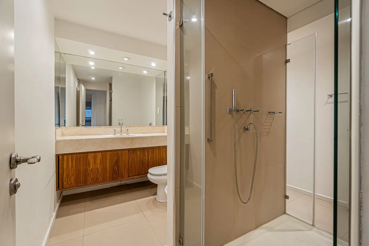 Apartamento de 6 ambientes no 6º andar, com vista de frente para o Hipódromo de Palermo. Tem hall privativo e sala de estar com saída para varanda corrida, além de sala de jantar e lavabo. A suíte master inclui um segundo dormitório ou sala de estar, com banheiro completo com acesso ao box a partir de ambos; há ainda 3 dormitórios, dependência de serviço com banheiro, cozinha independente com área de armazenagem e refeitório diário. O imóvel tem janelas de vidro duplo, ar-condicionado em todos o