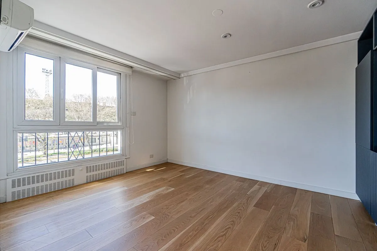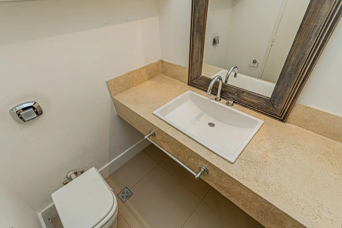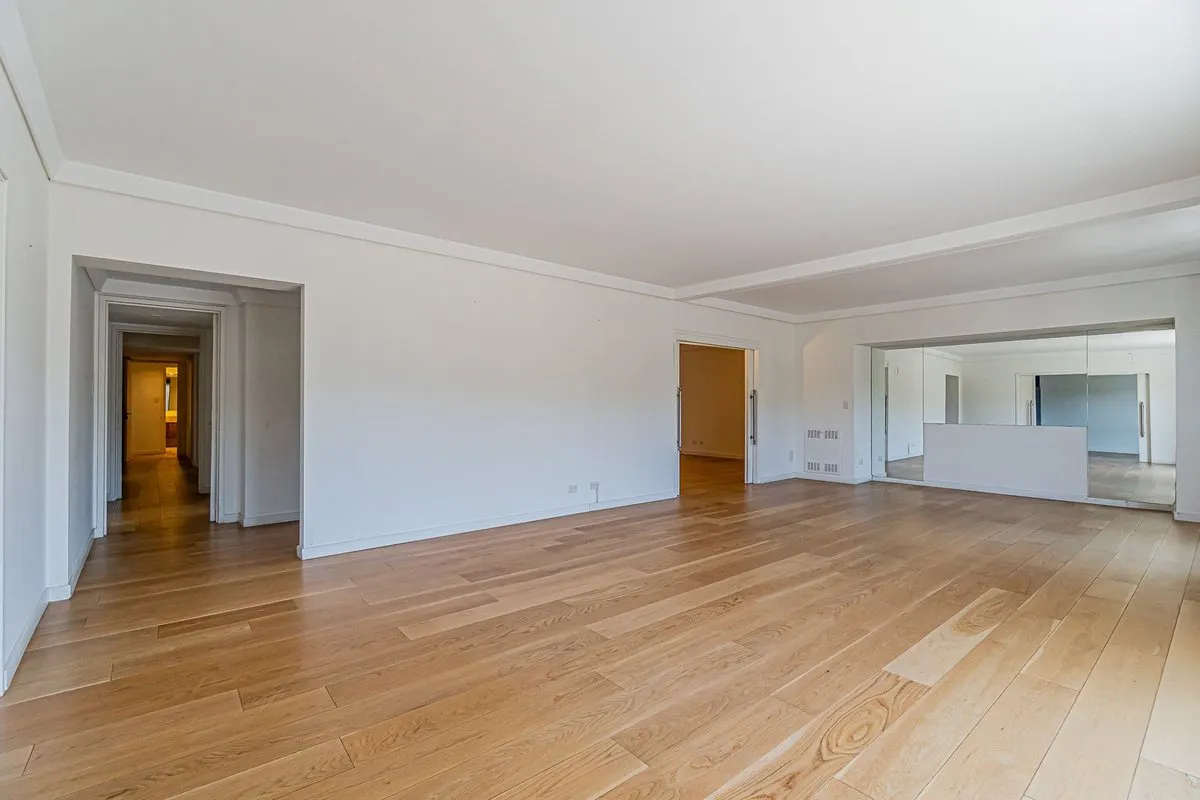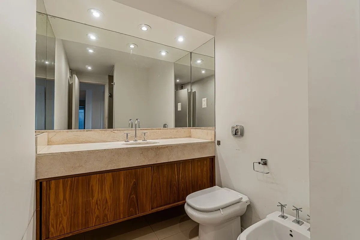 Apartamento de 6 ambientes no 6º andar, com vista de frente para o Hipódromo de Palermo. Tem hall privativo e sala de estar com saída para varanda corrida, além de sala de jantar e lavabo. A suíte master inclui um segundo dormitório ou sala de estar, com banheiro completo com acesso ao box a partir de ambos; há ainda 3 dormitórios, dependência de serviço com banheiro, cozinha independente com área de armazenagem e refeitório diário. O imóvel tem janelas de vidro duplo, ar-condicionado em todos o