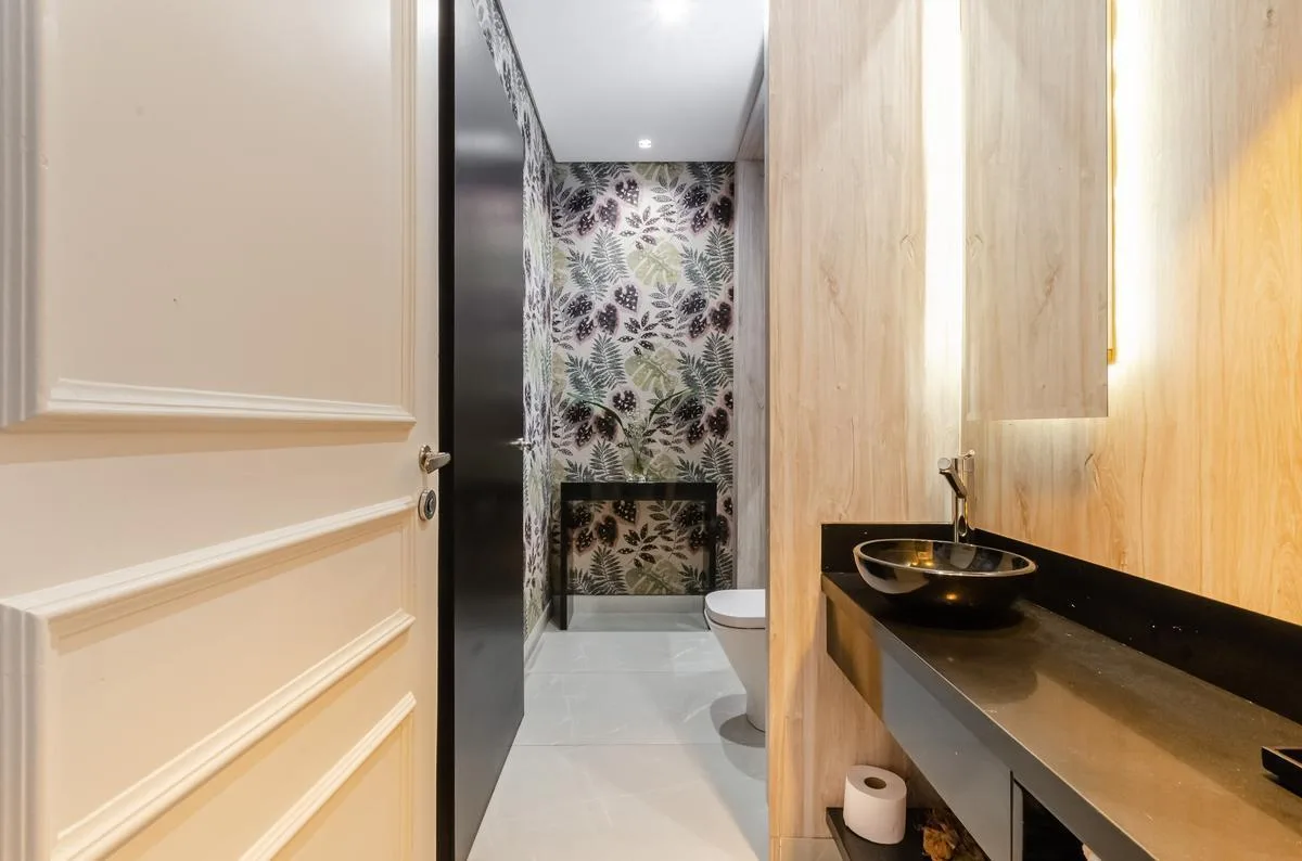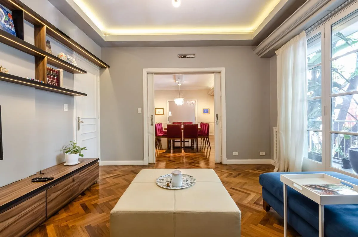 Apartamento de 340 m² em Palermo, com 5 dormitórios (7 ambientes). Possui salas independentes de estar e jantar, sala de estar/playroom, lavabo, dependência de serviço e cozinha com comedor diário. Inclui 2 vagas de garagem. A cozinha tem 2 fornos elétricos, 2 cubas e fogão a gás, além de despensa. Os dormitórios incluem 3 suítes, mais 2 quartos que compartilham um banheiro completo; a suíte principal tem closet e banheiro com box de ducha e banheira independente. Quatro dormitórios ficam nos fu